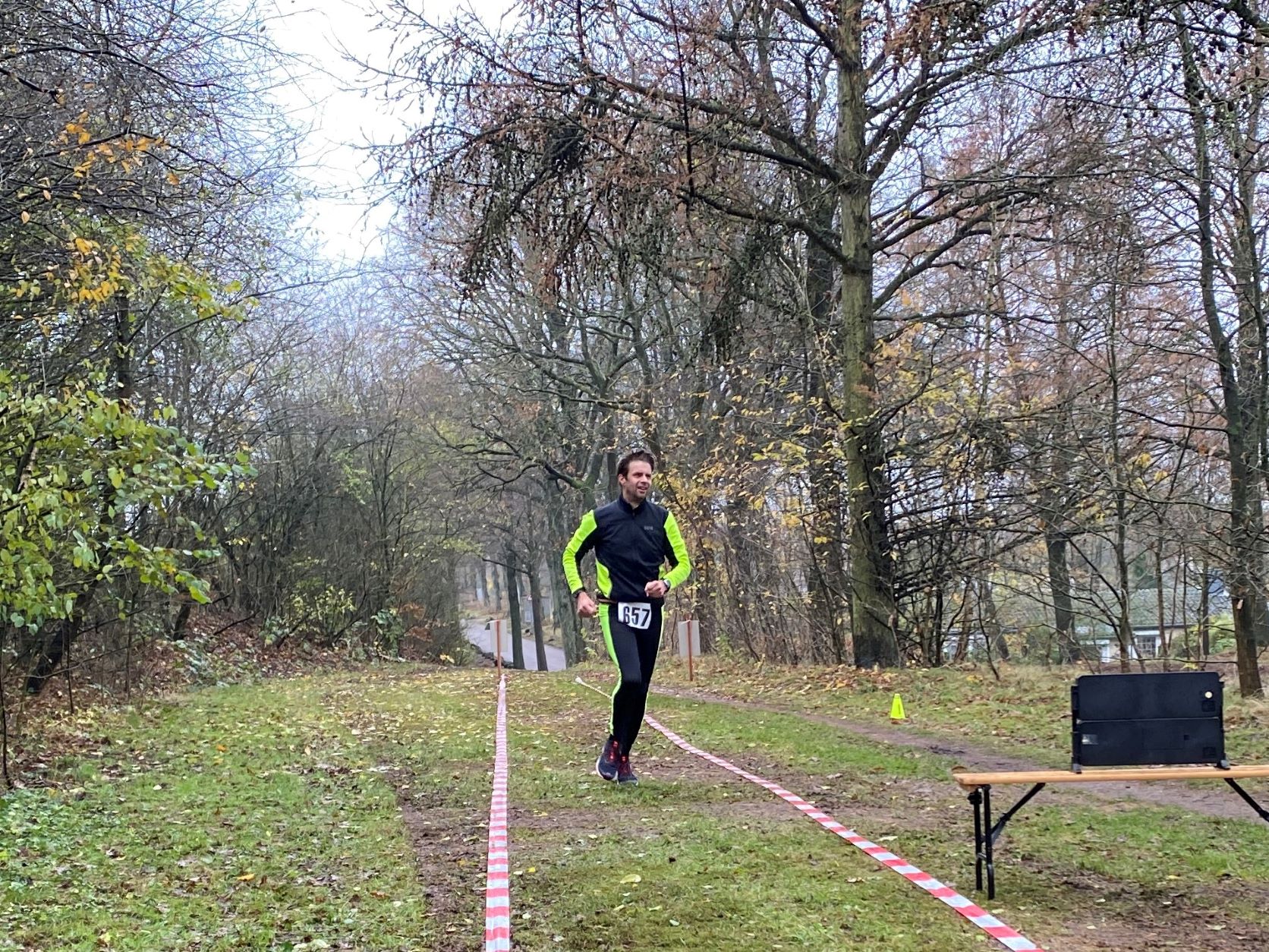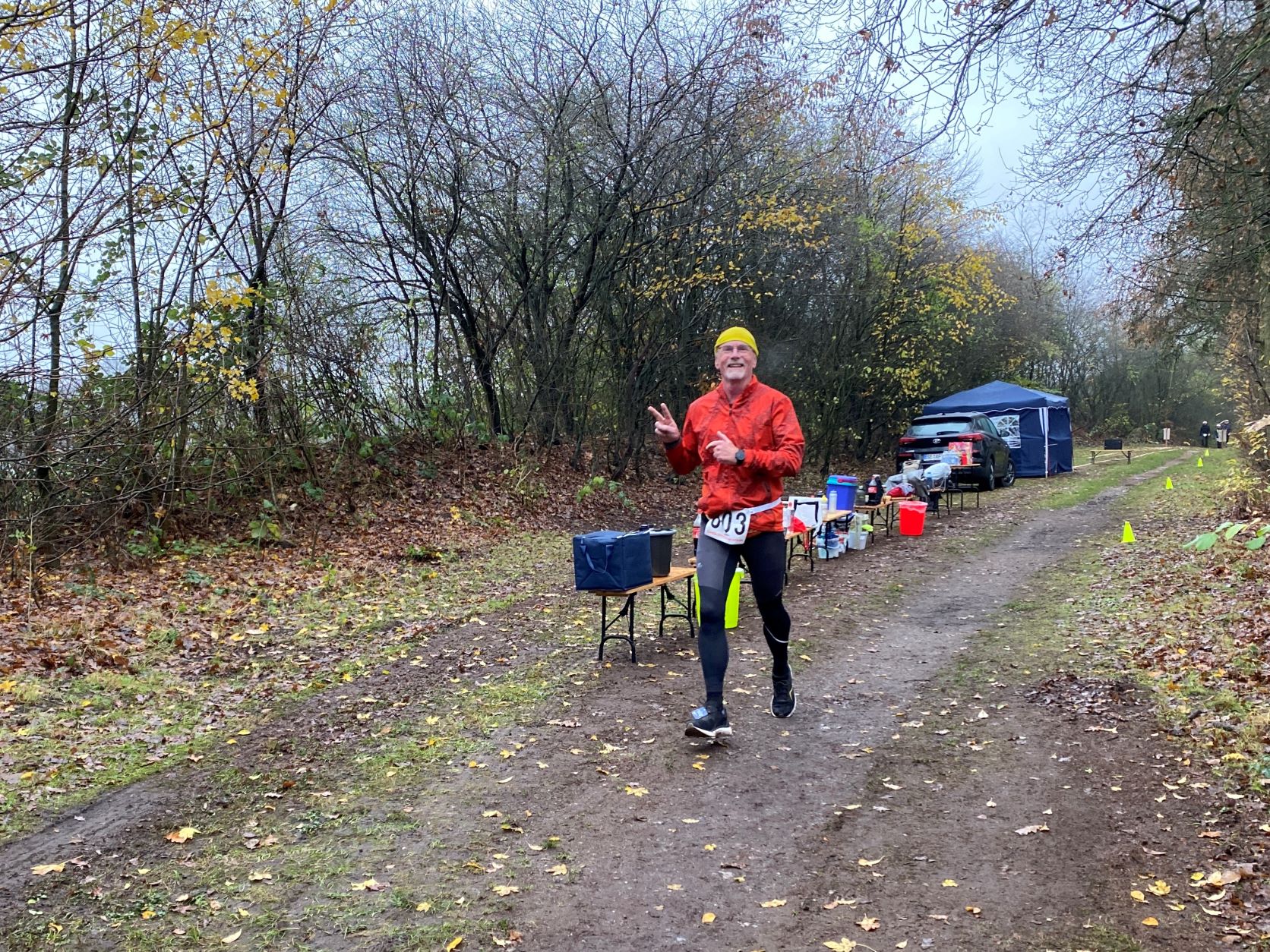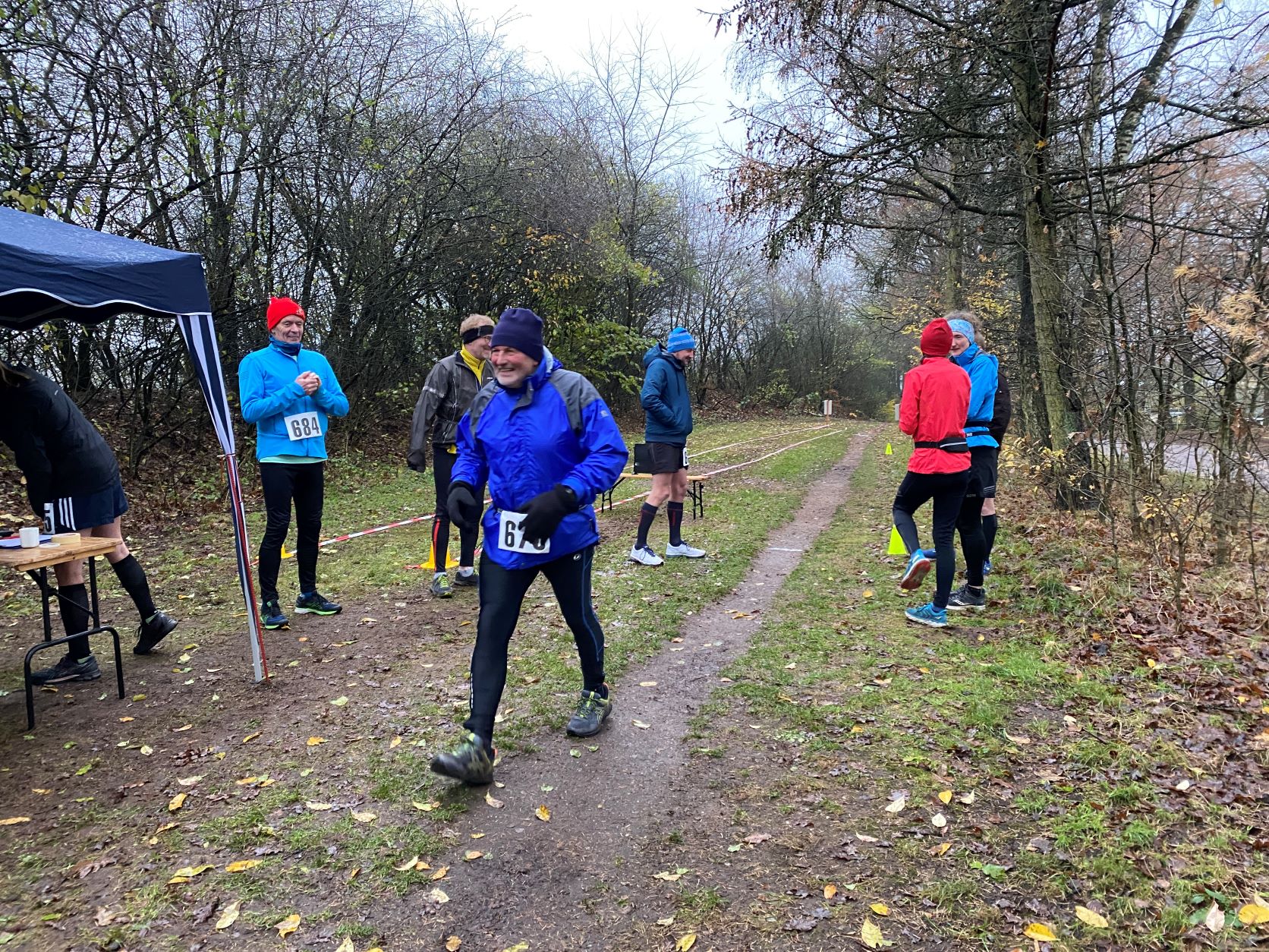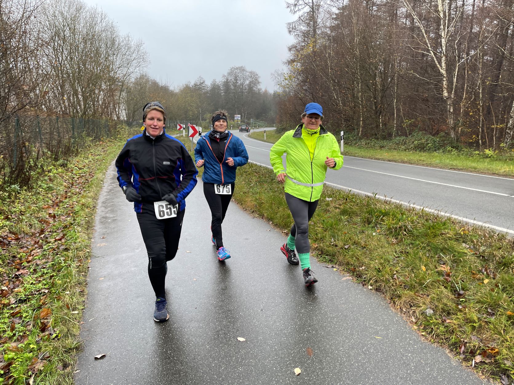 … Didi, Rolf (im Hintergrund), Dieter und Rita. Das nasskalte Wetter motivierte tatsächlich dieses Läuferquartett zu laufen!Arnes Sohn Lasse war leicht erkältet und hatte sich sicherheitshalber mit zwei Decken eingewickelt und freute sich, dass er nicht laufen musste. Naja, er hatte ja auch einen wichtigen Posten. Als Arnes rechte Hand war der Lasse für das Rundenprotokoll, die Zeitnahme und später für die Herausgabe der Urkunden zuständig. -Links steht der Klaus, der nachgemeldet hatte und heute drei Runden laufen wollte.Inzwischen war der Klaus, der die Startnummer 684 bekam, umgezogen und konnte mit Klaus B. (verdeckt), Stulle, Katrin (im blauschwarzen Outfit) und Beate den Didi, der fröhlich und energisch auf dem Weg in die zweite Runde war, anfeuern.Die Teilnehmer, die sehnsüchtig auf ihren Start warteten: Dirk, Axel, Rabea, Klaus, Arne (der Veranstalter), Jaqueline, Robert und Wojciech (erste Reihe von links nach rechts) – In der zweiten Reihe von links nach rechts: Angela, Renate, Marium, Gabi, Doris, Beate, Sabine, Regine, Doris H., Stefan,Torsten und Mario – In der letzten Reihe von links nach rechts: Sylvia, Peter, Katrin, Irma, Stulle (an der blauen Mütze erkennbar), Klaus B. (von Doris verdeckt), Uwe, Affenzahn, Sophia (Lasses Freundin) und MartinKatrin und Stulle führten … … das Starterfeld zunächst an. Dieser Moment wurde von mir und Arne fotografisch festgehalten.Interessiert verfolgten diese vierbeinigen Zuschauer aus der ersten Reihe die zweibeinigen …… Läufer, die nacheinander auf der“Leinwand“ der Vierbeiner zu sehen waren. Vorne im Bild sehen wir Stefan. Knapp dahinter erkennt man Sylvia gefolgt von Axel.Hier führen Robert und Klaus das Läuferfeld an.Ausgerüstet mit seinem Fotoapparat wollte sich Arne Zeit und Gelegenheit nehmen, um zu fotografieren. Martina (rechts), Peter (links hinter Arne) und Jaqueline begleiteten ihn. Hinter dem eben erwähnten Quartett ist die Doris zu sehen.Kaum zu übersehen war der Gleichschritt der beiden Dorise und der Gabi! Ohne zu zögern gab ich den Damen des Trios die Haltungsnote 1. Uwe sollte an diesem Tag die Möglichkeit bekommen bei der Marathondistanz den ersten Platz zu belegen! Ich machte mich zwischendurch auch auf die Strecke, um …… dieses kleine Gänseblümchen zu bewundern. – Das Gänseblümchen trägt auch den Namen „Ausdauerndes Gänseblümchen“ und ist tatsächlich eine ausdauernde, krautige Pflanze, die Wuchshöhen von meist 4 bis 15 Zentimetern erreichen kann. Es wächst auf fast jeder Wiesenfläche und blüht von März bis November. Mutig, mutig! Rabea meinte, das richtige Outfit für den Marathon an diesem regnerischen Tag getroffen zu haben! Katrin und Mario waren schnell und leichtfüßig unterwegs und hatten wie …… Karsten (links) und Stulle gute Laune, die abfärbte. Beate, heute bekommst du die Haltungsnote 1!Dirk sollte heute der Sieger beim Halbmarathon werden! Klasse, Dirk!Sylvia hatte an dieser Stelle einen leichten Vorsprung vor Axel, der sie gleich einholen sollte. Axel kam als zweiter Halbmarathoni ins Ziel. Den dritten Platz der Habmarathonis belegte die Sylvia. Glückwunsch an euch!Cornelia ist einfach nicht zu stoppen! Sie walkt immer im zügigen Tempo einen Marathon nach dem anderen. Du bist echt der Hammer, Cornelia!Robert lief gleichmäßig schnell und war von der Veranstaltung begeistert.Wojciech hat beim Laufen immer gute Laune. Hinter ihm kommt …… Klaus, der heute bei dem Wetter froh war, „nur“ drei Runden laufen zu müssen.Im Start- Zielbereich freute sich Jaqueline auf die nächste Runde, während Arne, nachdem er den Fotoapparat im Wettkampfbüro bei Lasse deponiert hatte, sich mit den Mitgliedern Manu (links) und Antje vom „Joggle Club“ unterhielt. Jetzt hieß es aber: Gas geben! Arne wollte eine bestimmte Hahn Weber Zeit erreichen und durfte jetzt nicht trödeln.Es herrschte ein reger Betrieb an der Selbstversorgungstelle. Renate witterte ihre Chance und flitzte zielstrebig in die nächste Runde. Antje und Manu warteten auf Antjes Mann Dirk, der eigentlich bald die Ziellinie überqueren sollte.Die Spaßbrillen der Damen vom „Joggle Club“ waren der absolute Hammer! „Oh, Tannenbaum! Oh, Tannenbaum, wie grün sind deine Blätter!!“Sabine freute sich hier offensichtlich auf die nächste Runde. Die Gute Laune Note 1 hast du verdient, Sabine!Rosi und Cindy begaben sich im Gleichschritt zu ihrer Vepflegung in Rosis Auto.Hier zeigte Angela die für einen Halbmarathon perfekte Laufhaltung. Im Hintergrund versorgte sich Irma an ihrer Selbstverpflegung, um kurz darauf ihre nächste Runde in Angriff zu nehmen.Axel erreichte beim Halbmarathon den 2. Platz hinter Dirk. Gratuliere, Axel!Affenzahn wollte eine Sub 7 erreichen und zog vorbei an Rita und …… dem fröhlich winkenden Dieter. Konzentriert und kampfbereit walkte Didi am Wettkampfbüro vorbei in die nächste Runde. Martin war in einer seiner letzten Runden und freute sich, bald den Halbmarathon geschafft zu haben.Endlich! Dirk lief mit großen Schritten seinem Halbmarathonsieg entgegen. Glückwunsch, Dirk! Die Girls vom „Joggle Club“ freuten sich mit ihm, hatten sie doch so lange auf seinen Zieleinlauf gewartet!Dann kam er! Uwe lief überglücklich auf der Zielgrade ins Ziel und konnte sich über den Sieg bei der Marathondistanz freuen! Herzlichen Glückwunsch, Uwe!Torsten hatte sich umgezogen und durfte sich später im Ziel über eine Sub 6 Zeit freuen. Katrin und Mario belegten, nach diesem genialen Spurt im Gleichschritt auf der Zielgrade, den zweiten Platz! Klasse gemacht!Drei glückliche Finisher! Katrin träumt schon von der nächsten Herausforderung!Rabea erreichte das Ziel knapp hinter Katrin und Mario. Gratuliere zu deinem Finish, Rabea!Robert freute sich über seinen Zieleinlauf und seine Urkunde, während Wojciech seine letzte Runde in Angriff nahm.Karsten und Stulle, wie auch …… Beate, überquerten ziemlich knapp hintereinander die Ziellinie! Glückwunsch! Zi