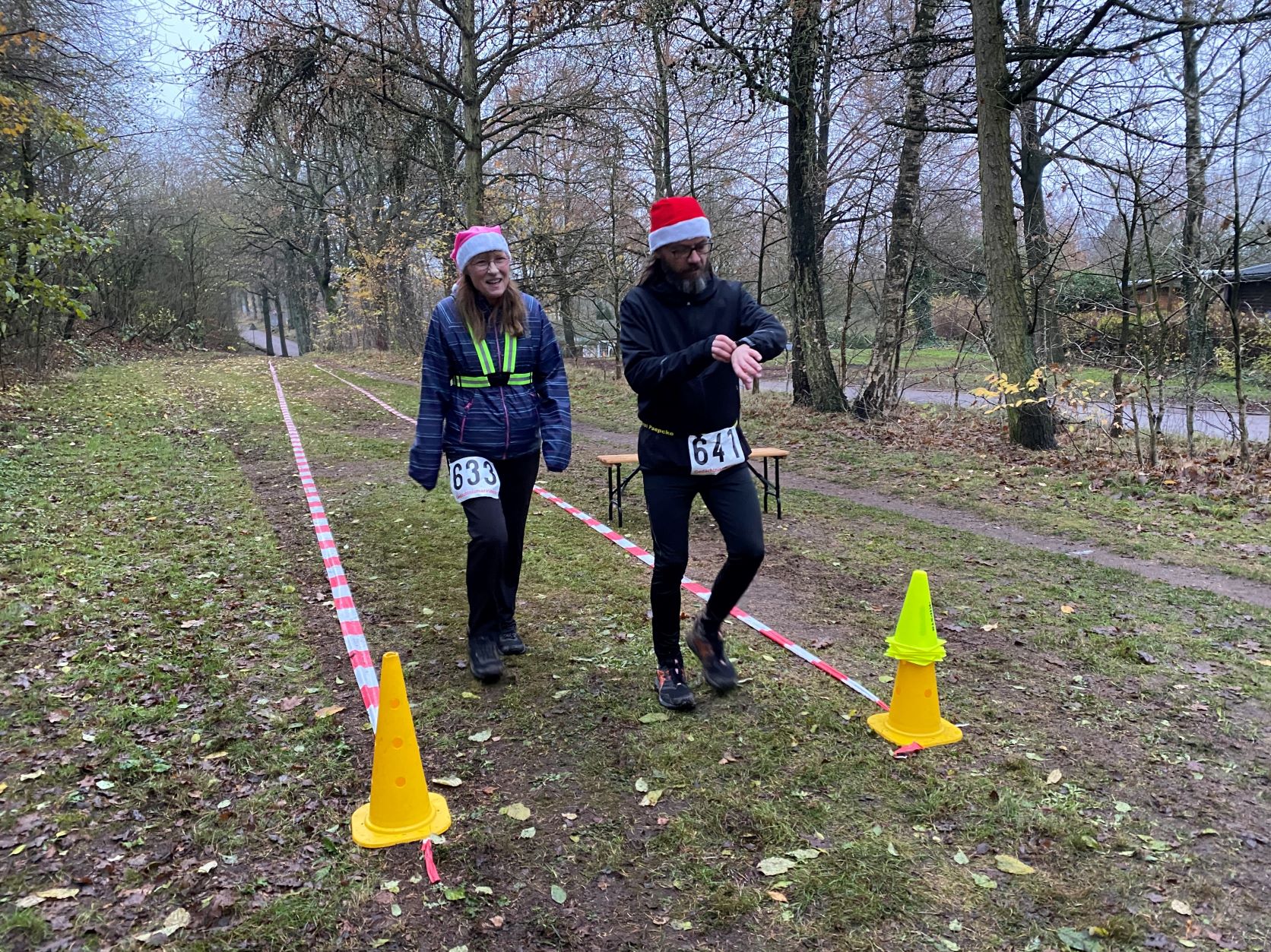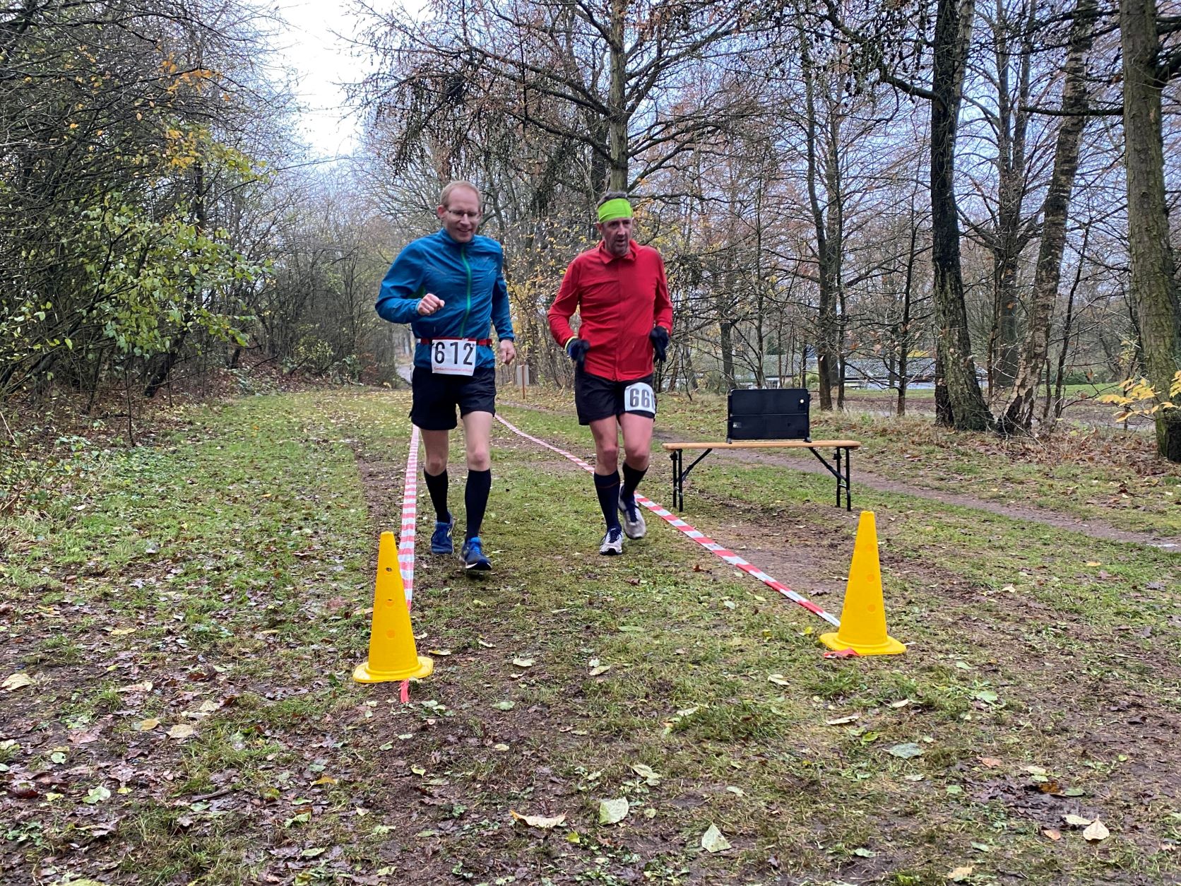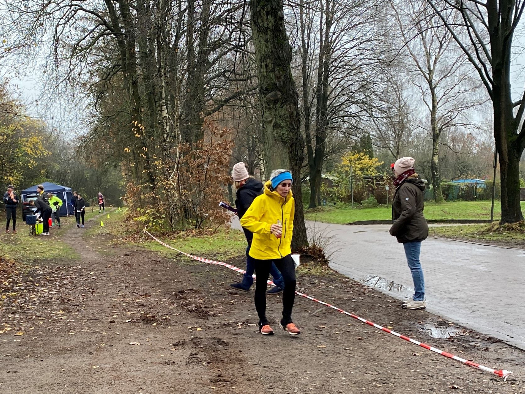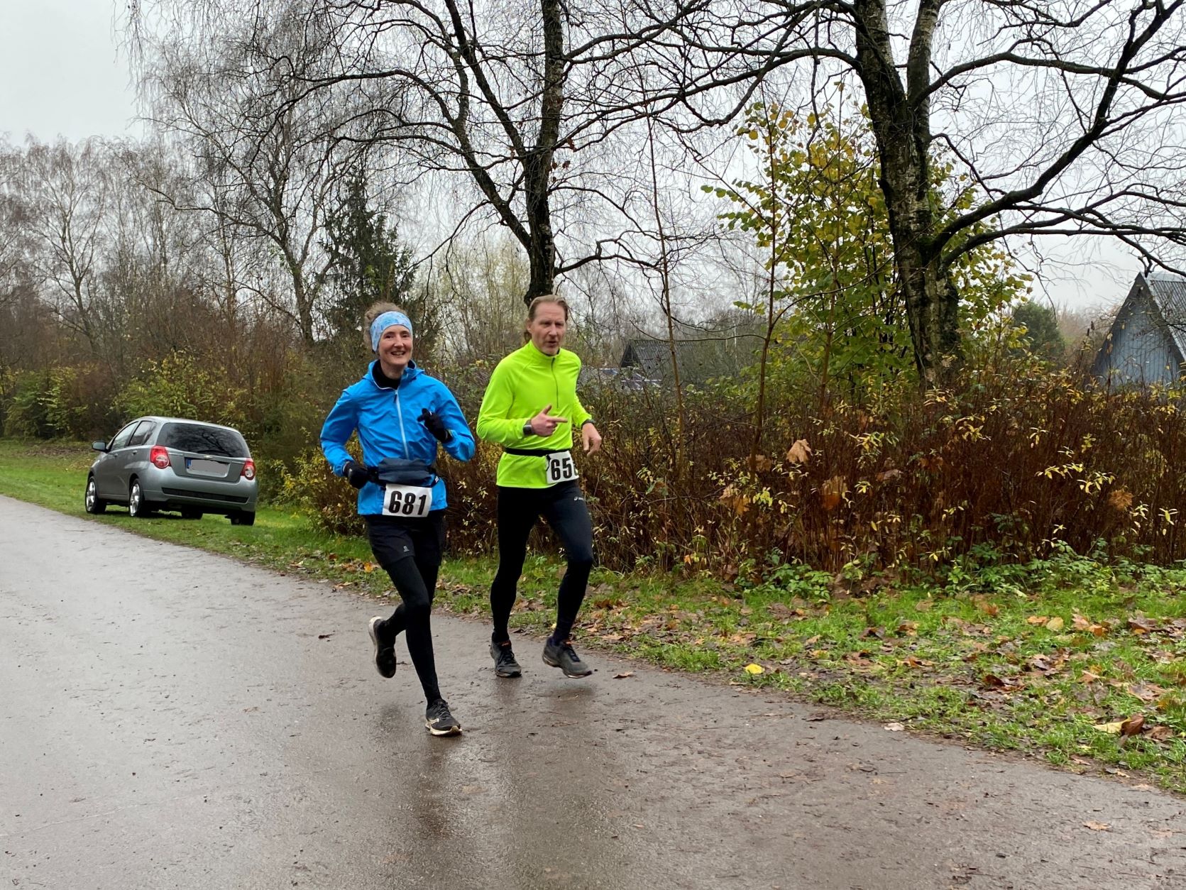 … Didi, Rolf (im Hintergrund), Dieter und Rita. Das nasskalte Wetter motivierte tatsächlich dieses Läuferquartett zu laufen!Arnes Sohn Lasse war leicht erkältet und hatte sich sicherheitshalber mit zwei Decken eingewickelt und freute sich, dass er nicht laufen musste. Naja, er hatte ja auch einen wichtigen Posten. Als Arnes rechte Hand war der Lasse für das Rundenprotokoll, die Zeitnahme und später für die Herausgabe der Urkunden zuständig. -Links steht der Klaus, der nachgemeldet hatte und heute drei Runden laufen wollte.Inzwischen war der Klaus, der die Startnummer 684 bekam, umgezogen und konnte mit Klaus B. (verdeckt), Stulle, Katrin (im blauschwarzen Outfit) und Beate den Didi, der fröhlich und energisch auf dem Weg in die zweite Runde war, anfeuern.Die Teilnehmer, die sehnsüchtig auf ihren Start warteten: Dirk, Axel, Rabea, Klaus, Arne (der Veranstalter), Jaqueline, Robert und Wojciech (erste Reihe von links nach rechts) – In der zweiten Reihe von links nach rechts: Angela, Renate, Marium, Gabi, Doris, Beate, Sabine, Regine, Doris H., Stefan,Torsten und Mario – In der letzten Reihe von links nach rechts: Sylvia, Peter, Katrin, Irma, Stulle (an der blauen Mütze erkennbar), Klaus B. (von Doris verdeckt), Uwe, Affenzahn, Sophia (Lasses Freundin) und MartinKatrin und Stulle führten … … das Starterfeld zunächst an. Dieser Moment wurde von mir und Arne fotografisch festgehalten.Interessiert verfolgten diese vierbeinigen Zuschauer aus der ersten Reihe die zweibeinigen …… Läufer, die nacheinander auf der“Leinwand“ der Vierbeiner zu sehen waren. Vorne im Bild sehen wir Stefan. Knapp dahinter erkennt man Sylvia gefolgt von Axel.Hier führen Robert und Klaus das Läuferfeld an.Ausgerüstet mit seinem Fotoapparat wollte sich Arne Zeit und Gelegenheit nehmen, um zu fotografieren. Martina (rechts), Peter (links hinter Arne) und Jaqueline begleiteten ihn. Hinter dem eben erwähnten Quartett ist die Doris zu sehen.Kaum zu übersehen war der Gleichschritt der beiden Dorise und der Gabi! Ohne zu zögern gab ich den Damen des Trios die Haltungsnote 1. Uwe sollte an diesem Tag die Möglichkeit bekommen bei der Marathondistanz den ersten Platz zu belegen! Ich machte mich zwischendurch auch auf die Strecke, um …… dieses kleine Gänseblümchen zu bewundern. – Das Gänseblümchen trägt auch den Namen „Ausdauerndes Gänseblümchen“ und ist tatsächlich eine ausdauernde, krautige Pflanze, die Wuchshöhen von meist 4 bis 15 Zentimetern erreichen kann. Es wächst auf fast jeder Wiesenfläche und blüht von März bis November. Mutig, mutig! Rabea meinte, das richtige Outfit für den Marathon an diesem regnerischen Tag getroffen zu haben! Katrin und Mario waren schnell und leichtfüßig unterwegs und hatten wie …… Karsten (links) und Stulle gute Laune, die abfärbte. Beate, heute bekommst du die Haltungsnote 1!Dirk sollte heute der Sieger beim Halbmarathon werden! Klasse, Dirk!Sylvia hatte an dieser Stelle einen leichten Vorsprung vor Axel, der sie gleich einholen sollte. Axel kam als zweiter Halbmarathoni ins Ziel. Den dritten Platz der Habmarathonis belegte die Sylvia. Glückwunsch an euch!Cornelia ist einfach nicht zu stoppen! Sie walkt immer im zügigen Tempo einen Marathon nach dem anderen. Du bist echt der Hammer, Cornelia!Robert lief gleichmäßig schnell und war von der Veranstaltung begeistert.Wojciech hat beim Laufen immer gute Laune. Hinter ihm kommt …… Klaus, der heute bei dem Wetter froh war, „nur“ drei Runden laufen zu müssen.Im Start- Zielbereich freute sich Jaqueline auf die nächste Runde, während Arne, nachdem er den Fotoapparat im Wettkampfbüro bei Lasse deponiert hatte, sich mit den Mitgliedern Manu (links) und Antje vom „Joggle Club“ unterhielt. Jetzt hieß es aber: Gas geben! Arne wollte eine bestimmte Hahn Weber Zeit erreichen und durfte jetzt nicht trödeln.Es herrschte ein reger Betrieb an der Selbstversorgungstelle. Renate witterte ihre Chance und flitzte zielstrebig in die nächste Runde. Antje und Manu warteten auf Antjes Mann Dirk, der eigentlich bald die Ziellinie überqueren sollte.Die Spaßbrillen der Damen vom „Joggle Club“ waren der absolute Hammer! „Oh, Tannenbaum! Oh, Tannenbaum, wie grün sind deine Blätter!!“Sabine freute sich hier offensichtlich auf die nächste Runde. Die Gute Laune Note 1 hast du verdient, Sabine!Rosi und Cindy begaben sich im Gleichschritt zu ihrer Vepflegung in Rosis Auto.Hier zeigte Angela die für einen Halbmarathon perfekte Laufhaltung. Im Hintergrund versorgte sich Irma an ihrer Selbstverpflegung, um kurz darauf ihre nächste Runde in Angriff zu nehmen.Axel erreichte beim Halbmarathon den 2. Platz hinter Dirk. Gratuliere, Axel!Affenzahn wollte eine Sub 7 erreichen und zog vorbei an Rita und …… dem fröhlich winkenden Dieter. Konzentriert und kampfbereit walkte Didi am Wettkampfbüro vorbei in die nächste Runde. Martin war in einer seiner letzten Runden und freute sich, bald den Halbmarathon geschafft zu haben.Endlich! Dirk lief mit großen Schritten seinem Halbmarathonsieg entgegen. Glückwunsch, Dirk! Die Girls vom „Joggle Club“ freuten sich mit ihm, hatten sie doch so lange auf seinen Zieleinlauf gewartet!Dann kam er! Uwe lief überglücklich auf der Zielgrade ins Ziel und konnte sich über den Sieg bei der Marathondistanz freuen! Herzlichen Glückwunsch, Uwe!Torsten hatte sich umgezogen und durfte sich später im Ziel über eine Sub 6 Zeit freuen. Katrin und Mario belegten, nach diesem genialen Spurt im Gleichschritt auf der Zielgrade, den zweiten Platz! Klasse gemacht!Drei glückliche Finisher! Katrin träumt schon von der nächsten Herausforderung!Rabea erreichte das Ziel knapp hinter Katrin und Mario. Gratuliere zu deinem Finish, Rabea!Robert freute sich über seinen Zieleinlauf und seine Urkunde, während Wojciech seine letzte Runde in Angriff nahm.Karsten und Stulle, wie auch …… Beate, überquerten ziemlich knapp hintereinander die Ziellinie! Glückwunsch! Zi