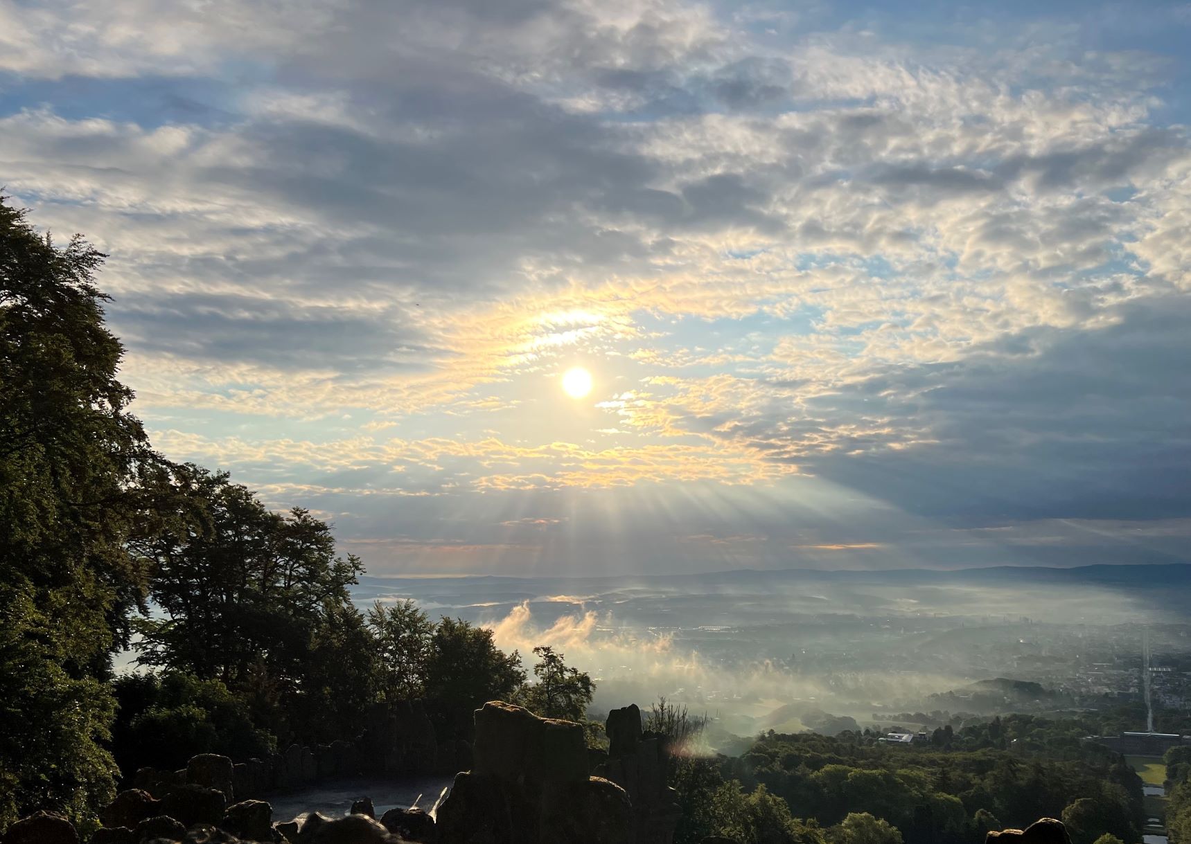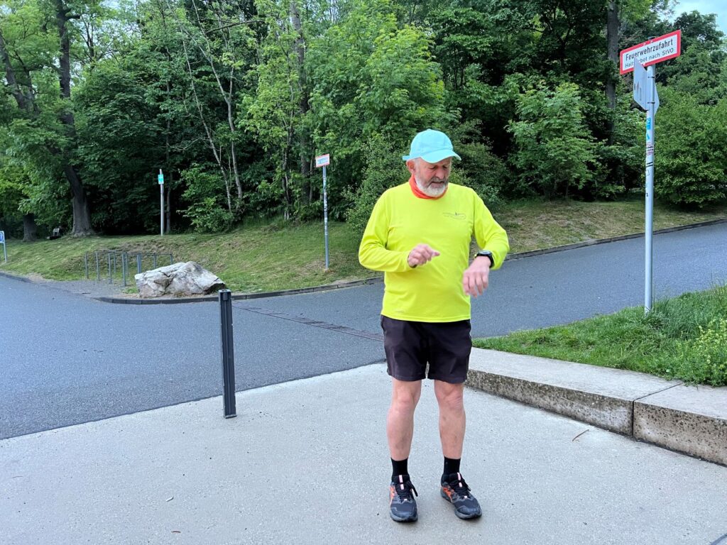 Das Wetter sah am Anreisetag vielversprechend aus. Kurz vor dem Ziel musste dieses Panoramamotiv von der Stadt Kassel mit der Herkulesstatue am Horizont fotografisch festgehalten werden.Nach einer regnerischen Nacht hieß es am nächsten Morgen um 03:30 Uhr aufstehen. Gegen 05:00 Uhr erblickten wir die majestätische Herkulesstatue. Nach Sonnenaufgang sah es erstmal nicht aus. Selbst im Nebel machte Herkules als Wahrzeichen der Stadt Kassel alle Ehre.Nun war Didi bereit seinen 1389. M/U in Angriff zu nehmen. Der Sonnenaufgang ließ auf sich warten. Es herrschte ein kalter Wind. Didi bat mich deshalb in der nächten Runde, das „Piratentuch“ für ihn bereit zu halten.Die Kartoffelrose ist sehr robust und anspruchslos. Besonders gut gedeiht sie an einem sonnigen oder halbschattigen Standort. Die Kartoffelrose hat viele Namen. Sie ist auch als Apfel- oder Dünenrose bekannt. Im Norden Deutschlands nennt man sie auch Sylter Rose.Michael war schon um 4.00 Uhr gestartet und konnte die von Sylke ausgeschriebenen Marathonstrecke und später trotzdem den Sonnenaufgang in vollen Zügen genießen.Die Gewöhnliche Rosskastanie ist ein hoher Laubbaum mit einer breit ausladenden Krone. Die weißen Blüten mit ihren feinen Zeichnungen in Gelb und Rosa erscheinen bereits im April, spätestens im Mai. Ihr Nektar lockt unzählige Insekten an. Die Früchte haben zunächst eine gelbgrüne stachelige Schale. Die Blätter verfärben sich kurz vor dem Laubfall im Herbst goldgelb.Sonnenaufgang war um 5:11 angesetzt. Die Sonne konnte sich allerdings erst eine Stunde später durchsetzen, drängte die Wolken zur Seite und stellte um 6:10 ihre sonnige Kraft unter Beweis.Über die Sonne freute sich Didi, der zunächst das Cappy gegen das wärmende „Piratentuch“ ausgetauscht hatte.Einen Marathon zu bewältigen, bedeutet auch häufiger die Verpflegungsstelle anzusteuern, was Didi hier auch tut! – Es darf auf keinen Fall zu einem Hungerast kommen oder dass man das Gefühl bekommt, zu wenig Flüssigkeit während des Laufes zu sich genommen zu haben.Die kupferne Herkulesstatue entstand zwischen 1713 und 1714 als Arbeit des aus Augsburg stammenden Goldschmieds Johann Jacob Anthoni. Das tragende Innengerüst wurde von dem Kasseler Bauschmied Johann Balthasar Klocke gefertigt. Das Rohkupfer stammte aus dem Kupfererzbergwerk Richelsdorf im Richelsdorfer Gebirge. – Warum ist Herkules nun das Wahrzeichen von Kassel? Landgraf Karl von Hessen-Kassel hatte solch eine Herkulesstatue auf einer Italienreise im Jahr 1700 gesehen und ließ sie in Kassel nachbauen.Kurz nach 7:30 Uhr kam mir Sylke freudestrahlend entgegen. Sie hatte das Auftaktstück gerade hinter sich gebracht und fing an, ihre erste von zehn Runden à 4,02 Kilometer zu bestreiten.Ich erwischte am Fuße der Herkulesstatue eine windstille Ecke. Dort wärmte mich die Sonne und ich nutzte die Gelegenheit zu einem Selfie.„Der frühe Vogel fängt den Wurm!“ Michael war durch seinen frühen Start rechtzeitig fertig, um sich auf einen sonnigen Arbeitstag zu „freuen“ und verabschiedete sich.Der Rote Wiesenklee wächst auf Wiesen und an Wegesrändern. Schmetterlinge und Bienen nutzen ihn als Nektarquelle.Sylke ist auf dem Weg … (Foto Didi)… den Herkules zu umrunden! (Foto Didi)Auf einem Achteck mit Aussichtsplattform erhebt sich die steile Pyramide, die von der monumentalen Herkulesstatue gekrönt wird. Von dieser Aussichtsplattform hat man eine herrliche Aussicht über die barocke Parkanlage, die Stadt Kassel und die Mittelgebirge. (Foto Didi)Sylke war die ganze Zeit schnell und gut gelaunt unterwegs. (Foto Didi)Vom späten Frühjahr bis in den August schmückt sich der Hornklee mit leuchtend gelben Schmetterlingsblüten. Die pflegeleichte Wildstaude für Steingarten oder Blumenwiese lockt viele Insekten an. Sylke war in ihrer letzten Runde auf der Marathonstrecke durch den Hohen Habichtwald, als ich ihr entgegenwalkte. Wie immer war sie leichtfüßig und mit einer perfekten Laufhaltung schnell unterwegs.Die Marathonstrecke verläuft durch den Hohen Habichtwald mit seiner abwechslungsreichen Landschaft …… von Wald- und Weideflächen.Wer sich eine kleine Pause gönnen will, hat die Gelegenheit, sich auf dieser Holzbank niederzulassen. Gesponsert ist die Bank von der Laufschule Kassel im Jahr 2014.Eine beeindruckende LandschaftGut getarnt kam mir Didi entgegen.Der Wollige Hahnenfuß ist eine ausdauernde, krautige Pflanze, die in der Regel Wuchshöhen von 30 bis 70 Zentimetern erreichen können. Die Blütezeit erstreckt sich von Mai bis Juli. Der Wollige Hahnenfuß wächst in Laubwäldern, besonders in Buchenwäldern und lockt durch seine leuchtend gelbe Farbe …… viele Insekten, wie hier die Gemeine Stubenfliege, an. Die Stubenfliege ist nicht so leicht eindeutig zu bestimmen. Viele Insektenarten können von Experten nicht immer eindeutig bestimmt werden. Unter den Fliegen gilt die Gemeine Stubenfliege als eine wichtige Bestäuberin. Für Singvögel sind die Fliegen eine beliebte Beute, denn sie sind reich an Proteinen und Fett.Jetzt hat der Didi seinen 1389. M/U „in der Tasche“! Glückwunsch, Schatzi!