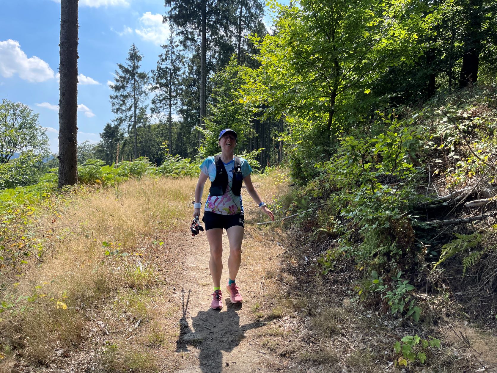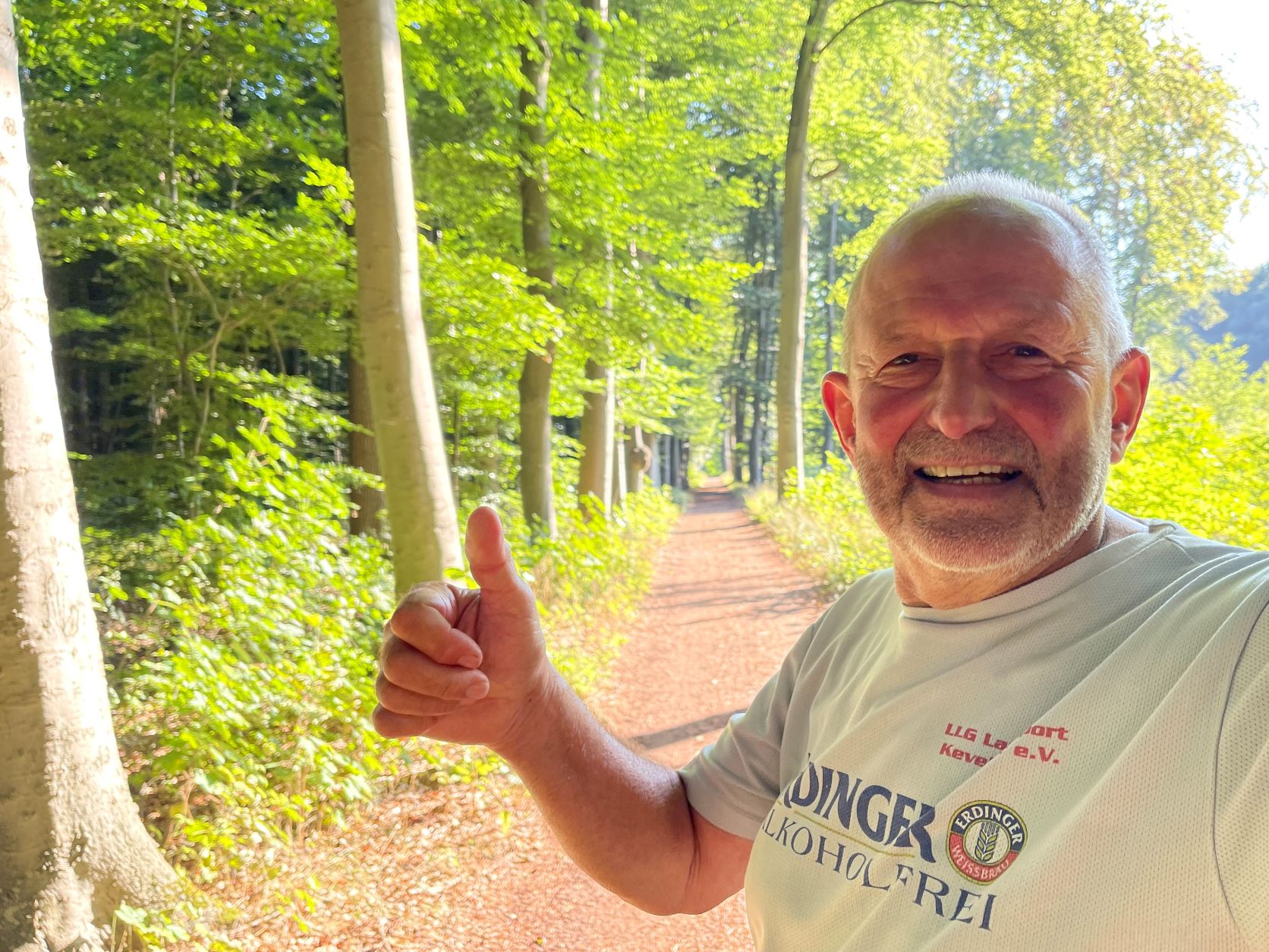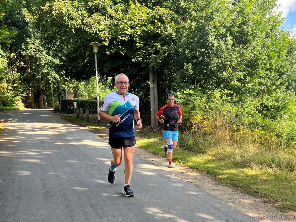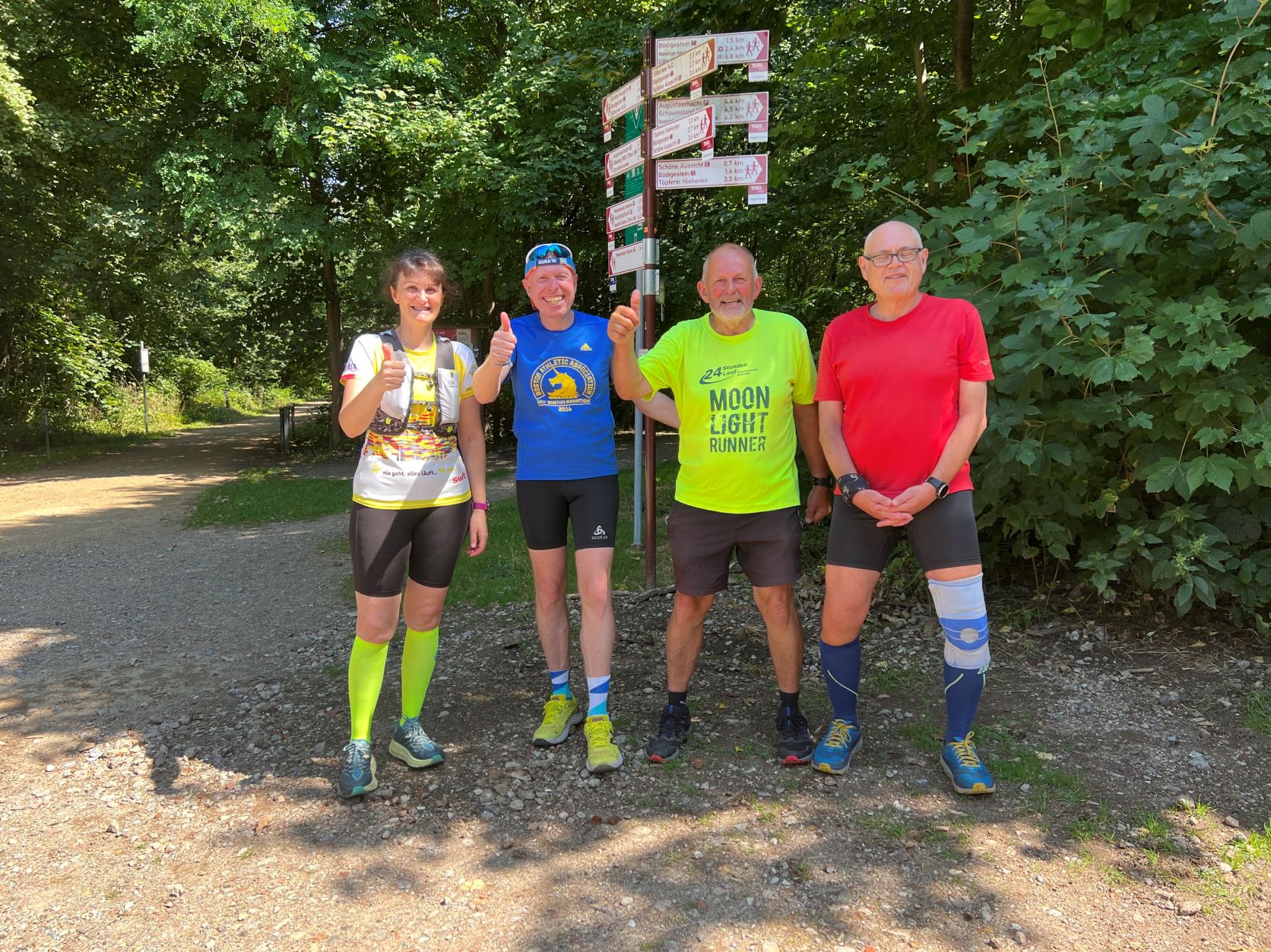 Die Rahmenstartzeit von 06:00 – 12:00 Uhr ermöglichte Didi, schon um 06:00 Uhr zu starten. Motiviert, ausgeschlafen und gut gelaunt startete Didi um 06:00 Uhr und konnte einen wunderbaren Sonnenaufgang erleben. (Foto Didi)Leicht sollte der Lauf nicht werden. Die Strecke zeigte sich als ganz schön „hüggelich“ mit etwa 140 Hm pro Runde, die 6 Mal zu laufen war. Jede Runde war 7,04 Km lang. Die Geamtlänge der Strecke betrug 42,2 Km mit insgesamt ca. 840 Hm. (Foto Didi)Didi ist als Kämpfer bekannt und denkt immer positiv! (Selfie Didi)Die Sonne wollte sich von ihrer besten Seite zeigen, was für die Läufer bedeuten würde, dass es ganz schön heiß werden sollte. (Foto Didi)In jeder Runde hatte man einen weiten Blick über den Hüggel ins weite Land. Am Horizont kann man den Piesberg bei Osnabrück erahnen. (Foto Didi)Gerd war natürlich auch hier beim Hüggel Marathon unterwegs. (Foto Didi)In jeder Runde kann man die schöne Landschaft in dieser Gegend bewundern. (Foto Didi)Wen haben wir denn da!? Michaela sammelt fleißig M/U und ist wie immer gut gelaunt unterwegs. (Foto Didi)„Da kommt er!“, riefen wie aus einem Munde …… das Empfangskommitee: Irina, Dirk und Torsten.So sieht ein Sieger aus, der seinen 1400. M/U endlich geschafft hat. Ich bin stolz auf dich, Schatzi!Zur gemütlichen Runde setzte sich dann auch Sonja dazu.Michaela war dann auch bald im Ziel und freute sich, den sehr harten Hüggel Marathon geschafft zu haben. Glückwunsch, liebe Michaela!