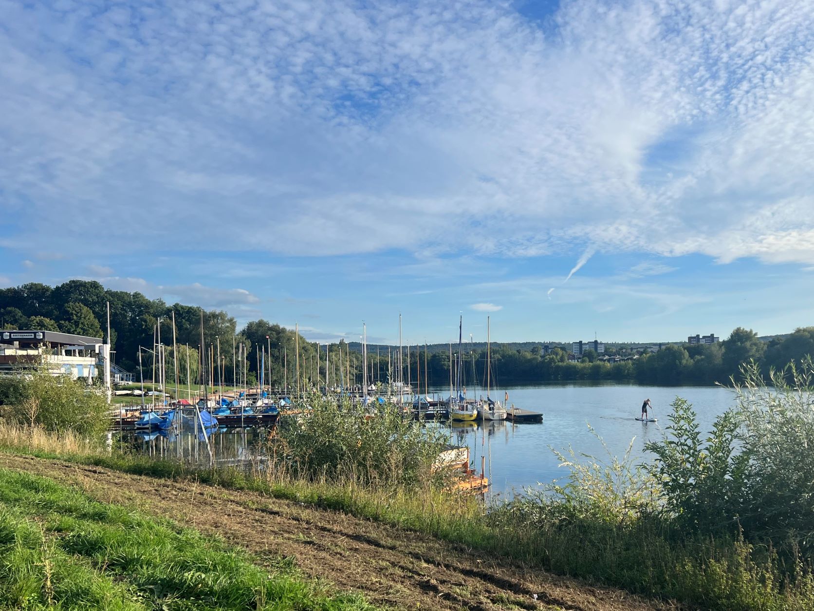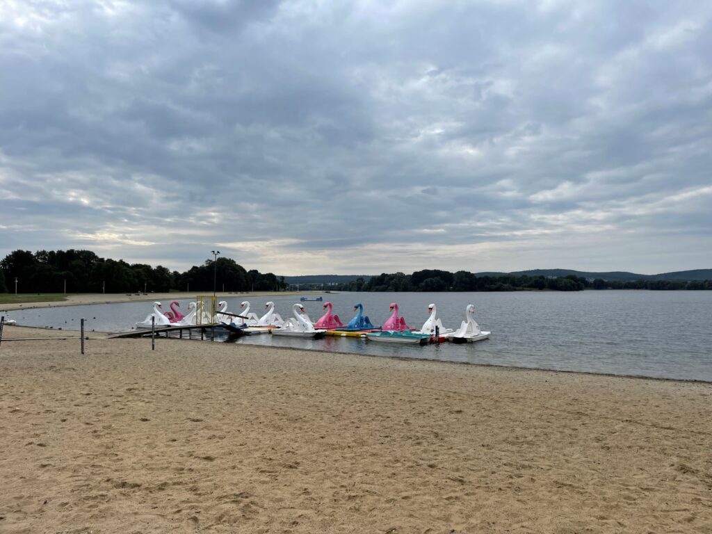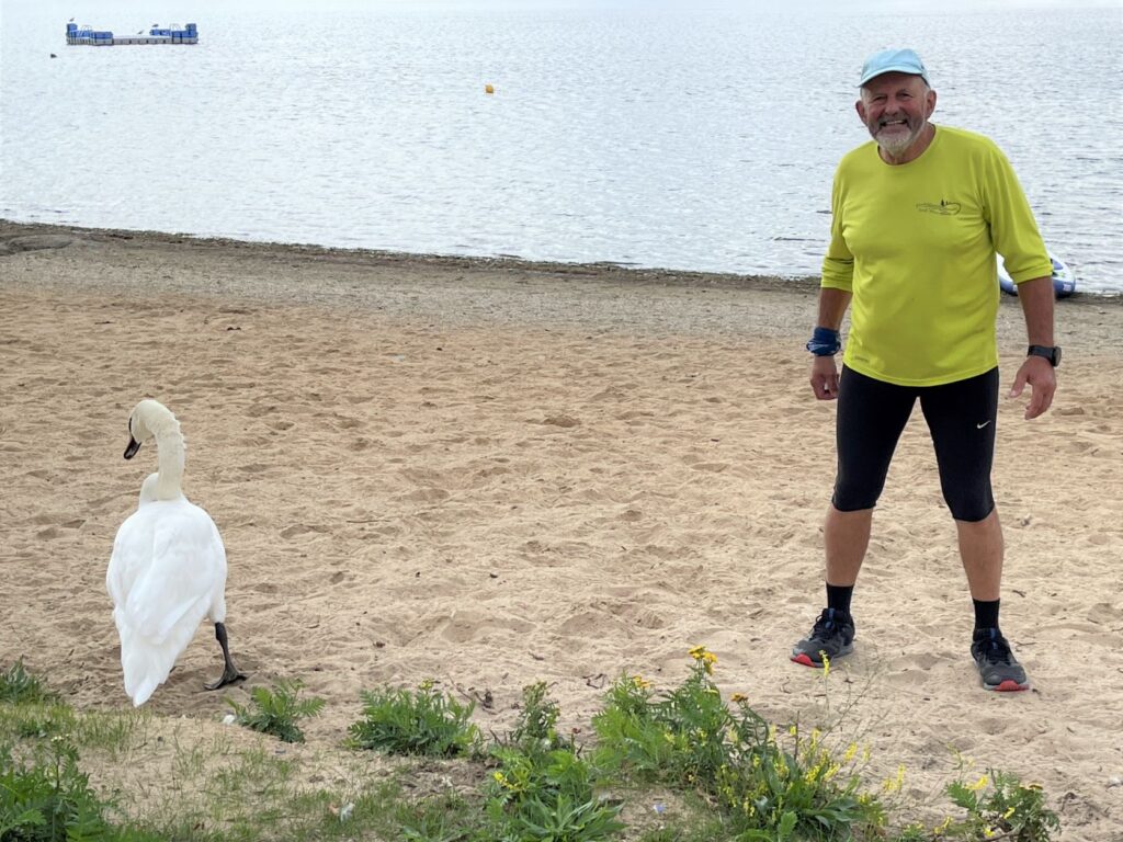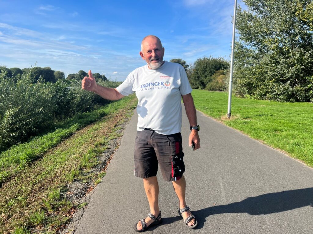 Am Salzgittersee befindet sich ein schöner WoMo Stellplatz. Dort findet Didi eine ideale Lücke für sein rotes Wohnmobil. Die Sonne scheint, also beschließen Didi und ich, eine kurze Streckenbegehung entlang des Sees zu machen. Der Salzgittersee ist ein Freizeit- und Naherholungsgebiet der Stadt Salzgitter.Unternehmungslust kennt bei Didi keine Grenzen. Mit seinem Handy in der Hand fordert er mich auf, zur Streckenbegehung aufzubrechen. Ziel ist …… „JIM´s Beach Bar“, wo …… ich mir ein großes Alsterwasser gönne und …… Didi sich ein großes Bier genehmigt. (Selfie Didi)Auf dem Rückweg zum WoMo Stellplatz entdecke ich einen Stehpaddler. Stehapaddeln ist eine Wassersportart, bei der ein Sportler/eine Sportlerin aufrecht auf einem schwimmfähigen Board steht und mit einem Stechpaddel paddelt. Links sind die Boote des Segelclubs Salzgitter zu sehen.Am Abend genießen wir einen wunderschönen Sonnenuntergang am Salgittersee.„I´m ready!“Didi trägt ein zum Wetter passendes Outfit. Gutgelaunt setzt er seine erste Runde fort.Das Blässhuhn ist neben der Stockente der häufigste Wasservogel an städtischen Gewässern.Die Edle Schafgarbe wächst als ausdauernde Pflanze und erreicht Wuchshöhen von 20 – 60 Zentimetern.Umgezogen und mit dem neuen Outfit geht es in die nächste Runde.Am „Café del Lago“ ist dieses Prachtexemplar von Segelboot aufgestockt. (Foto Didi)Diese Tretboote scheinen Didi zu einer Bootsfahrt einladen zu wollen. Didi beschließt schweren Herzens, den Marathon erst zu beenden. (Selfie Didi)„Kriege für den Frieden“ ist doch ein Widerspruch, oder? In den Schulen wird gelehrt, dass „wir miteinander reden“ sollen. – Wer Rechte hat, hat auch Pflichten! Kindern sollten angeleitet werden u.a. tolerant zu sein, Empathie zu zeigen, ihre Mitmenschen zu respektieren, Rücksicht zu zeigen, hilfsbereit zu sein und die Natur zu pflegen und zu schützen. (Foto Didi)Die Tretboote warten darauf, dass motivierte „Treter“ vorbeikommen und mit ihnen eine Runde auf dem See drehen. (Foto Didi)Auch das Schreiben englischer Wörter leidet unter dem „Schreiben nach Gehör“. Man sollte wissen, dass ein Kind, das vier Jahre seines Grundschullebens nach Gehör geschrieben hat, sich sehr schwer auf die korrekte Orthografie umstellen kann.Didi ist nicht allein unterwegs. Uli sammelt ebenfalls fleißig Läufe. Leider ist es mir nicht möglich gewesen, durch den Rahmenstart und eine Rundenlänge von etwa 5,4 Kilometern alle drei Starter fotografisch zu „erwischen“. (Foto Didi)An dieser Stelle ist der Segelclub Salzgitter auf der anderen Seite des Salgittersees zu sehen. (Foto Didi)Die Schwarze Flockenblume wächst als ausdauernde krautige Pflanze und erreicht eine Wuchshöhe von 20 bis 80 Zentimetern.Das Laufwetter an diesem Tag ist für die Läufer optimal. Da am Salzgittersee kaum schattige Streckenabschnitte sind, freuen sich die Läufer, wenn die Sonne sich nicht so oft zeigt. Als Paparazzi wünsche ich mir Sonne satt, damit meine Fotos eine besondere Ausstrahlung bekommen.Eine verblühte Eselsdistel„Solange ein Vogel seine Federn hat, fliegt er.“ (Voltaire)Didis Wunsch ist mir Befehl; Seine Verpfleung wird entlang der Strecke plaziert! So spart er sich ein paar Meter. Veranstalter Marc schaut nach dem Rechten.Feuerwanzen sind ungefährlich und richten kaum Schaden an. Sie sind sehr nützlich, da sie Blattläuse und andere Schädlinge aussaugen. Feuerwanzen ernähren sich auch von Pflanzensäften.Die Rosskastanie wächst in Parks und an Straßen, wo sie angesichts der Größe eine dominierende Rolle spielt. Die Kastanie kann bis zu 25 Meter hoch werden. Die Früchte der Rosskastanie sind Kapselfrüchte, die sich in einer stacheligen Fruchthülle befinden. Im Herbst fallen die Früchte mit der Fruchthülle vom Baum. Beim Aufprall auf den Boden zerspringt die Fruchthülle und gibt die Kastanien frei. – Die Wildschweine fressen sehr gerne Kastanien.Der Höckerschwan ist der in Deutschland am häufigsten vorkommende Schwan. Er brütet an Gewässern aller Art und zeigt sich relativ unaffällig Störungen gegenüber. (Foto Didi)Wie Ihr seht, sind im Hintergrund alle Tretboote inzwischen unterwegs. – Sehr beeindruckt zeigt sich der Höckerschwan Didi gegenüber nicht. Es sieht jedoch hier so aus, als würde sich der Schwan bereit machen, Didi in die Flucht zu jagen. Didi bittet deshalb eine Spaziergängerin, schnell ein Foto zu machen, damit die beiden den Sicherheitsabstand einhalten können. (Foto Spaziergängerin)