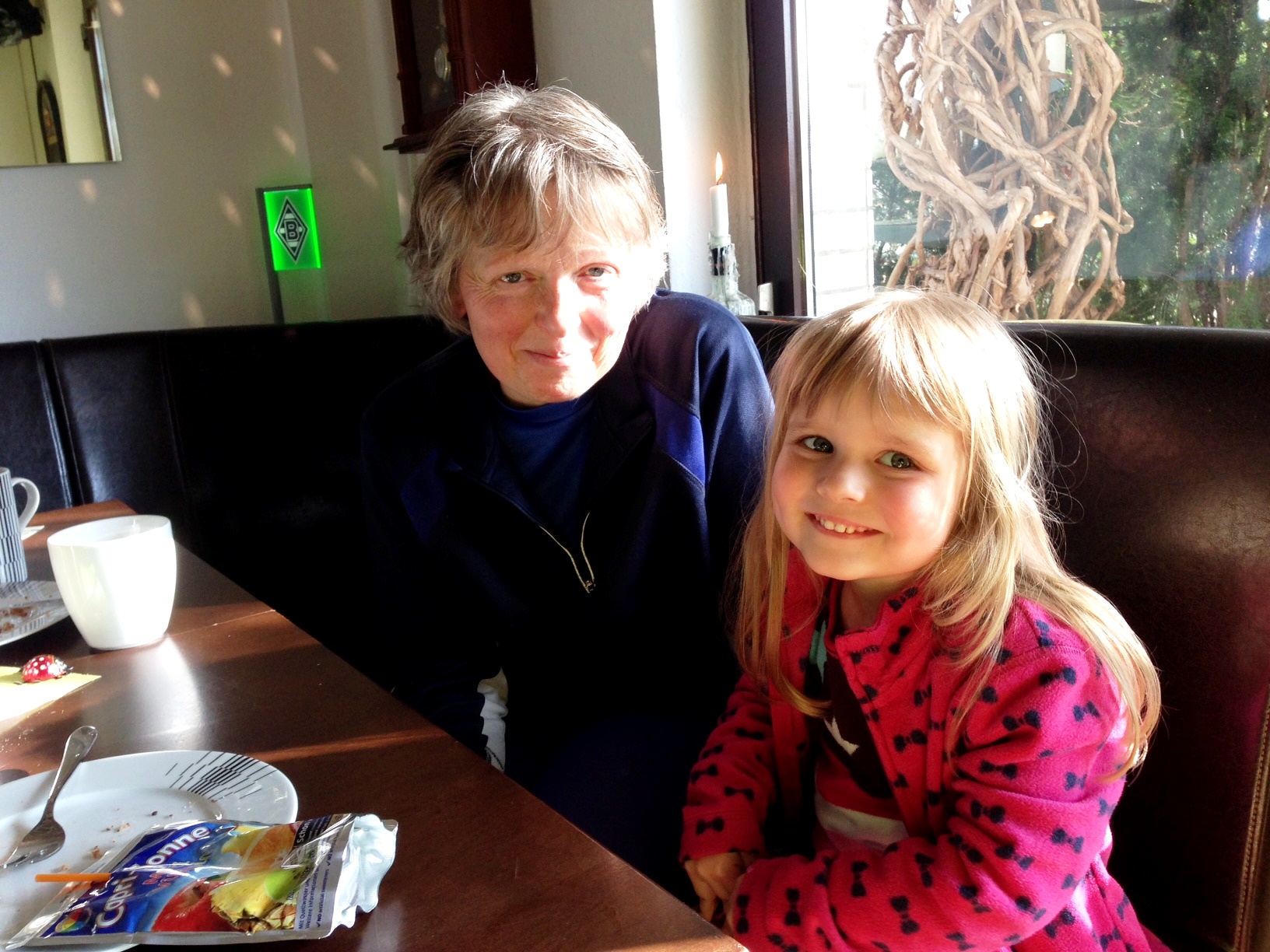 Im Partykeller des Fischerhauses warteten Michael, Marc, André und Brigitte mit Kuchen und Kaffee. Den Kuchen hatte Brigitte gebacken und der war richtig lecker! Brigitte und Philine hatten sich inzwischen richtig angefreundet und puzzelten eifrig gemeinsam, während ich den leckeren Kuchen aß und versuchte, zu regenerieren.