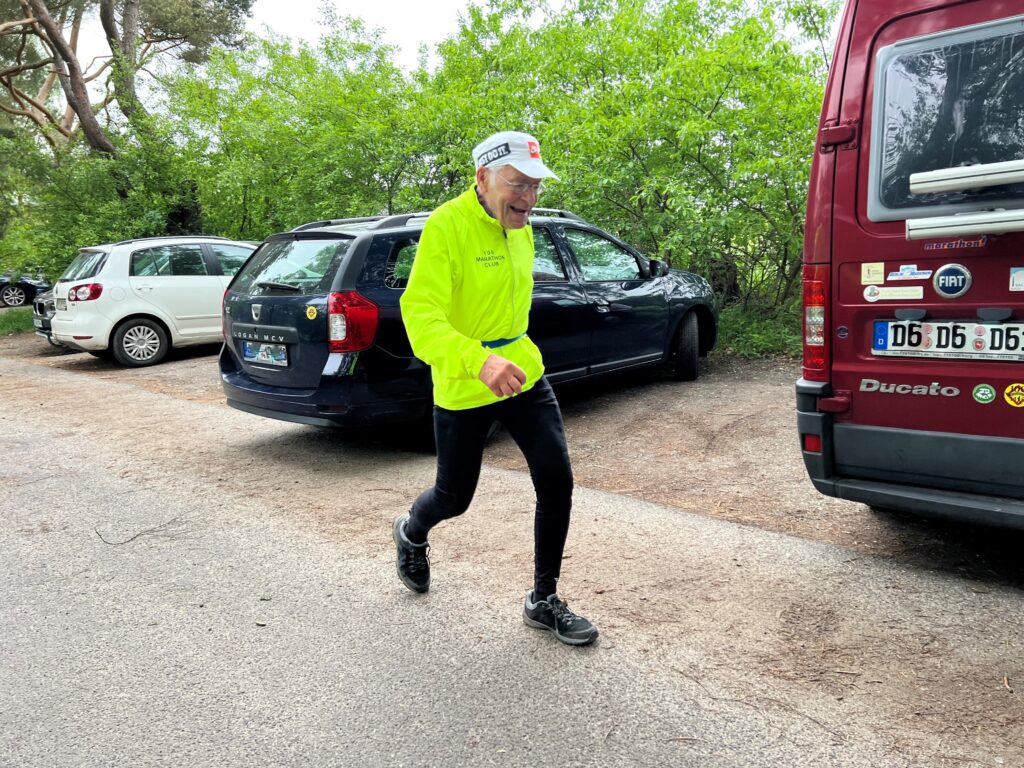 Werner hatte in seinem Auto auf dem Buchwedeler Parkplatz übernachtet, …… wie auch Volkmar. „Nur die Harten kommen in den Garten!“ Die beiden M75iger Werner und Volkmar starteten zusammen mit Didi. (v.r.n.l.)Die drei Frühstarter verschwanden bald von der Bildfläche.„Abendrot – Schönwetterbot, Morgenrot – mit Regen droht„, lautet eine alte Bauernregel. Sollte es an diesem Lauftag trocken bleiben? Cindy hatte es wieder mal sehr eilig, auf die Strecke zu kommen. Rosi sortierte erstmal mit einer Engelsgeduld Cindys Geschirr. Der Debütant, Ehrenmitglied Hajo, war bereit zu starten. „Die Drei Musketiere“ hatten ihre erste Runde beendet. Hinter Volkmar versteckte sich Werner.Da ist er ja, der Werner mit seiner Verpflegung in der rechten Hand! Auch Volkmar hatte für die nächste Runde gesorgt.Die Drei Musketiere nahmen eine neue Runde unter ihre Füße.Cornelia startete als erste Läuferin voller Zuversicht. „Bekomme ich jetzt mein Leckerli?“, wollte Cindy wissen. Diesen fragenden Blick ignorierte Rosi. Dann hielt sie an, um …… ein paar Worte mit mir zu wechseln. Auch die total entspannte Cindy hielt an und hörte aufmerksam unserer Konversation zu und wartete geduldig, weiterlaufen zu können.Hajo im Laufschritt in die nächste Runde!Sven, Winfried, Ingo und Rabea sorgten für dieses „Gutelaune“- Startfoto. Als …… dann Ingo den Versuch startete, „runter zu zählen“, bekam Rabea einen Lachanfall. Der Start erfolgte trotzdem ohne Zwischenfälle. Sven und Winfried amüsierten sich köstlich.Jakob zeigte sich startbereit und wirkte sehr motiviert, …… musste nur seine Uhr stellen und konnte deshalb nicht Cornelias Gruß erwidern.Zwei Lauffreunde im farblich abgestimmten Outfit liefen den Marathon gemeinsam bis ins Ziel. Dann entschied sich Didi doch noch für einen Ultra. (Foto/Selfie Didi)Die Ponys vom Ponyhof konnten auch frische Luft schnappen.Mit Stöckern ging es für Hajo in die dritte Runde. Wird er die Marathondistanz schaffen?Cindy und Rosi genossen den Lauf im Buchwedel.Cornelia war im Buchwedel flott unterwegs!Gut gestärkt ging es für Ingo und Winfried weiter.Nur noch eine Runde und „ich habe fertig!“ Rabea genoss ihren Run!Sven startete das erste Mal im Buchwedel und war von der Strecke begeistert.Die Sonne sorgte für ein „Gutelaune-Selfie“!Jakob in seinem Element Die Samen der Pusteblume machen sich selbständig: „Wir haben einen wichtigen Auftrag!“Mit vollem Enthusiasmus begann Jakob seine letzte Runde! Rosi und ihre Cindy hatten Spaß, wobei Cindy nur ihr Leckerli im Kopf hatte und an dieser Stelle den Lauf schnell beenden wollte.Auch, wenn Rosi das Leckerli für Cindy nicht gleich aus der Plastiktüte herausbekam, wartete Cindy geduldig. Cindy beobachtete Rosi genau und hoffte auf ein baldiges Leckerli.Liebe Rabea, danke für diese hübsche Petunie! Ich habe mich sehr gefreut! Alle drückten wir Hajo die Daumen! Volkmar … (Foto Didi)… und Didi begleiteten Hajo eine Weile und gaben ihm mentale Unterstützung. (Foto/Selfie Didi)Erleichtert im Ziel fachsimpelten Jakob, Rabea und Sven, der mir versprach, bald wiederzukommen.Die Roggenpflanzen werden größer als andere Getreidesorten. Die Grannen sind kürzer als bei der Gerste. Im Gegensatz zur Gerste sind die Körner beim Roggen länglich. Auch dieses Getreidefeld charakterisiert die Landschaft im Buchwedel. (Foto Didi)„Ich habe es nicht mehr weit, bis ich … (Selfie Didi)… einen weiteren Zähler erreicht habe!“, scheint Didi dem Leser dieses Berichtes sagen zu wollen. Das konnte er mit Freude feststellen, als er …… beim Überqueren der Ziellinie nach dem Ultra auf seine Uhr schaute.Im Gleichschritt und mit einem synchronen Blick auf ihre Uhr, überquerten Cornelia, Ingo und Winfried die Ziellinie.„Gratuliere, Kumpel!“ Ingo …… und Winfried bedankten sich für einen gelungenen Lauftag.Cornelia meinte, dass Werner und Hajo noch auf der Strecke seien. Inzwischen waren Volkmar und Werner wegen „Schlafmangels“ schon auf dem Heimweg. – Die Spannung stieg. Wann würde Hajo die Ziellinie überqueren und sein Marathondebüt im Buchwedel feiern? Da diese Frage nicht so schnell beantwortet werden konnte, beschlossen Ingo, Cornelia und Winfried den Heimweg anzutreten und verabschiedeten sich bei Didi.Plötzlich tauchte der siegessichere Hajo auf und überquerte die magische Ziellinie mit einem Marathon in der Tasche. Glückwunsch, Hajo! Das Warten hatte sich gelohnt!!! Didi freute sich und Hajo strahlte .