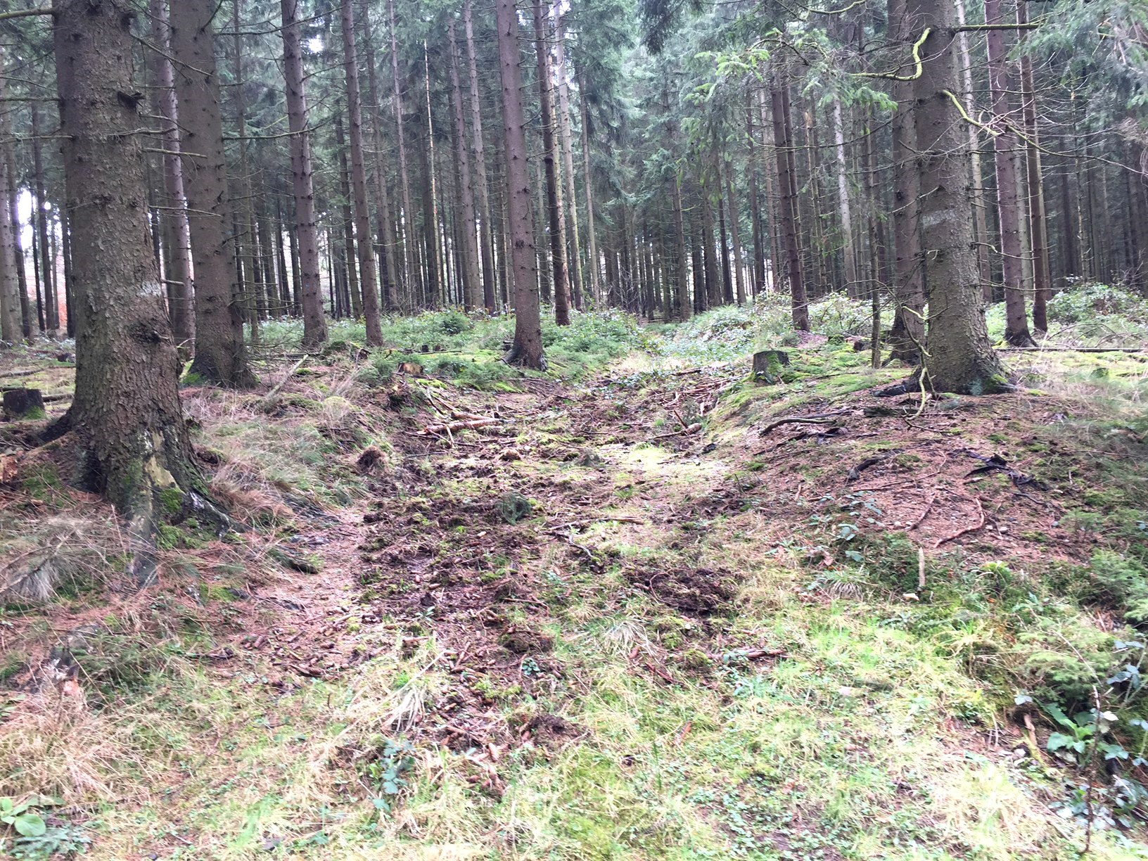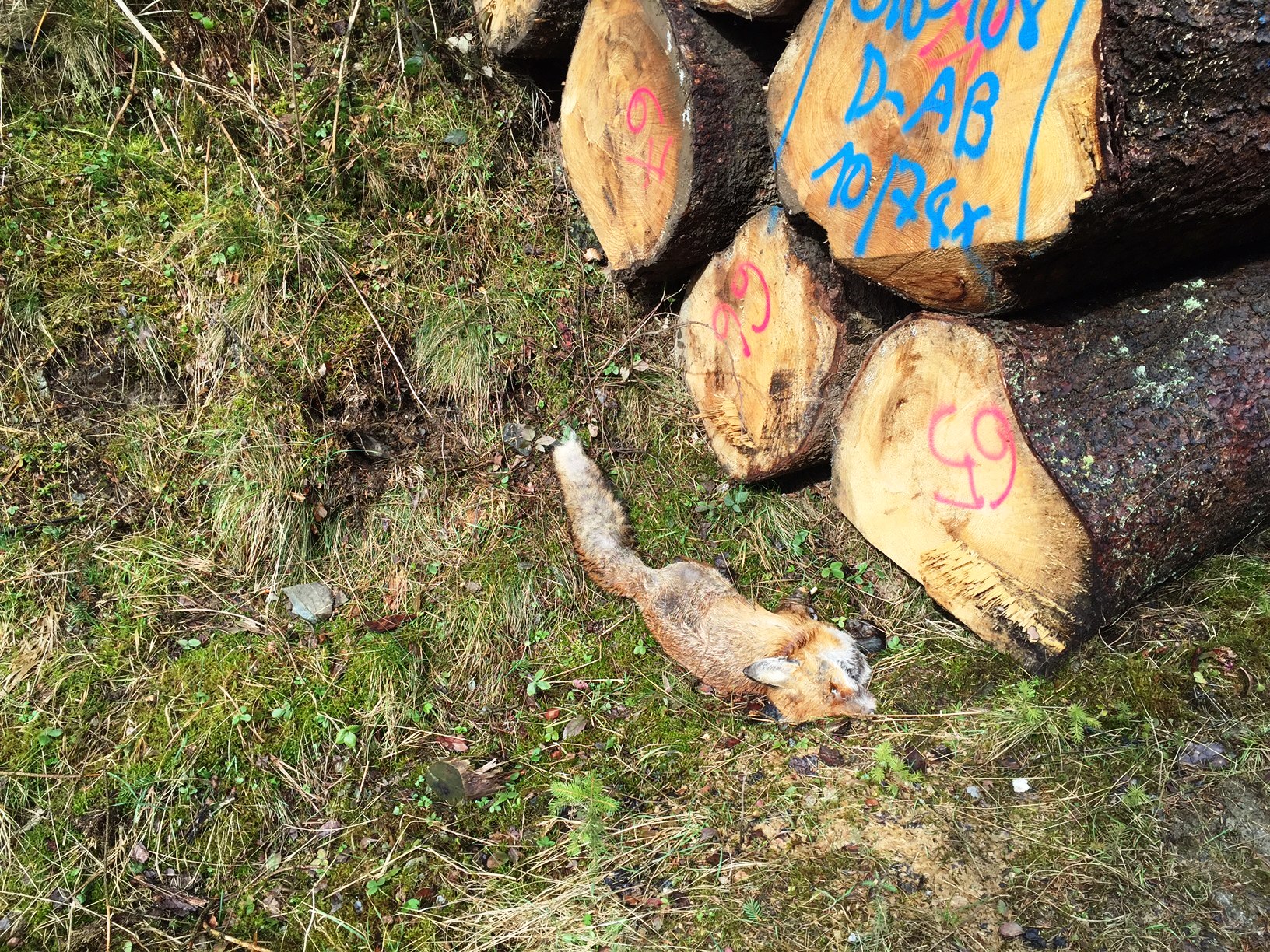 In meiner zweiten Runde suchte ich einen geeigneten Platz für einen Boxenstopp. Da entdeckte ich einen toten Fuchs. Den Fund meldete ich dem Förster, der meine Meldung sehr gelassen aufnahm. Er meinte, dass die Wildschweine sich in der Dämmerung den Fuchs schnappen würden und ihn damit schnell beseitigen würden.