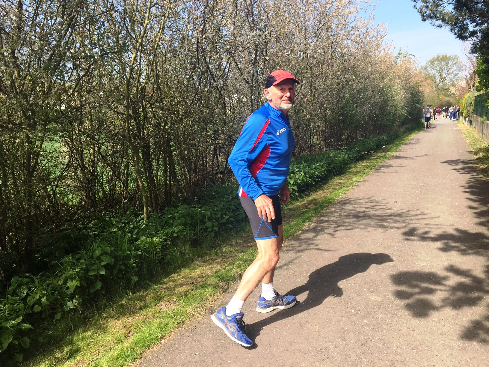 Dann entschloss er sich, mich vorwärts laufend eine halbe Runde zu begleiten. Dabei fielen mir seine neuen Schuhe auf.