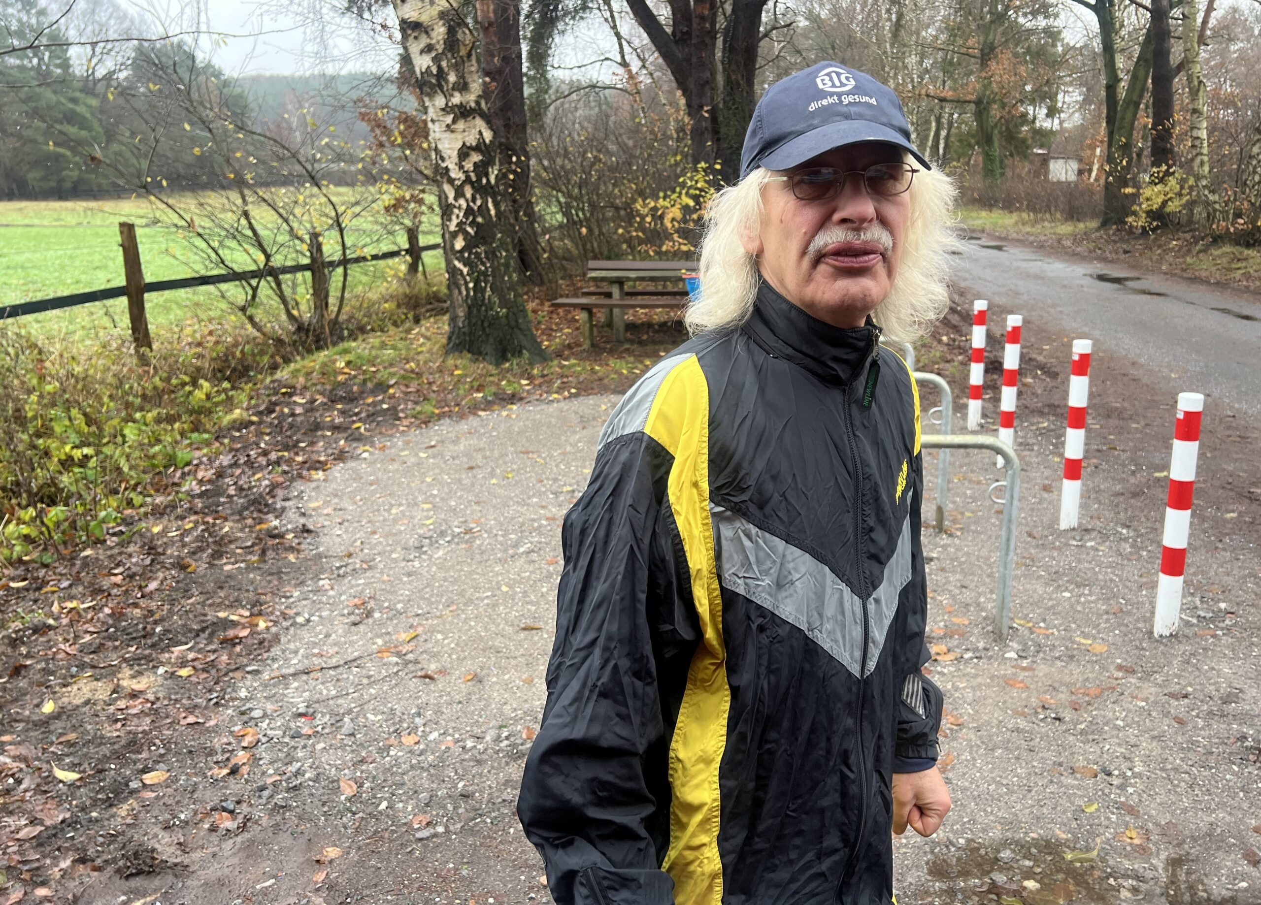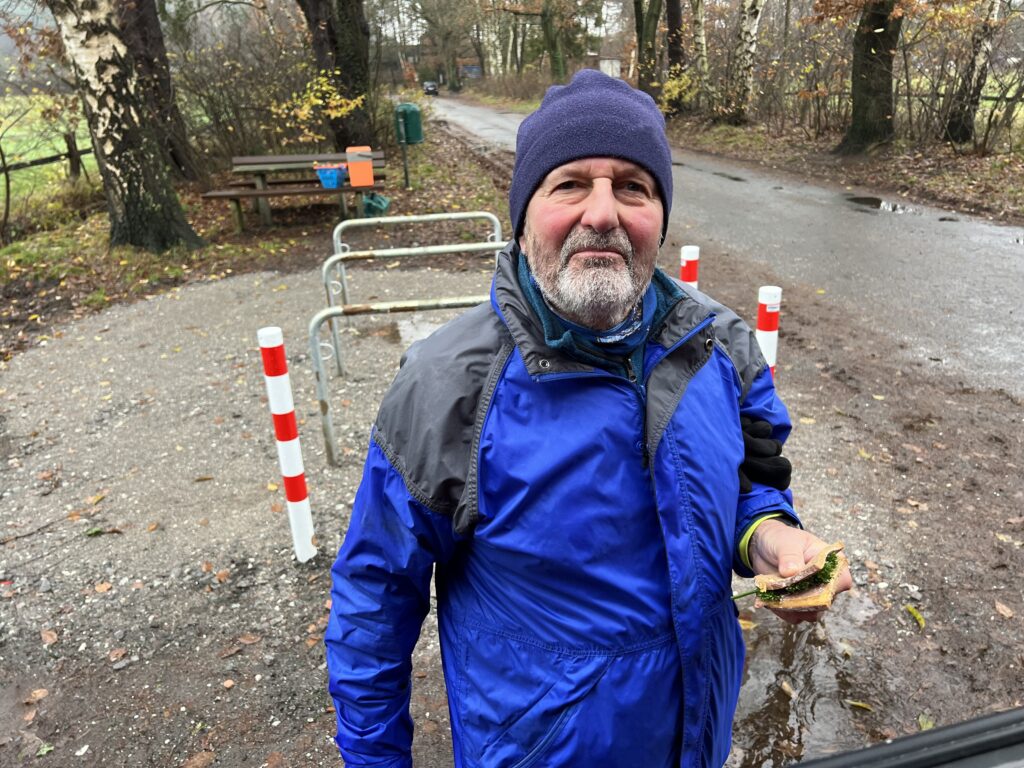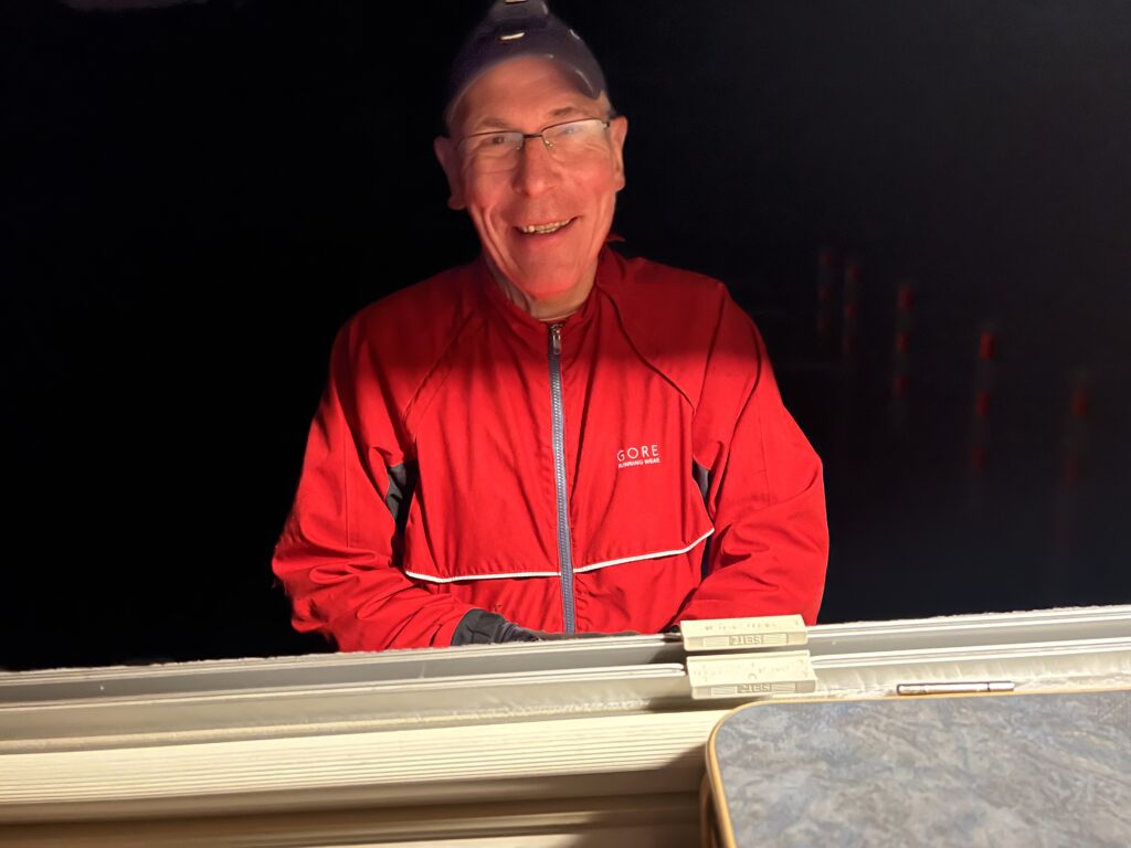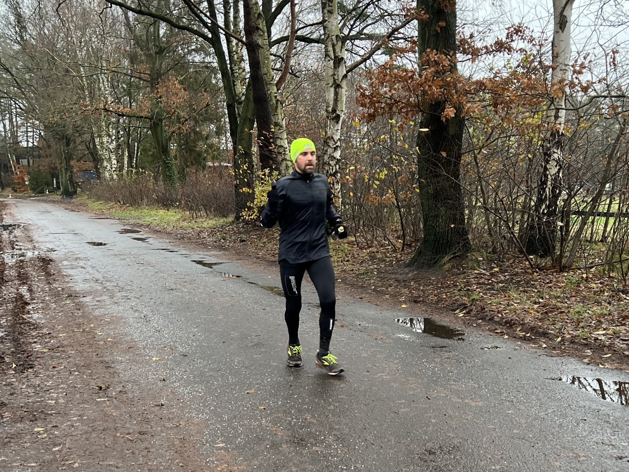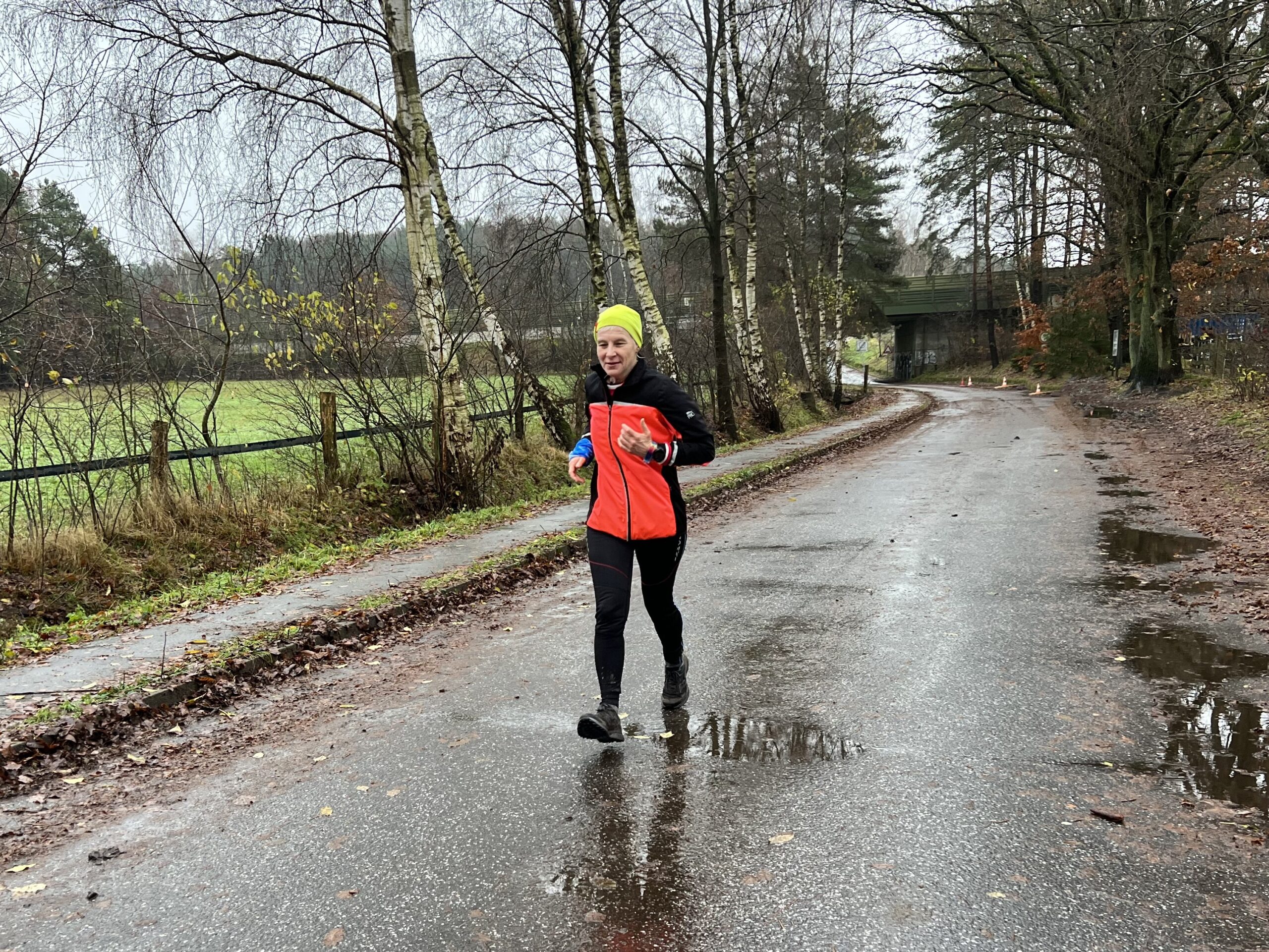 … Didi stand um 05:00 Uhr mit der Stirnlampe bereit zum starten. Eine Stunde später …… folgte Gerd, der sich auf die 42,604 km durch den Buchwedel freute.Rosi bekam erstmal ihre Nikolaussocke, die sie am Nikolaustag wetterbedingt nicht bekommen konnte. Dann ging es für sie und Cindy auf die Marathonstrecke durch den Buchwedel.Michael suchte in seinem Kofferraum nach seinem Weihnachtsgeschenk für den Veranstalter, bevor er … … seine Marathonzeit mitteilte.Aha, dafür sollten die Metallbügel sein!Christoph versuchte am Start die hässlichen Metallbügel verschwinden zu lassen. Könnte aber mit Fleckenkorrektur besser gehen. Im Buchwedel herrschte schon Weihnachtsstimmung.Der „Läuferweihnachtsmann“ war auch schon fleißig.Das ist die berüchtigte Steigung etwa bei Kilometer 5,5. Für jeden Läufer ist dieser Streckenabschnitt jedes Mal eine Herausforderung.Birgit und Christoph genossen die Atmosphäre im Buchwedel. Allerdings wäre sie mit Sonne schöner.Rosi und Cindy ganz entspannt unterwegsWolfgang meldete sich an.Rosi und Cindy sind ein eingespieltes Team.Diese Foto hat Seltenheitswert. Didi spaziert und kommuniziert mit Jakob! War wohl anstrengend, so musste Didi sich mit einem Brot, belegt mit Heidefrühstück und Petersilie, stärken.Fiete hielt Herrchen Olaf auf Trab und gab immer wieder eine neue Richtung an.Gerd holte sich eine „Banane to go“ aus seinem Auto und setzte zu einer neuen Runde an.Das Wetter war ungemütlich. Trotzdem begab ich mich für ein Selfie an die frische Luft.Birgit lief ein flottes Tempo in eine neue Runde.„Ich genieße noch den Buchwedel für eine Weile!“ Didi machte einen zufriedenen Eindruck.Hübscher BaumschmuckGerd – gut gelaunt unterwegsDidi wurde auf seinem Handy von Gerd fotografiert. Das ist eine gelungene Aufnahme, wie ich finde!Wolfgang sprintete ins Ziel, um …… seine Laufzeit des heutigen Trainigs abzugeben. Glückwunsch!Ein letztes Mal musste Birgit an dieser Pfütze vorbeilaufen.Im Ziel wartete Fiete im 100 MC Outfit ungeduldig und kläffend auf …… Frauchen Birgit, die trotz Verlaufens eine sub 05:00 Stunden lief und den 3. Platz erreichte. Herzlichen Glückwunsch, Birgit! Gerd lief mit einer neuen Hahnzeit über die Ziellinie. Gratuliere!Christoph sicherte sich den 1. Platz mit einer Sub 04:00 Stunden Laufzeit! Super, Christoph!Didi brauchte ab jetzt nur 3 Hahnzeiten und könnte sich dann über den 22. Hahn freuen! Didi, Christoph und Birgit wünschen allen Lesern eine besinnliche Vorweihnachtszeit.