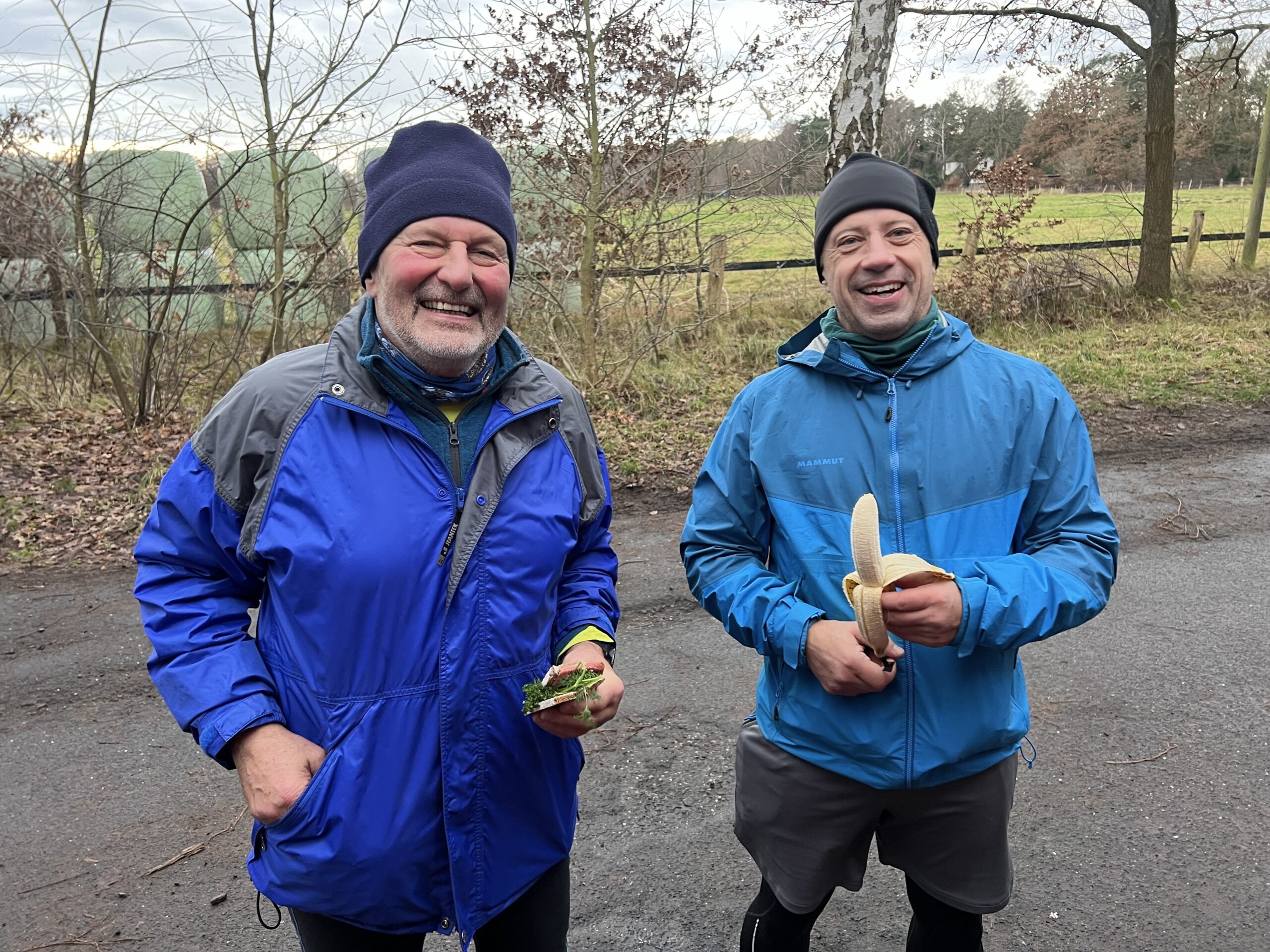 Der 31.12.2023 sollte ein besonderer Tag werden. Die Überraschungsgeschenke und Berliner durften Didi und ich nicht vergessen. Gegen 04:30 Uhr fuhren wir zum Start – und Ziel des Wanderparkplatzes Buchwedel. Unser Jubilar „durfte“ erst gegen 09:00 Uhr starten, um mit dem Veranstalter gleichzeitig ins Ziel zu kommen.
