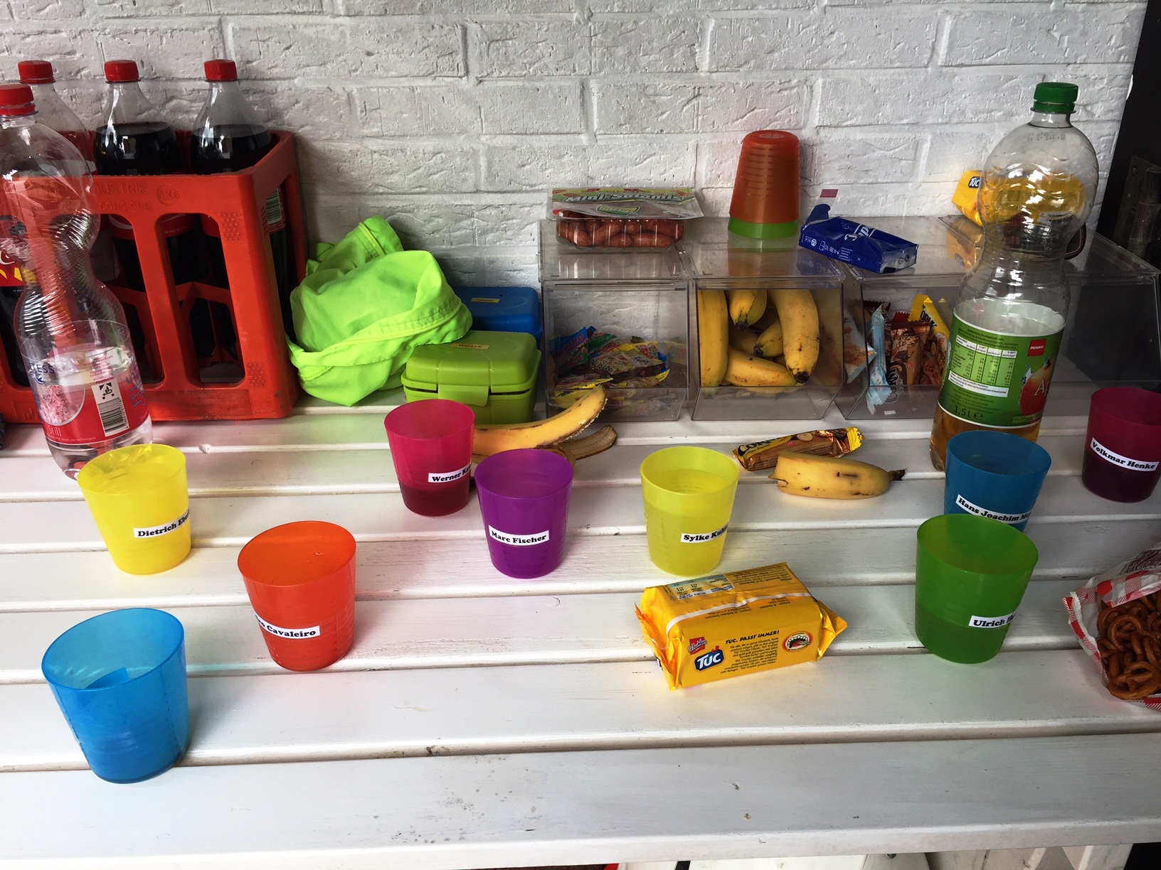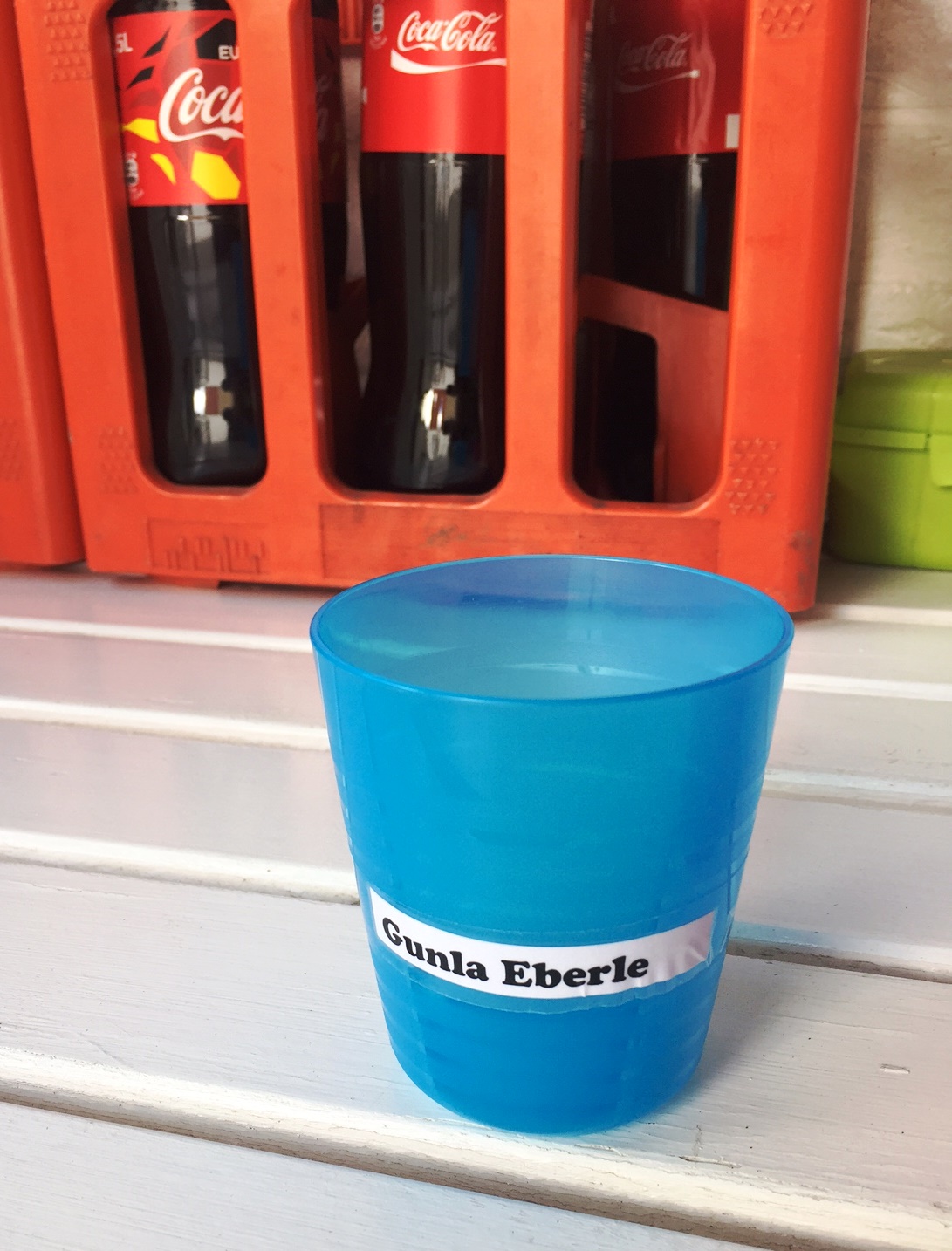 Auf dem Verpflegungstisch stand mein Becher bereit, um aufgefüllt zu werden. Nicht nur ich, nein jeder Läufer, der bei Marc startet, bekommt einen Becher in seiner Wunschfarbe und mit seinem Namen versehen.