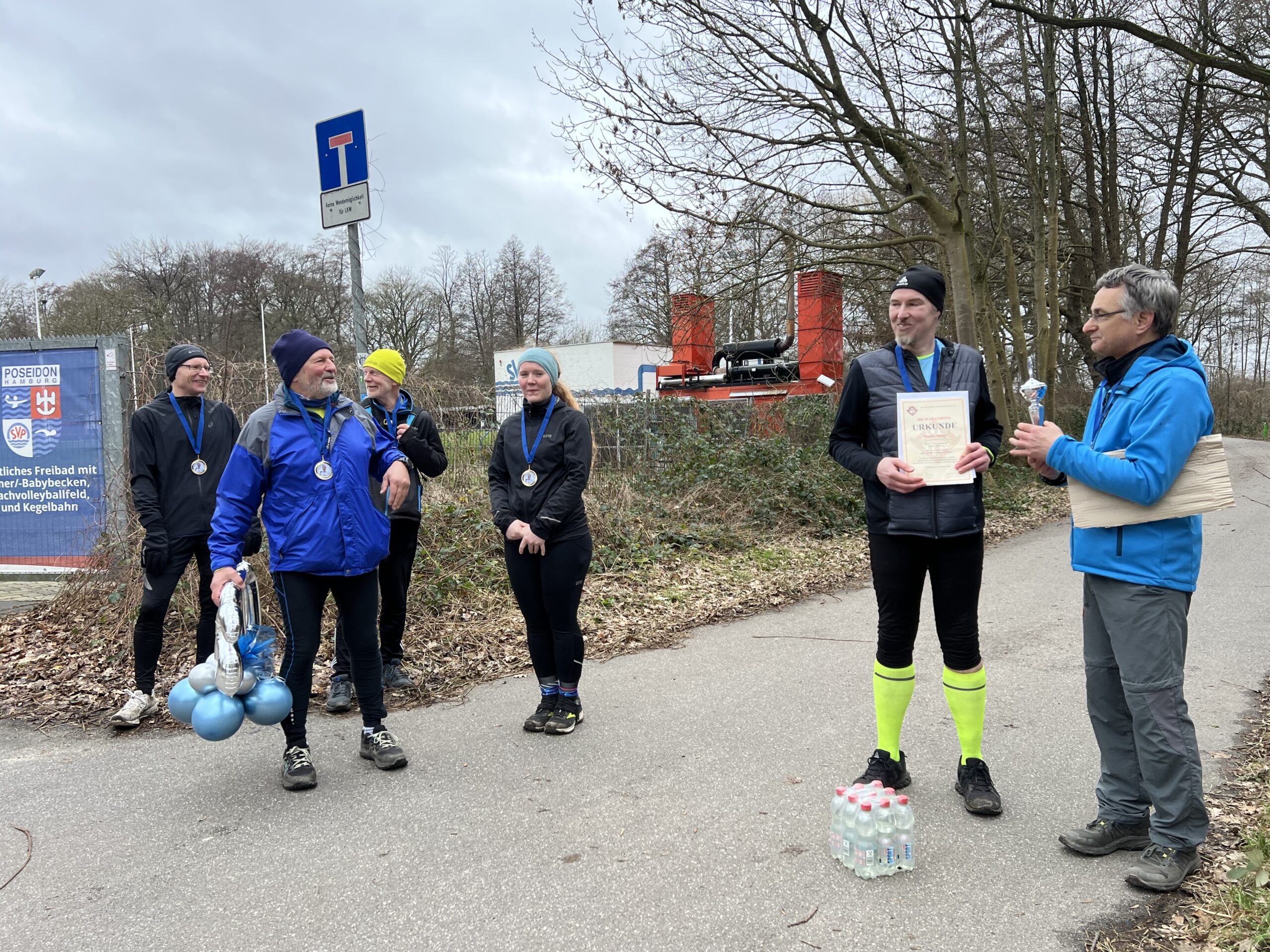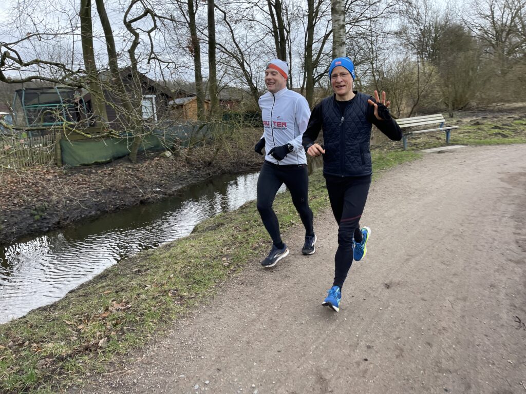 Martin wollte seinen 200. M/U mit Lauffreunden am 04.02.2024 in Niendorf bestreiten. Stephan und er hatten die Strecke, die durch Wohngebiete, entlang der Kollau und durch das Niendorfer Gehege führte, gemeinsam vermessen.