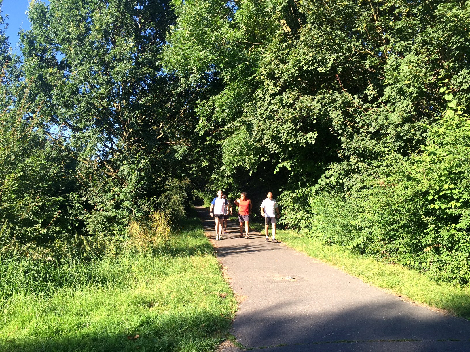Gestärkt lief jeder in seinem Schontempo weiter. Zwischendurch war es Gott sei Dank auch möglich schattengebende Streckenabschnitte zu durchlaufen. Da konnte man „zügiger“ laufen oder walken.