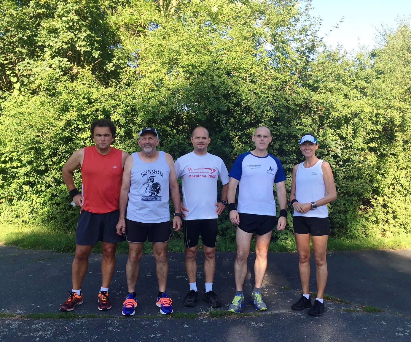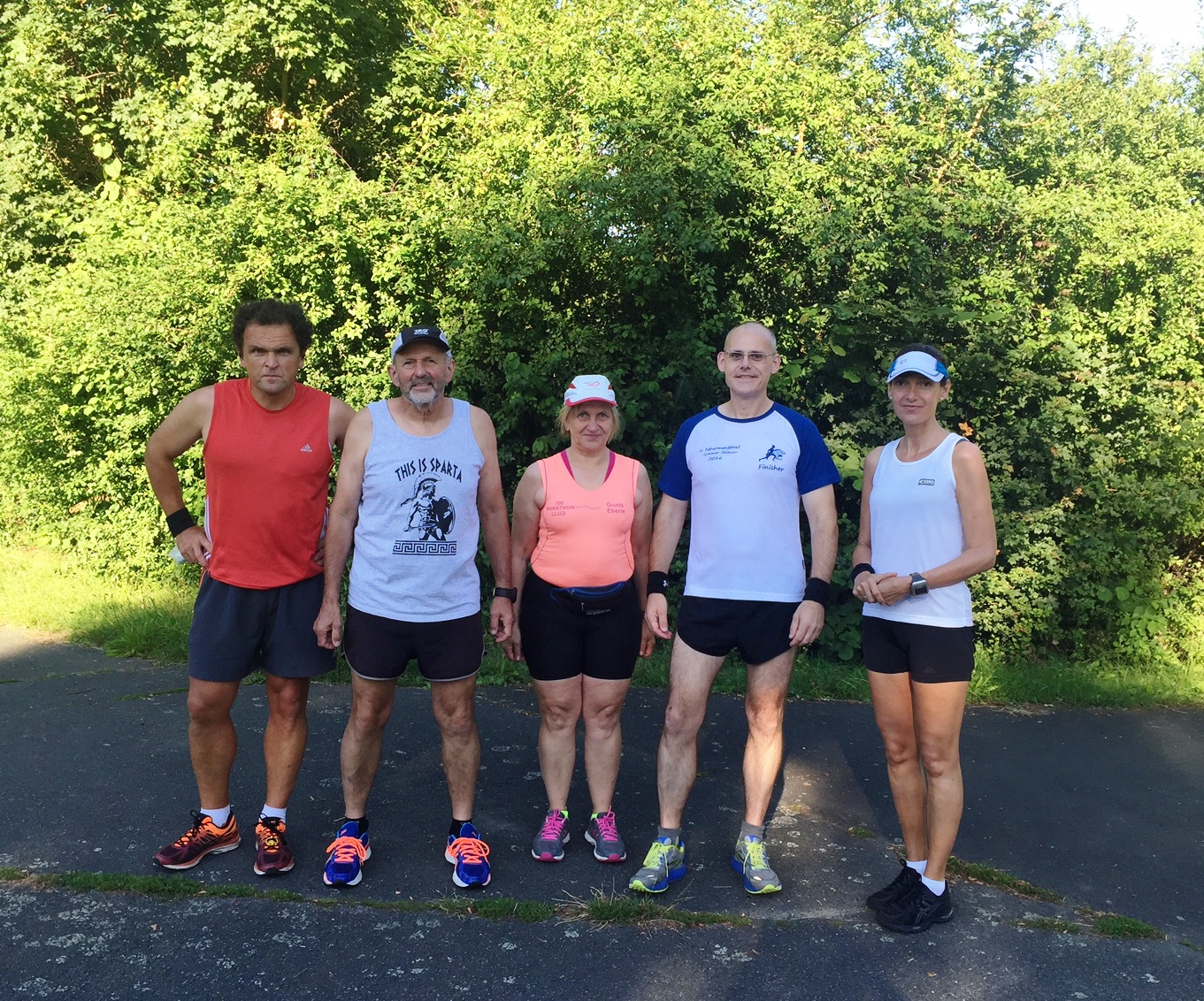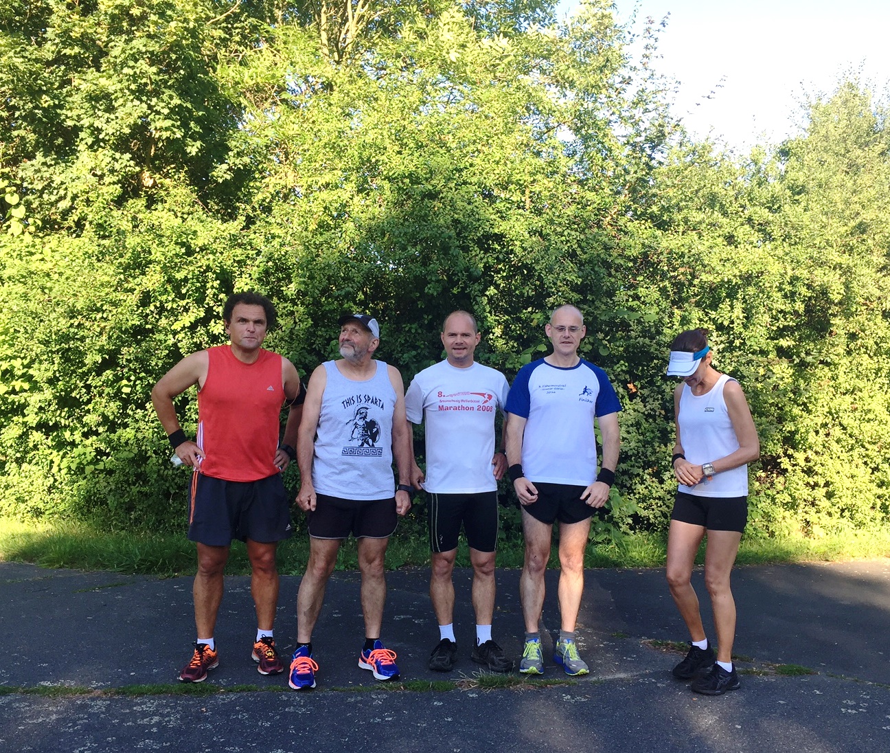 Aber dann war alles gut und alle sechs angemeldeten Starter begaben sich in Position für das Starterfoto. Nein, doch nicht! Sylke lief gedanklich die Strecke schnell ab und Didi beobachtete den Himmel und schien festzustellen, dass es an diesem Tag mal wieder sehr heiß werden würde. Recht sollte er haben!
