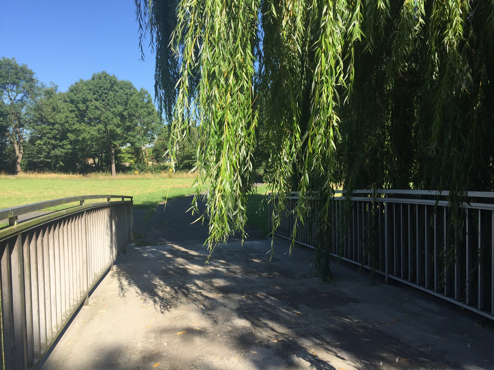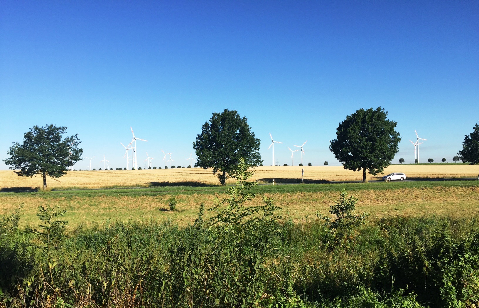 Geht doch! Bald war das Läuferfeld für mich nicht mehr sichtbar. So konnte ich mich auf meine fotografische Aufgabe konzentrieren. Ich versuchte zu laufen, musste aber bald enttäuscht feststellen, wie sehr mir jetzt schon die Hitze zu schaffen machte. Tja, so war es nun mal. Es war mal wieder nicht mein Tag! Na ja, dann musste ich wohl mich für das Power-Walking entscheiden. Ab und zu legte ich eine Fotopause ein. Der Himmel war strahlend blau, sodass die Umgebung um den Salzgittersee auch für Krähen richtig malerisch wirkte.