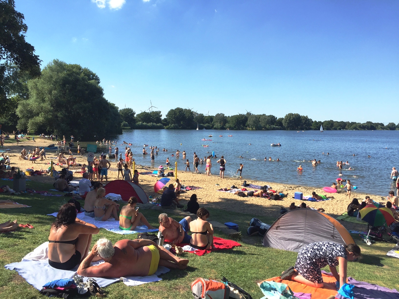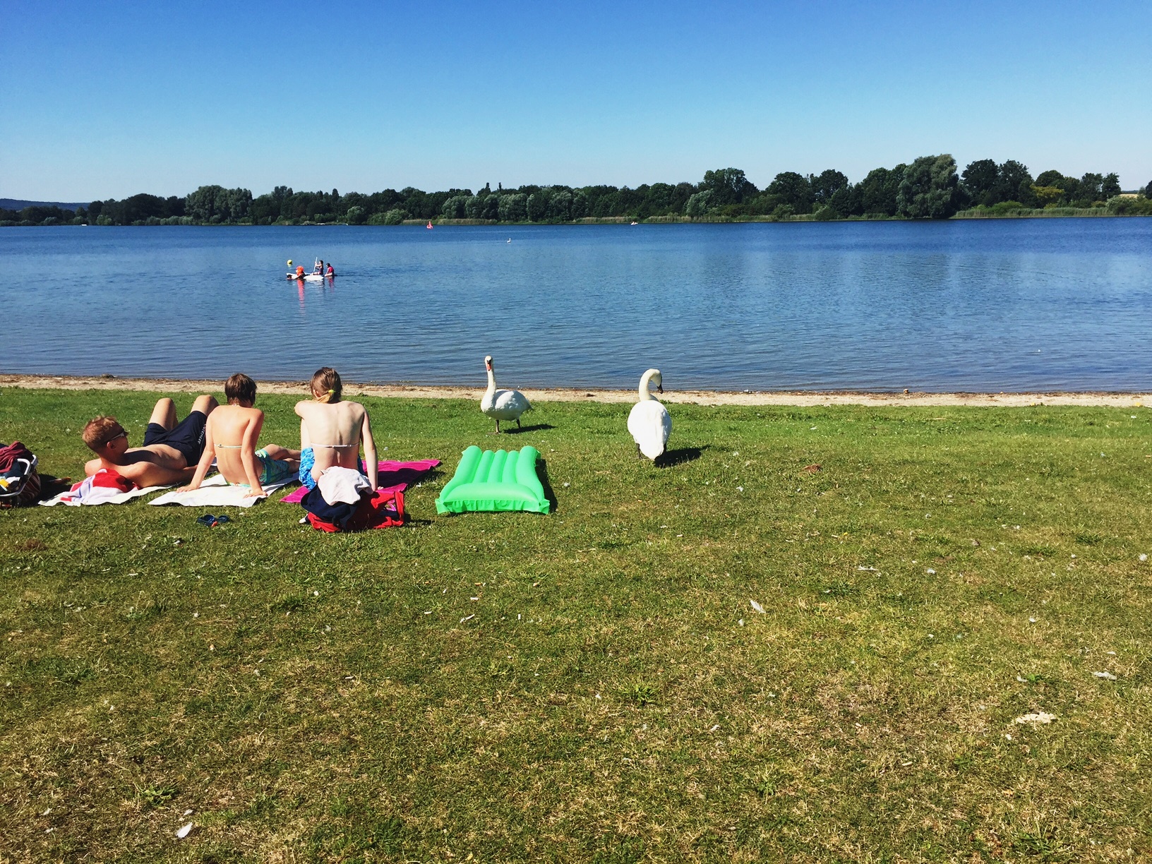 Wer die Sonnenstunden nicht auf dem oder in dem Wasser verbringen wollte, konnte in der Nähe des Wassers in Begleitung der Schwäne verweilen und sich „grillen“ lassen.