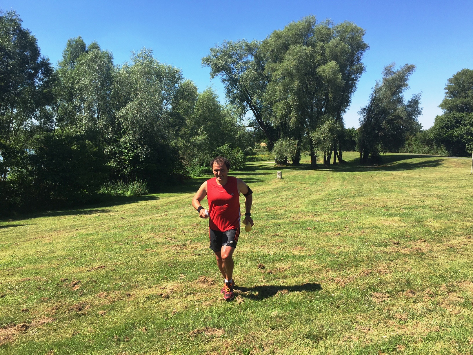 An diesem Tag verließen bestimmt einige Besucher (und Läufer!?!) den See mit einem Sonnenbrand. Plötzlich tauchte Jens ohne Alois auf. Er ließ sich ohne weiteres fotografieren.