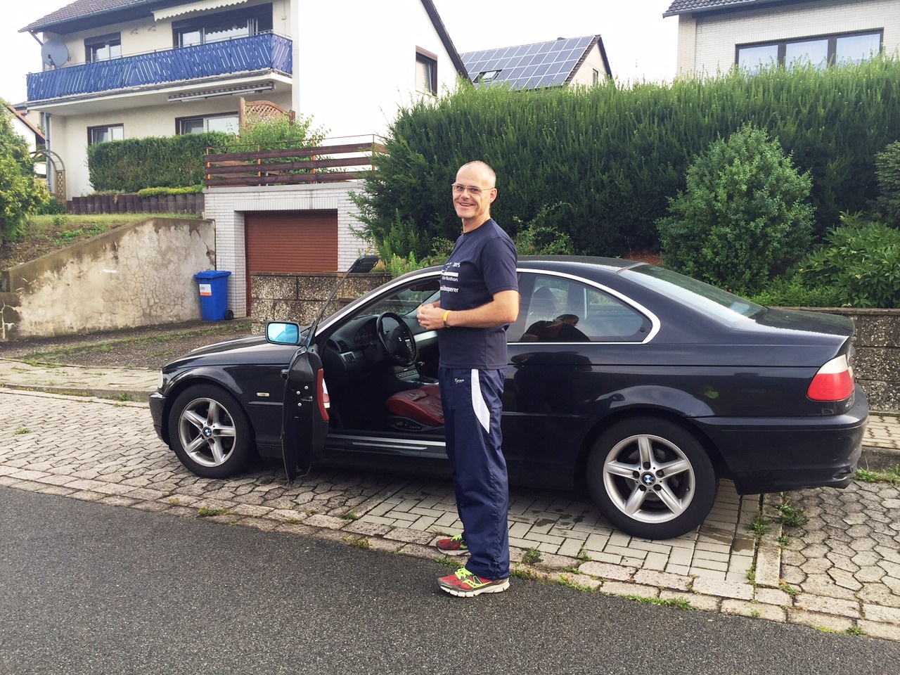 Dann bereiteten wir uns auf den Lauf vor. Sylke und Jens hatten auch zugesagt und kamen kurz nach uns an. Jens stieg grade aus dem Auto, als ich ihn „fotografisch“ überfiel.