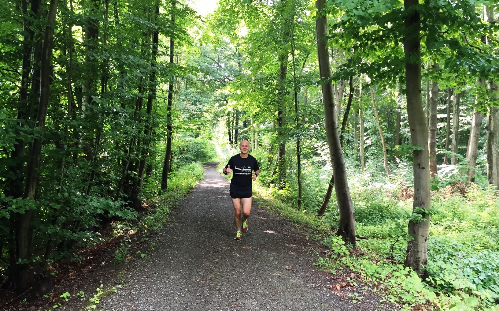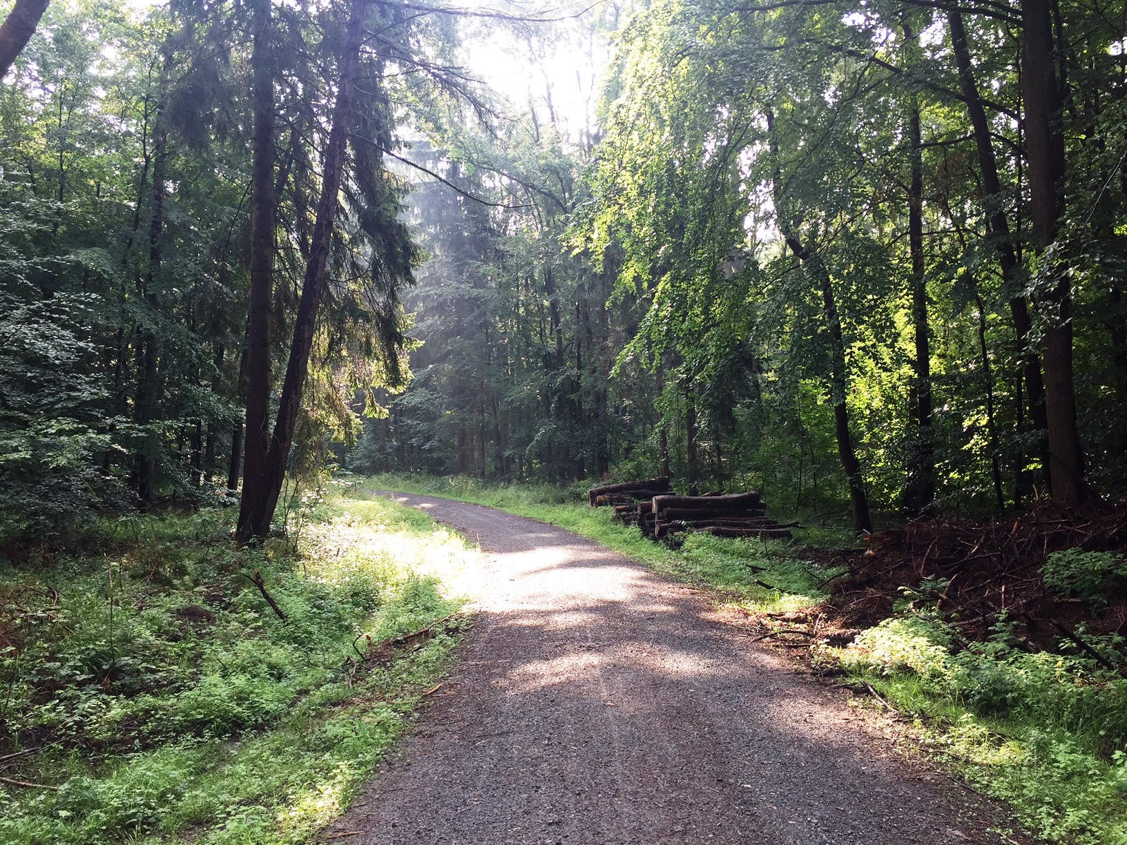 Endlich Natur pur! Es hatte in der Nacht vor dem Lauftag in Salzgitter Bad tüchtig geregnet. Da der überwiegende Teil der Marathonstrecke im Wald liegt und die Feuchtigkeit dort in den frühen Morgenstunden nicht so schnell verdunsten konnte, war es sehr angenehm, im Wald zu laufen. Die Sonne wirkte wie eine Deckenbeleuchtung, die ganz sanft im Begriff war, die Pflanzen- und Tierwelt zu wecken.