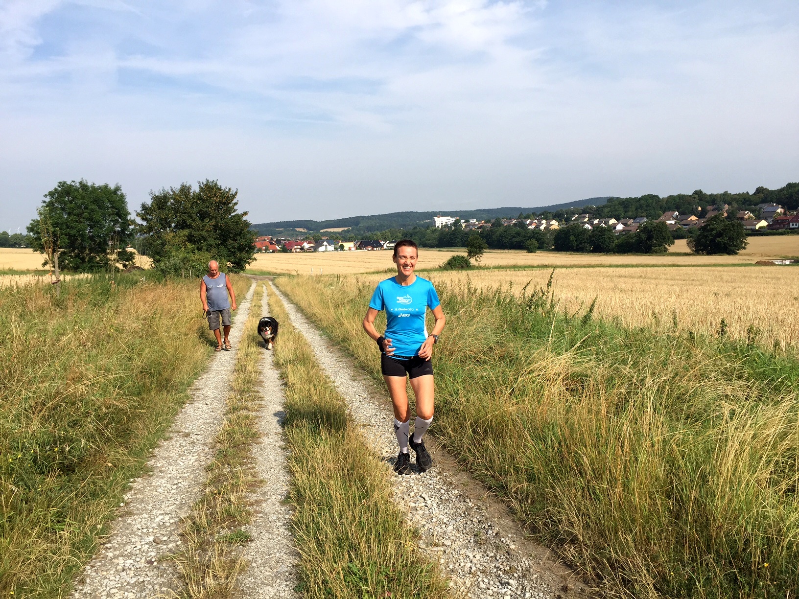 Ob es an den Strümpfen liegen würde, das bezweifele ich. Sie läuft immer so schnell und ist dabei total locker drauf. Auf der freien Fläche merkte man doch die Wärme der Sonne. Je länger ich lief, desto mehr freute ich mich, wieder in den zum größten Teil schattigen und kühlen Wald zu kommen.