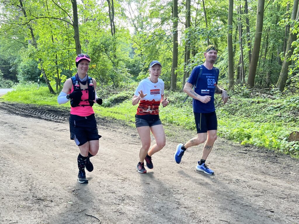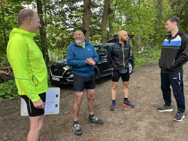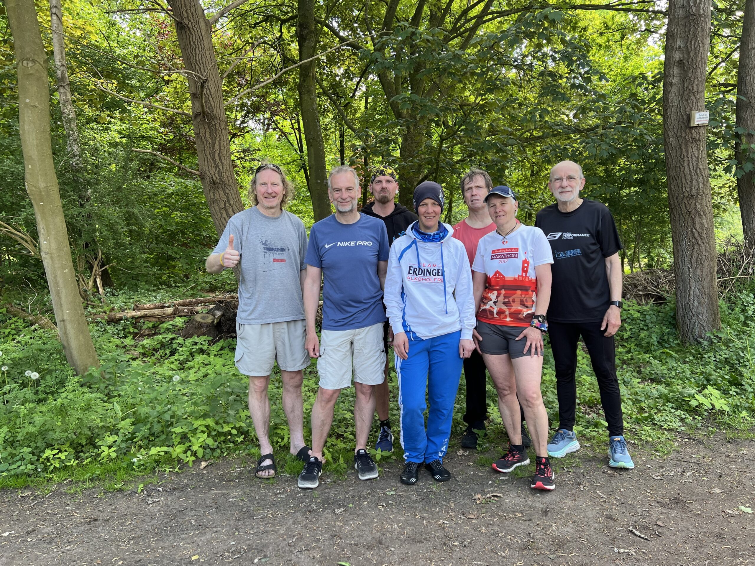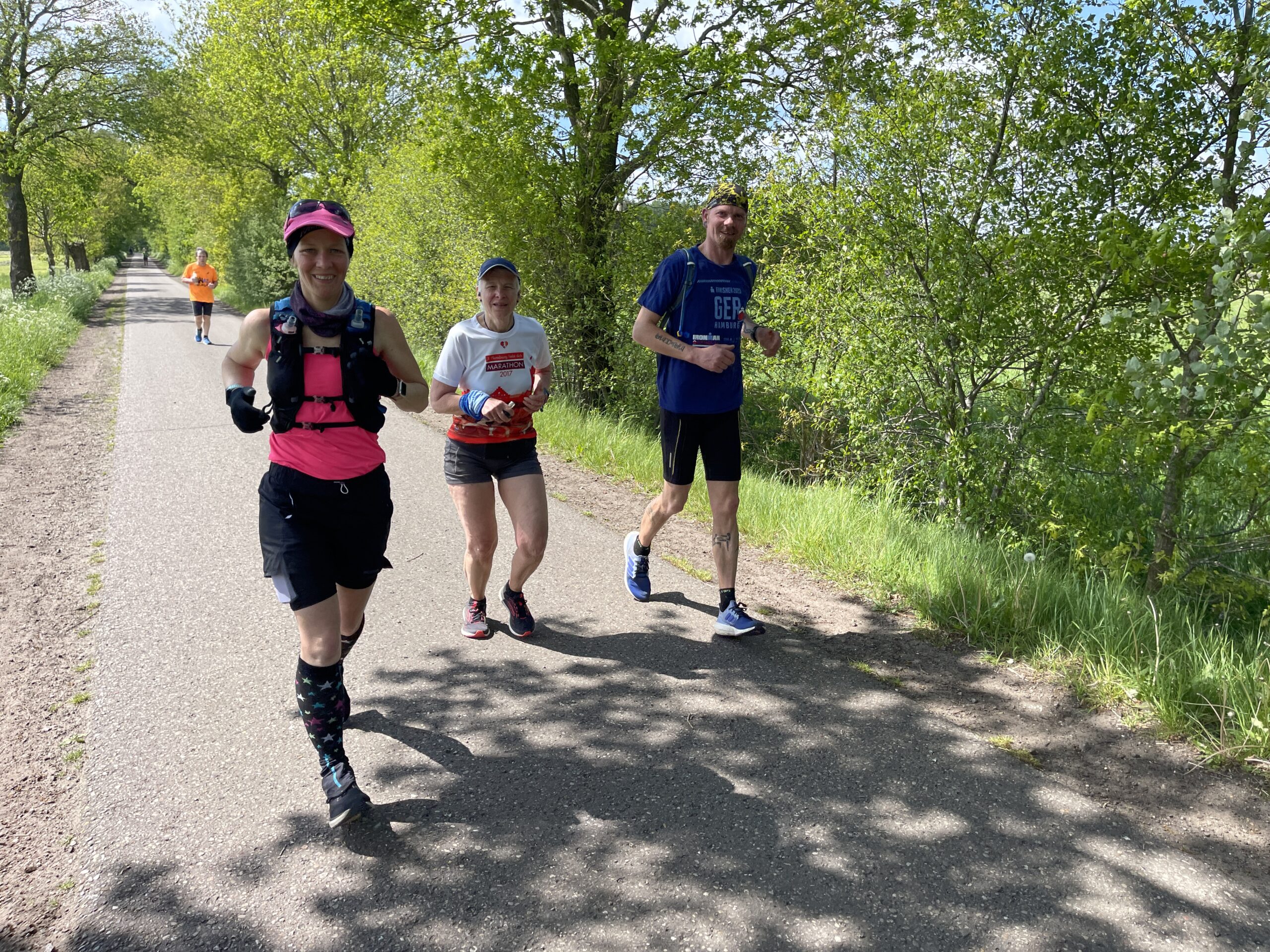 … trudelten die Läufer und Läuferinnen auf dem Wanderparkplatz ein und waren bereit für das …… Starterfoto. Vor dem Start fand ein Briefing statt. Sven, Jessica, Erika (hinter Jessica), Doris, Irma, Cornelia, René und Thorsten lauschten aufmerksam, was Arne an Informationen zur Strecke gab.Die Läufer neben René: Roland, Sigrid, (dahinter Rafael), Hajo (dahinter Mario), Rita, Affenzahn, Dieter und Klaus hörten ebenfalls Arne interessiert zu. Es wurde runtergezählt, Arne setzte seine Sonnenbrille auf und die Meute der Läufer und Läuferinnen wurde auf die Strecke geschickt.Ich hielt im Start- und Zielbereich die Stellung. Etwa 30 Minuten nach dem Start hatten Rafael und Christoph schon die ersten von 6 x 7,089 km hinter sich. Jessica, Biggi und Thorsten liefen …… wie auch Stefan und Mario die 6 Runden gemeinsam in einem flotten Tempo.Während ich auf weitere Fotoobjekte wartete, entdeckte ich am Wegesrand diese leuchtend gelbe Blüte. Es ist der Gelbe Scheinmohn, eine sehr hübsche Wildstaude. Die wuchsfreudige Pflanze gleicht dem Klatschmohn und wird je nach Standort 30 bis 60 Zentimeter hoch.Auch der Hahnenfuß leuchtete kräftig gelb und lockte einige Käfer an. Als ich dann hochschaute, …… begegnete ich Irma, die sich heute mit einem Halbmarathon begnügte. Dieter, Affenzahn, Rita und Arne waren als ein gut gelauntes Quartett unterwegs.Dynamisch lief René in eine nächste Runde. Im Hintergrund überquerte Arne die stark befahrene Landstraße.Klaus genoss seinen vorletzten Marathon. Auf diesem Streckenabschnitt wäre ich auch gerne mit dem Rad unterwegs. – Vor mir eine lange gerade Strecke, Fahrtwind und die vielen Schönwetterwolken am blauen Himmel –Auf dem eben beschriebenen Streckenabschnitt gelaufen, freuten sich Biggi, Jessica und Thorsten auf die nächste Runde.Erneut auf in die botanische Welt! – Der Echte Wurmfarn bleibt bis in den Winter grün. Die Wedel des Farnes befinden sich in einer trichterförmigen Rosette.Die Laufhaltung von Mario und Stefan verdiente die Note 1! Sigrid und Cornelia unterwegs in der Sonne – Danke, Wojciech, für das tolle Foto! Der Löwenzahn bietet der Tierwelt Nahrung, bereichert aber auch den menschlichen Speiseplan.Erika und Doris überquerten aufmerksam die Landstraße.Nun wurde es in der Sonne zunehmend wärmer. Später zog ich die Fleecejacke doch aus.Didi freute sich über diesen schattigen Fleck, konnte aber nicht stehenbleiben, denn er musste für einen weiteren Zähler weiterziehen.Ein gutgelaunter Didi in Begleitung einer RaupeHajo marschierte zügig in der Sonne.Das Ruprechtskraut, auch Stinkender Storchschnabel genannt, ist ein altes Heilmittel mit langer Tradition in der Volksheilkunde. Man nutzte es u.a. bei Durchfällen, Geschwüren und Ekzemen. – Die ein- bis zweijährige Pflanze kann reife Samen über kurze Strecken herausschleudern und so neue Standorte besiedeln. Seinen Namen hat der Stinkende Storchschnabel aufgrund seines herben Geruchs und der an spitze Storchenschnäbel erinnernden Früchte.Hier sprintet Christoph (Speedy Gonzales) zum neuen Streckenrekord ins Ziel. Glückwunsch!Leicht erschöpft aber überglücklich und stolz posierte Christoph im Ziel für ein Foto.Sabine kam auf dem Fahrrad zu Besuch und begleitete später Arne auf seiner letzten Runde.Als Zweiter lief Rafael ins Ziel. Glückwunsch! Ein Zielfoto mit Christoph musste unbedingt sein. Stefan und Mario sollten auch bald das Ziel erreichen. Wojciech … … und Roland hatten es auch nicht mehr weit.Das Läufertrio Jessica, Biggi und Thorsten gab richtig Speed, wollte wohl nicht von Sven eingeholt werden. Obwohl Mario für seinen Enkelsohn Milan einen Spielrasenmäher unterwegs aufgesammelt hatte, schafften er und Stefan den dritten Platz! Glückwunsch!Im Hintergrund verfolgte Stefan gespannt den Zieleinlauf von Wojciech und Sven. Sie schafften ein sub 5 Ergebnis! Super, Jungs!Während Biggi im Hintergrund von Fiete begrüßt wurde, beglückwünschte ich Thorsten und Jessica im Ziel.Didi auf dem Weg in eine neue Runde.Stolze und zufriedene FinisherStefan und ich zusammen auf einem Foto – hat Seltenheitswert, wie ich finde!Arne sprintete wie ein geölter Blitz ins Ziel! Nachdem … … sein Puls sich beruhigt hatte, …… konnte der Quensch wieder lächeln. Naturkino unterwegs vertrieb den Frust und das Stehenbleiben, um die Landschaft zu genießen, lohnte sich.René und …Klaus auf der ZielgeradeAuch diese Reiter nutzten das schöne Wetter zu einem Reitausfflug.Diese Holstein-Kühe machten einen total entspannten Eindruck. Erika und Doris im Gleischritt gemeinsam ins Ziel! Super, Ladies!Sigrid und Cornelia durften die Ziellinie gleichzeitig überqueren! Prima! Note 1!Noch ein Marathoni, der das Ziel schnell erreichen wollte.Didi, noch ein paar Meterchen und du hast fertig!Yeah, Zähler Nummer1505 habe ich in der Tasche!Cornelia machte sich an die Arbeit und gab ihre und Sigrids identische Laufzeit an Arne weiter.Hajo (Eisenmeyer) im Ziel – Starke Leistung, Hajo!