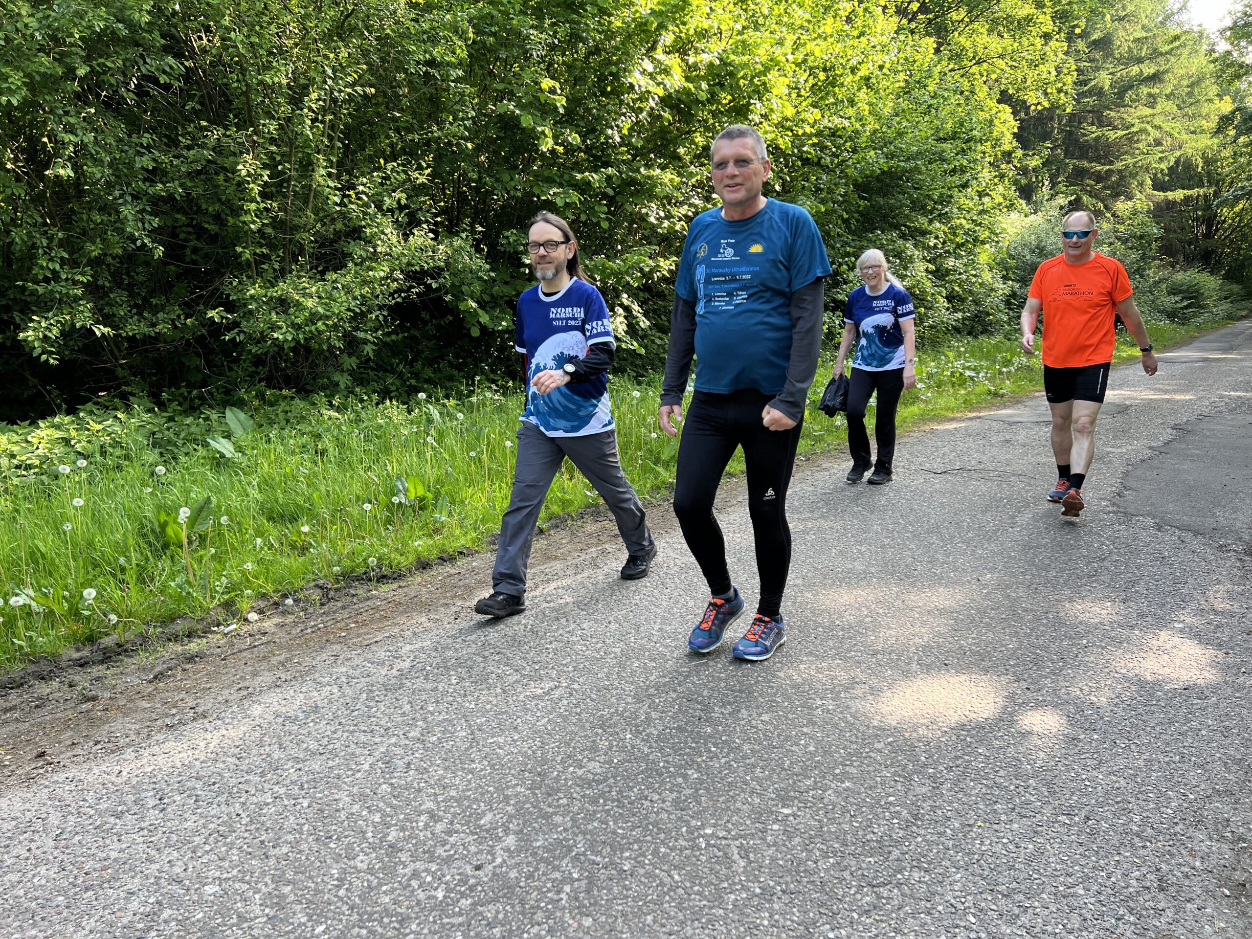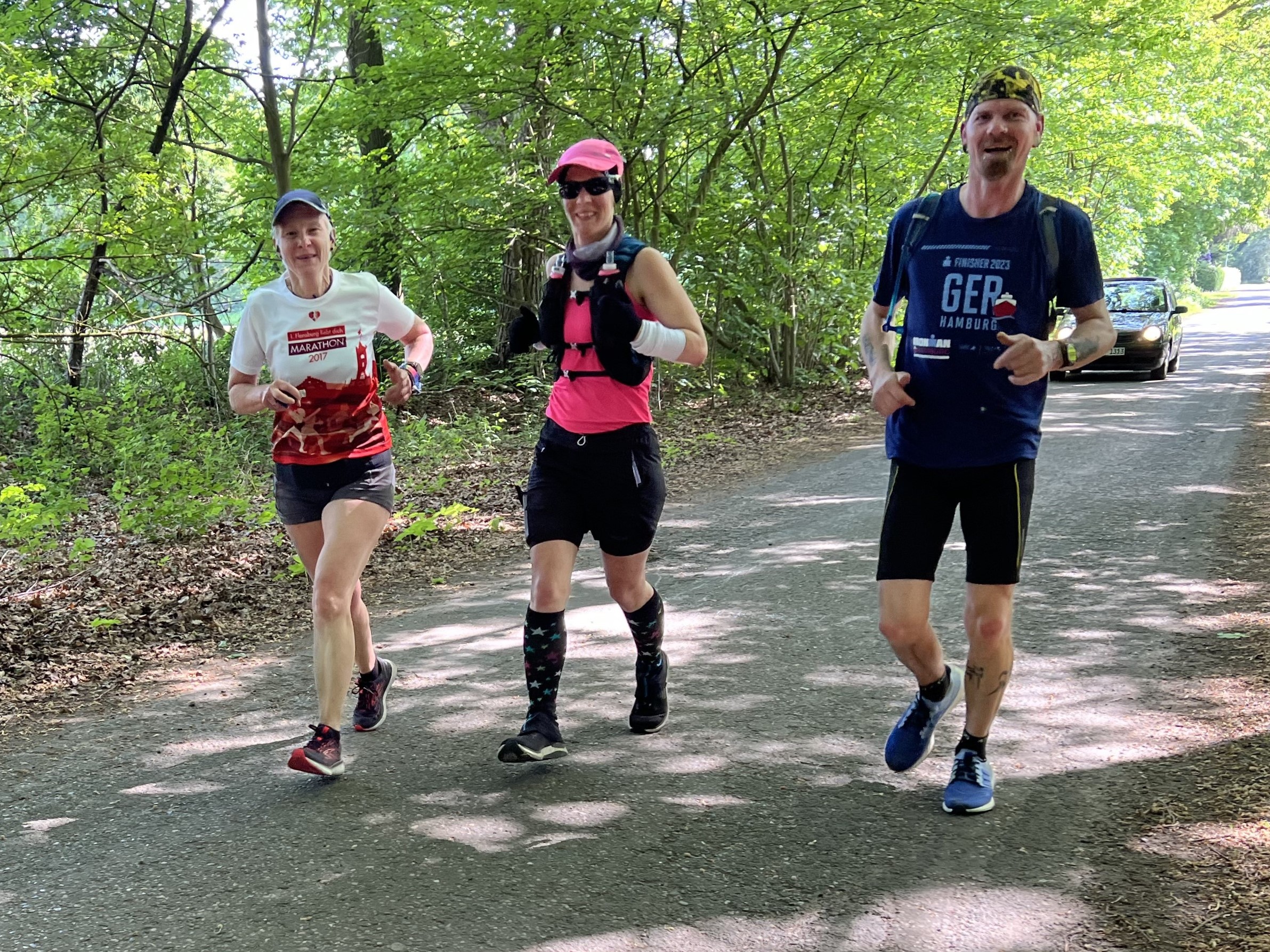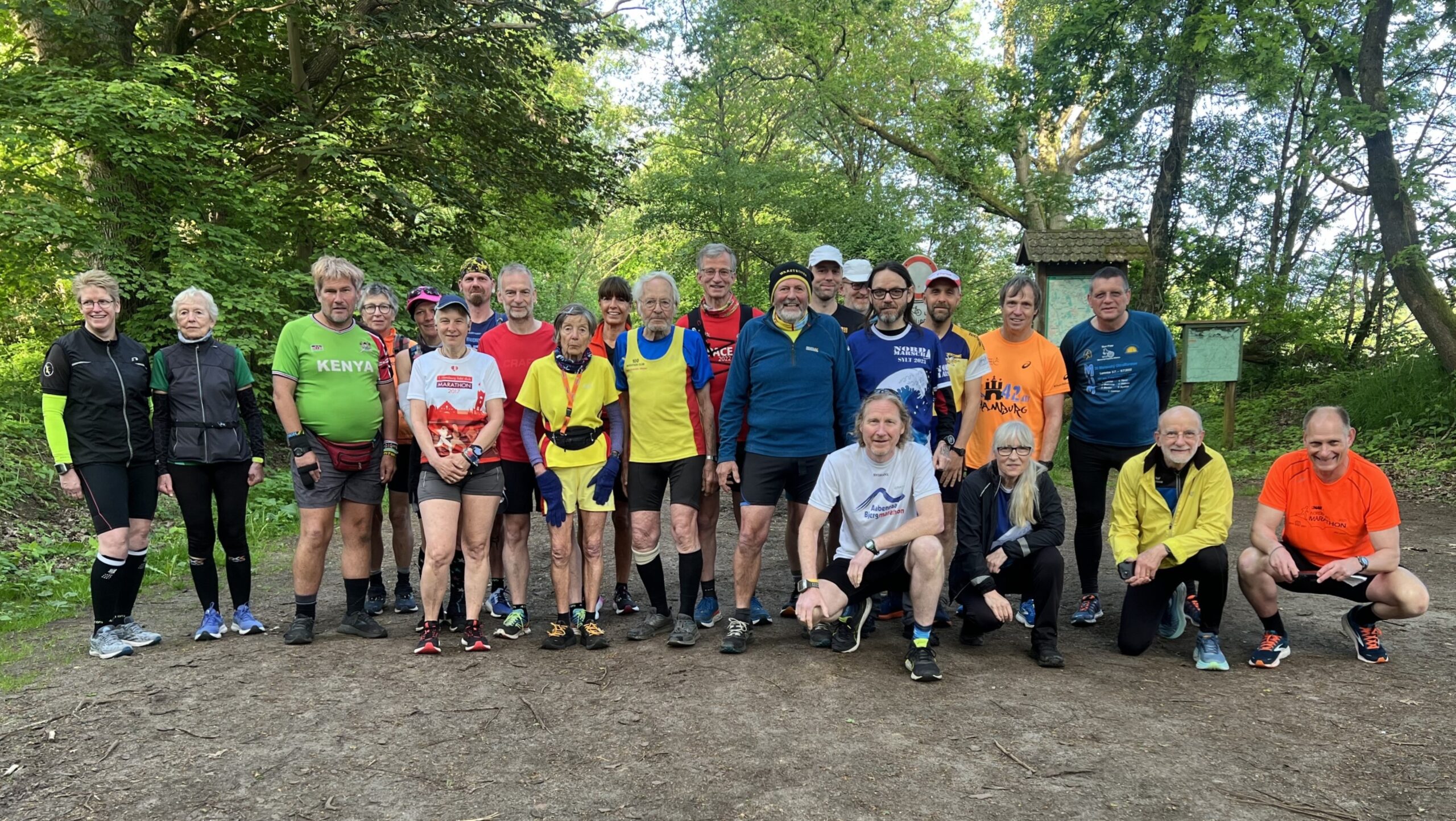 … trudelten die Läufer und Läuferinnen auf dem Wanderparkplatz ein und waren bereit für das …… Starterfoto. Vor dem Start fand ein Briefing statt. Sven, Jessica, Erika (hinter Jessica), Doris, Irma, Cornelia, René und Thorsten lauschten aufmerksam, was Arne an Informationen zur Strecke gab.Die Läufer neben René: Roland, Sigrid, (dahinter Rafael), Hajo (dahinter Mario), Rita, Affenzahn, Dieter und Klaus hörten ebenfalls Arne interessiert zu. Es wurde runtergezählt, Arne setzte seine Sonnenbrille auf und die Meute der Läufer und Läuferinnen wurde auf die Strecke geschickt.Ich hielt im Start- und Zielbereich die Stellung. Etwa 30 Minuten nach dem Start hatten Rafael und Christoph schon die ersten von 6 x 7,089 km hinter sich. Jessica, Biggi und Thorsten liefen …… wie auch Stefan und Mario die 6 Runden gemeinsam in einem flotten Tempo.Während ich auf weitere Fotoobjekte wartete, entdeckte ich am Wegesrand diese leuchtend gelbe Blüte. Es ist der Gelbe Scheinmohn, eine sehr hübsche Wildstaude. Die wuchsfreudige Pflanze gleicht dem Klatschmohn und wird je nach Standort 30 bis 60 Zentimeter hoch.Auch der Hahnenfuß leuchtete kräftig gelb und lockte einige Käfer an. Als ich dann hochschaute, …… begegnete ich Irma, die sich heute mit einem Halbmarathon begnügte. Dieter, Affenzahn, Rita und Arne waren als ein gut gelauntes Quartett unterwegs.Dynamisch lief René in eine nächste Runde. Im Hintergrund überquerte Arne die stark befahrene Landstraße.Klaus genoss seinen vorletzten Marathon. Auf diesem Streckenabschnitt wäre ich auch gerne mit dem Rad unterwegs. – Vor mir eine lange gerade Strecke, Fahrtwind und die vielen Schönwetterwolken am blauen Himmel –Auf dem eben beschriebenen Streckenabschnitt gelaufen, freuten sich Biggi, Jessica und Thorsten auf die nächste Runde.Erneut auf in die botanische Welt! – Der Echte Wurmfarn bleibt bis in den Winter grün. Die Wedel des Farnes befinden sich in einer trichterförmigen Rosette.Die Laufhaltung von Mario und Stefan verdiente die Note 1! Sigrid und Cornelia unterwegs in der Sonne – Danke, Wojciech, für das tolle Foto! Der Löwenzahn bietet der Tierwelt Nahrung, bereichert aber auch den menschlichen Speiseplan.Erika und Doris überquerten aufmerksam die Landstraße.Nun wurde es in der Sonne zunehmend wärmer. Später zog ich die Fleecejacke doch aus.Didi freute sich über diesen schattigen Fleck, konnte aber nicht stehenbleiben, denn er musste für einen weiteren Zähler weiterziehen.Ein gutgelaunter Didi in Begleitung einer RaupeHajo marschierte zügig in der Sonne.Das Ruprechtskraut, auch Stinkender Storchschnabel genannt, ist ein altes Heilmittel mit langer Tradition in der Volksheilkunde. Man nutzte es u.a. bei Durchfällen, Geschwüren und Ekzemen. – Die ein- bis zweijährige Pflanze kann reife Samen über kurze Strecken herausschleudern und so neue Standorte besiedeln. Seinen Namen hat der Stinkende Storchschnabel aufgrund seines herben Geruchs und der an spitze Storchenschnäbel erinnernden Früchte.Hier sprintet Christoph (Speedy Gonzales) zum neuen Streckenrekord ins Ziel. Glückwunsch!Leicht erschöpft aber überglücklich und stolz posierte Christoph im Ziel für ein Foto.Sabine kam auf dem Fahrrad zu Besuch und begleitete später Arne auf seiner letzten Runde.Als Zweiter lief Rafael ins Ziel. Glückwunsch! Ein Zielfoto mit Christoph musste unbedingt sein. Stefan und Mario sollten auch bald das Ziel erreichen. Wojciech … … und Roland hatten es auch nicht mehr weit.Das Läufertrio Jessica, Biggi und Thorsten gab richtig Speed, wollte wohl nicht von Sven eingeholt werden. Obwohl Mario für seinen Enkelsohn Milan einen Spielrasenmäher unterwegs aufgesammelt hatte, schafften er und Stefan den dritten Platz! Glückwunsch!Im Hintergrund verfolgte Stefan gespannt den Zieleinlauf von Wojciech und Sven. Sie schafften ein sub 5 Ergebnis! Super, Jungs!Während Biggi im Hintergrund von Fiete begrüßt wurde, beglückwünschte ich Thorsten und Jessica im Ziel.Didi auf dem Weg in eine neue Runde.Stolze und zufriedene FinisherStefan und ich zusammen auf einem Foto – hat Seltenheitswert, wie ich finde!Arne sprintete wie ein geölter Blitz ins Ziel! Nachdem … … sein Puls sich beruhigt hatte, …… konnte der Quensch wieder lächeln. Naturkino unterwegs vertrieb den Frust und das Stehenbleiben, um die Landschaft zu genießen, lohnte sich.René und …Klaus auf der ZielgeradeAuch diese Reiter nutzten das schöne Wetter zu einem Reitausfflug.Diese Holstein-Kühe machten einen total entspannten Eindruck. Erika und Doris im Gleischritt gemeinsam ins Ziel! Super, Ladies!Sigrid und Cornelia durften die Ziellinie gleichzeitig überqueren! Prima! Note 1!Noch ein Marathoni, der das Ziel schnell erreichen wollte.Didi, noch ein paar Meterchen und du hast fertig!Yeah, Zähler Nummer1505 habe ich in der Tasche!Cornelia machte sich an die Arbeit und gab ihre und Sigrids identische Laufzeit an Arne weiter.Hajo (Eisenmeyer) im Ziel – Starke Leistung, Hajo!