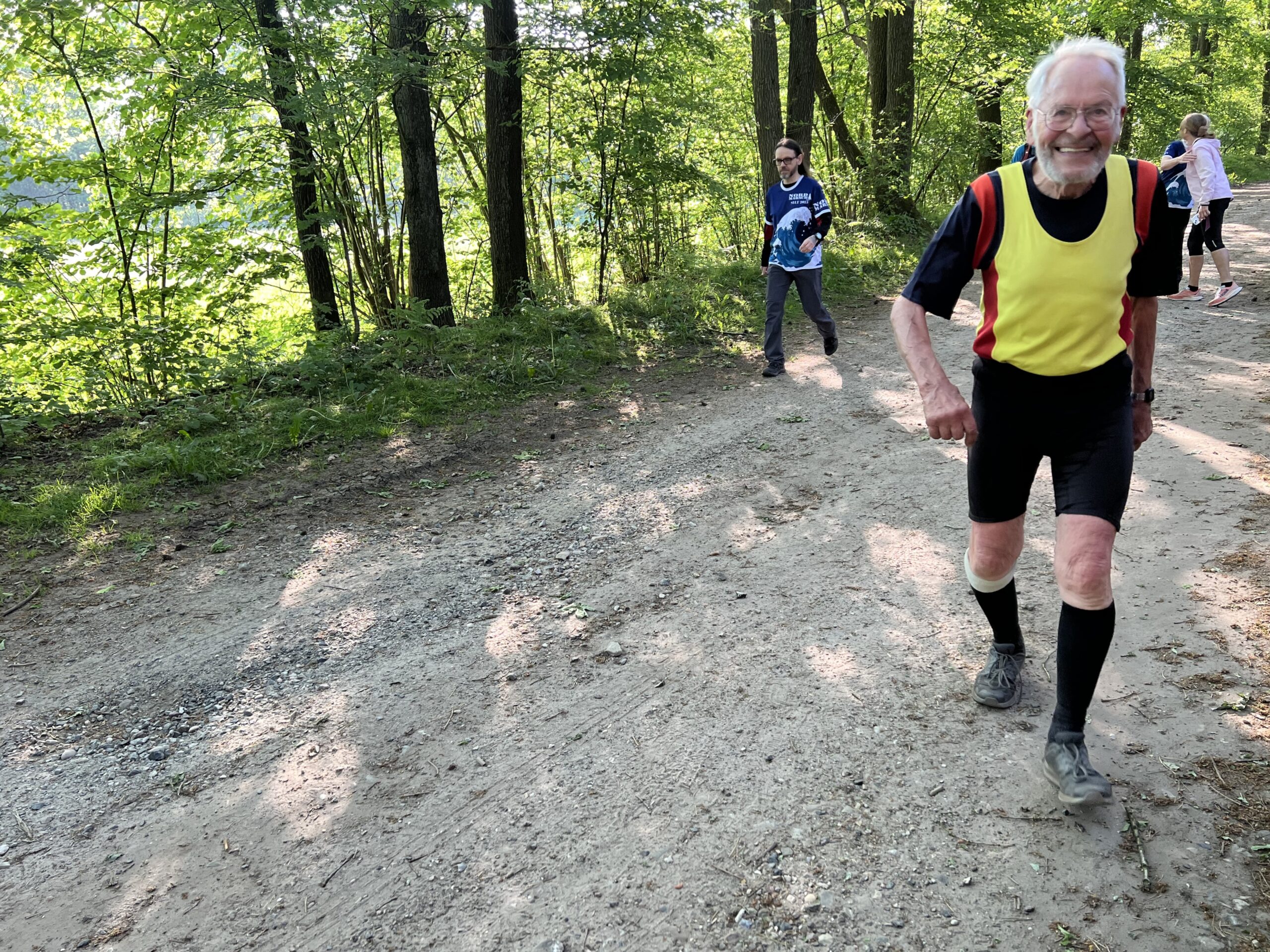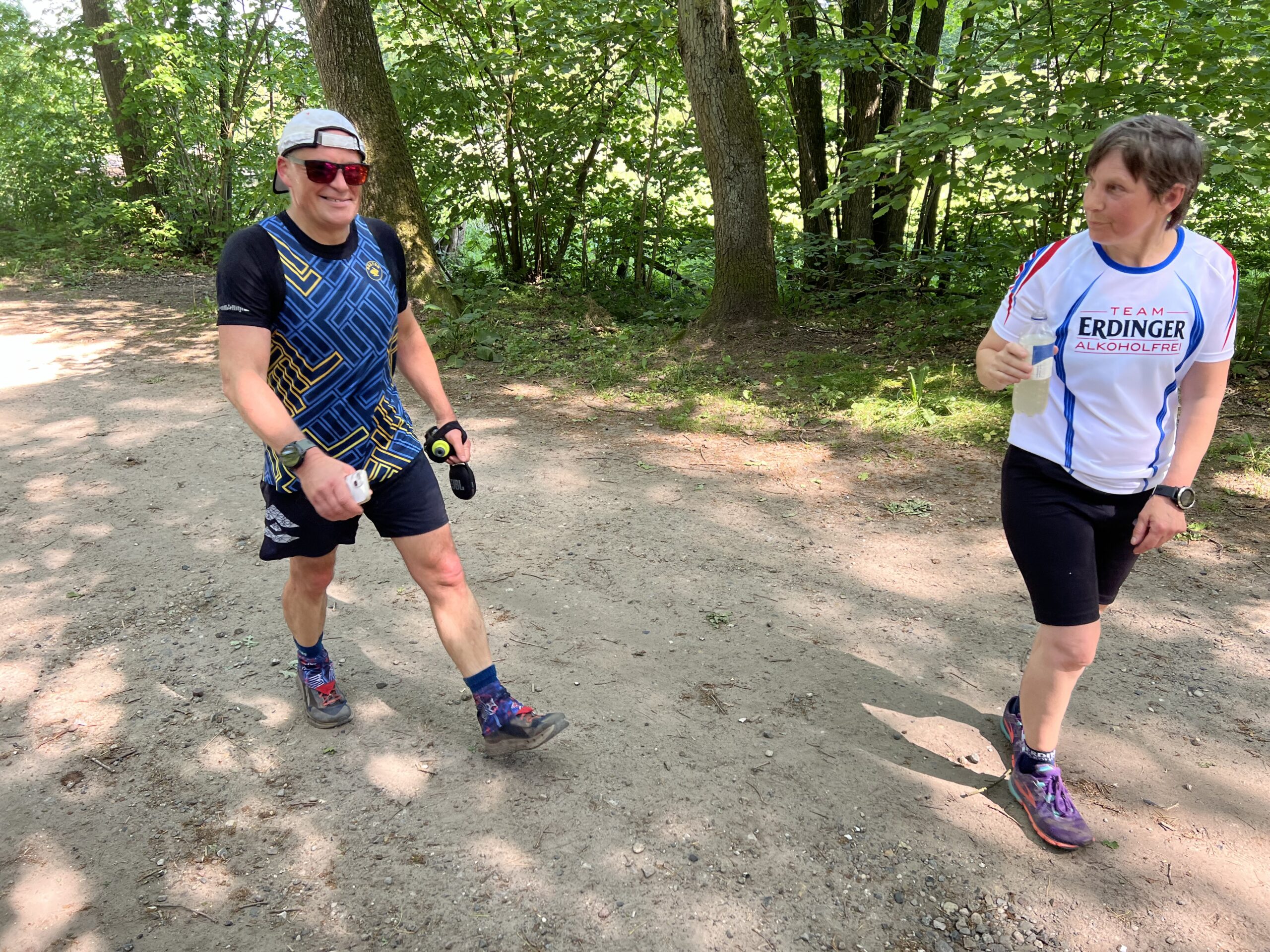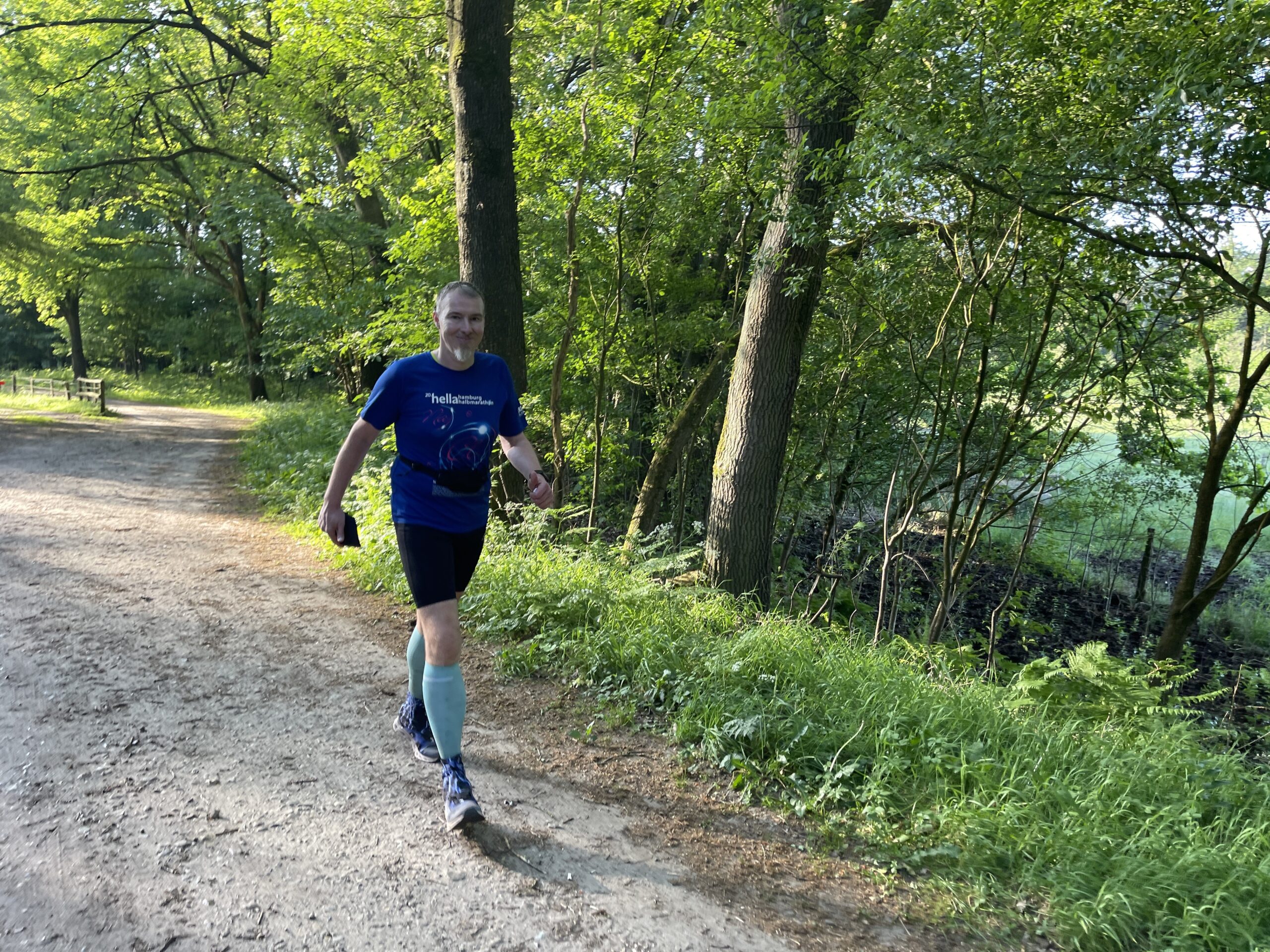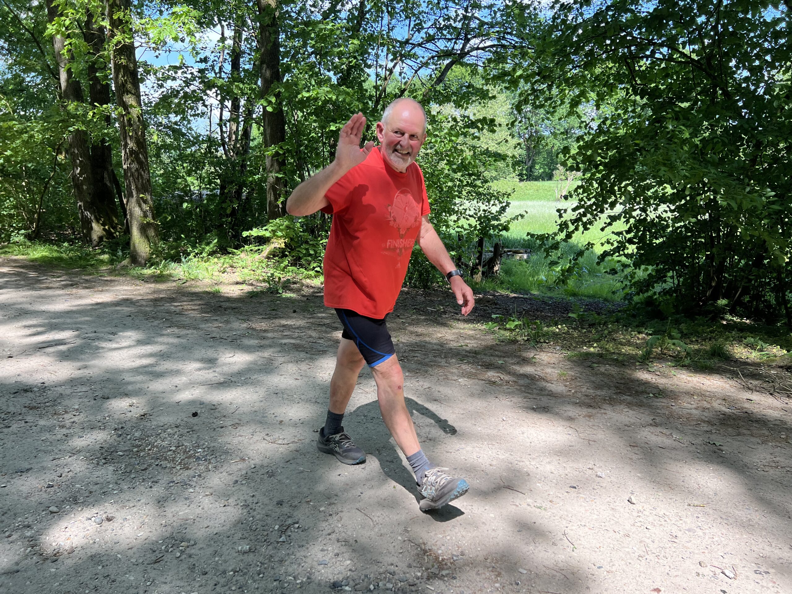 Vor den Toren Hamburgs konnten wir einen wunderschönen Sonnenaufgang bestaunen.Weg von der Autobahn versetzten uns der Sonnenaufgang und Bodennebel in Bad Bramstedt in eine romantische Stimmung.. Didi war bereit zu starten und wollte ihn mit dem „Start- und Zielbaum“ fotografisch von mir festhalten. Inzwischen wünschte uns die Sonne einen „Guten Morgen!“Didi startete um 05:59 Uhr und freute sich auf seine inzwischen 1507. läuferische Herausforderung.Der Neubau der schönen Jägerbrücke war für 2023 geplant. So eine Planung nennt man Fehlplanung oder Flop. Aber die Hoffnung stirbt zuletzt.Die Schmalfelder Au – morgens um 06:05 UhrDer frühe Vogel fängt den Wurm; hier stellten sich Gaby, Christoph und Gabys Tochter Kirsten für ein Starterfoto zur Verfügung. Kurz vor 06:30 Uhr machten sie sich auf den Weg. Mittlerweile hatte Doris H. in Mario ihre Laufbegleitung gefunden. Christioph in Begleitung von Kirsten und GabyDie Baumschnecke ist eine der bekanntesten Arten von Landschnecken und ist aufgrund ihrer Fähigkeit, an Bäumen und Sträuchern zu leben und zu klettern, ein fasziniererendes Wesen. Die Baumschnecke lebt in feuchten Wäldern. In der Natur ist sie bekannt dafür, Pflanzenreste, Blätter und Pilze zu fressen und spielt eine wichtige Rolle im Ökosystem.René und Doris S. hatten einen schattigen Streckenabschnitt „erwischt“.Affenzahn war in einem flotten Tempo unterwegs.Martin konnte auch schnell marschieren und war gut gelaunt unterwegs.Christoph machte heute Intervall-Training.Davor schien sich auf den Marathon zu freuen, oder wie sollte ich es verstehen?Claudia (besser bekannt als Gazelle) war das erste Mal in Bad Bramstedt und ließ sich die Strecke kurz von Didi erklären.Hajo war der zweite Debütant auf dieser Strecke.Affenzahn, Rita und Mario machten sich gestärkt auf in die nächste Runde.Claudia strahlte mit der Sonne um die Wette Auch Affenzahn, Dieter und Rita hatten gute Laune. Christoph gab das Tempo an und Claudia konnte begeistert mithalten.Rita und Hajo genossen die schattigen Abschnitte der Strecke.Christoph und Mario liefen im Gleichschritt und mit guter Haltung. Doris H. lieferte „akrobatische Einlagen“ vom Feinsten und konnte mit dem Tempo der beiden Männer trotzdem mithalten.Claudia fühlte sich auf der Strecke sichtlich wohl. Der Hahnenfuß wächst als ausdauernde Pflanze und erreicht Wuchshöhen von 30 – 110 cm.Die Wiesen-Pippau ist eine zweijährige, heimische Wildpflanze. Die mit dem Löwenzahn verwandte Wiesenpflanze gehört auch zur Familie der Korbblüter. – Der Name Pippau kommt aus dem slawischen Sprachgebrauch und ist die dortige Bezeichnung für Löwenzahn.Der Adlerfarn hat hellgrüne, derbe Blätter, die dreifach gefiedert sind. Da die Blätter an die Krallen eines Adlers erinnern, erhielt die Pflanze vermutlich ihren Namen.Die Nelkenwurz wächst in Wäldern und an Waldrändern. Sie blüht von Mai bis September. Früher wurde die Nelkenwurzwurzel ersatzweise als Gewürz für die wesentlich teurere Gewürznelke genutzt.Die Margeriten gehören bei uns zu den häufigsten Blumen. Man findet sie meistens auf Wiesen oder am Waldrand. Margeriten wachsen am liebsten dort, wo es besonders sonnig ist. Martin musste nur noch eine Runde bis zum Marathon hinter sich bringen.Doris H. war früh gestartet und schon fertig. Jetzt feuerte sie Davor an.Kirsten war schnell und mit bester Laune unterwegs.Martin hatte endlich sein Ziel erreicht. Gaby im Indianer look und Doris S. sollten auch bald den Marathon hinter sich haben.Mario in läuferischer Idylle Claudia freute sich auf eine neue Runde.Davor und Kirsten im Gleichschritt unterwegsMit einer Wuchshöhe von 60 – 80 cm ist die Rote Lichtnelke mit auffälligen rosa-roten Blüten eine Empfehlung für jeden Garten.Mario entspannte sich nach dem Marathon in der Sonne. Doris S. hatte nun auch den Marathon hinter sich.Nach dem Zieleinlauf wurde Doris von Mario in Empfang genommen. Beide strahlten. Didi beglückwünschte Doris und Mario, um danach seine letzte Runde anzugehen.Didi wollte um 14.22 Uhr seine geplante Hahnzeit erreicht haben. Ich wartete geduldig an der Ziellinie.Da erschien Didi schon mit erhobenen Armen! Im Hintergrund kamen Davor und Claudia immer näher, …… und überquerten gemeinsam die Ziellinie. Davor amüsierte sich über Didis statue-ähnliche Haltung kurz vor der Ziellinie. Claudia lief freudestrahlend und winkend ins Ziel.Jetzt musste nur noch Didi ins Ziel schreiten und wurde dabei mit einer Laola Welle von Davor empfangen.Davor, Claudia und Didi strahlten im Ziel, waren sie doch so stolz über ihre Leistung! Glückwunsch an euch!