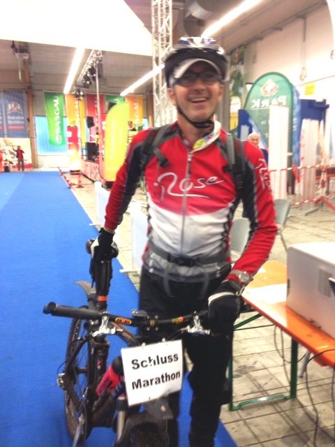 Als ich nach einigen Stunden auf die Uhr schaute, war mir klar, dass ich es in der angegebenen Sollzeit trotz der Höhenmetern schaffen würde. Die Messehalle 6 war das Ziel. Im Zieleinlauf wurde ich aufgerufen und mit Freuderufen und Klatschen empfangen.
