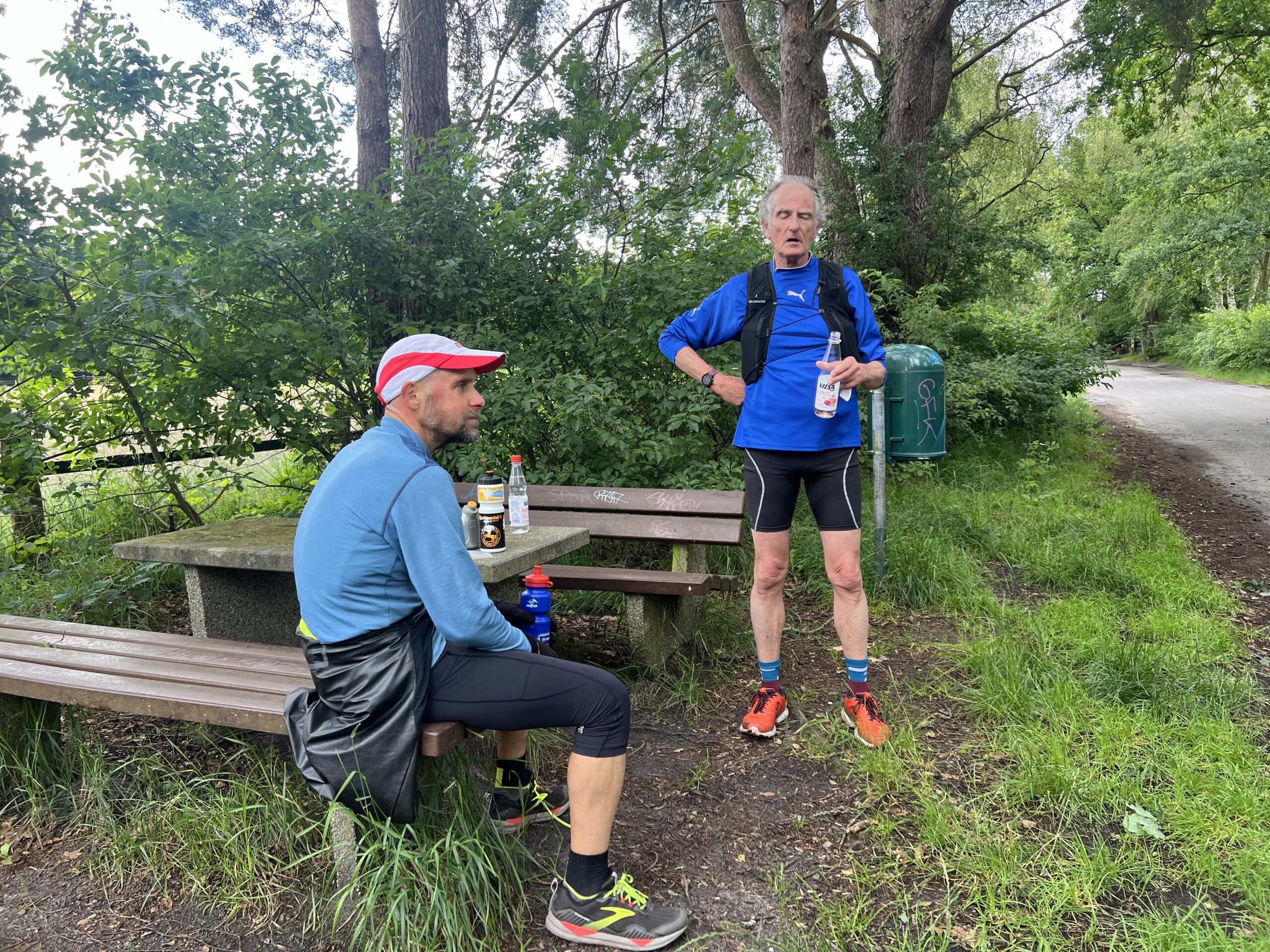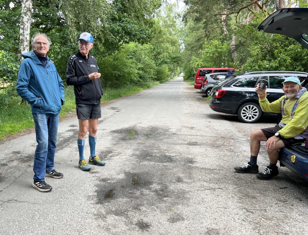 Petrus sprach der Sonne Mut zu und wir erlebten anschließend einen schönen Sonnenaufgang. Didi war schon unterwegs, als …… Rosi und Cindy an den Start gingen. Naja, von „gehen“ konnte hier wahrlich nicht die Rede sein. Cindy konnte nicht schnell genug losrennen und Rosi musste mit ihr „Schritt halten“.Hajo – bereit für den Start.Jetzt war klar, dass es heute ein schöner Tag werden musste.Die Stimmung war einfach unbeschreiblich schön!In Ohlendorf holte Christoph … … Didi ein und gemeinsam beendeten sie ihre erste Runde.Auch diesmal hatte ich die Verpflegung für Didi im Kofferraum des Fords aufgebaut.Nach einem anstrengenden Arbeitstag am Vortag des Buchwedelmarathons entschied sich Martin, etwas später zu starten. Der Farn und der Fingerhut teilen sich den Platz im Buchwedel.Martin strahlte mit der Sonne um die Wette und genoss den Lauf in vollen Zügen.Der Rainkohl war schon in der Jungsteinzeit ein häufiges „Unkraut“ auf den Rodungen der ackerbautreibenden Menschen. Aus der Zeit der Römer gibt es Hinweise für die Nutzung des Rainkohls, denn er wurde dann verwendet, wenn man nicht so viel zu essen hatte. Die alte Nutzung ist heute in Vergessenheit geraten und der Rainkohl wird nur als lästiges Unkraut angesehen und ausgerupft.Karl Wolfgang genoss, wie auch …… Wolfgang das Bad in der Sonne.Cindy und Rosi liefen total entspannt durch den Buchwedel.Christoph entdeckte eine tote Maus, was keine Maus war, sondern ein Maulwurf auf dem Tisch. Wie dieser Maulwurf dorthin gekommen war, konnte nicht ermittelt werden.Didi Lieblingsblume Fingerhut – hier in einem anderen FarbtonChristoph musste nur noch eine Runde.Der Fingerhut ist eine hochgiftige, in Mitteleuropa stark verbreitete Pflanze, die in allen Pflanzenteilen gefährliche Giftstoffe enthält.Die Spätblühende Traubenkirsche bildet im Mai bis Juni weiße Blüten aus, während die Früchte erst im Spätsommer heranreifen. Diese sind zu Anfang rot und werden dann weitgehend schwarzrot.Hey, Gunla! Ich habe fertig!Kurz nach Christophs Zieleinlauf erschien Wolfgang, der sich vor seiner letzten Runde stärkte. Es hieß für ihn also …… noch einmal durch den wunderschönen Buchwedel laufen.Ein gelungenes Selfie, wie ich finde!Auch Rosi und Cindy durften noch eine Runde durch den Buchwedel zurücklegen. Cindy träumte schon von ihrem Leckerlie.Hajo begnügte sich heute mit einem Halbmarathon.„Ich darf noch eine Runde!“Wolfgang und …… Martin auf dem Streckenabschnitt an der BahnRosi schaute konzentriert auf die Uhr, während Cindy es kaum erwarten konnte, ihr Leckerlie zu bekommen. Endlich! Wolfgang hatte einige Minuten vor seinem Zieleinlauf genutzt, um mir diese hübschen Wildblumen zu pflücken und im Ziel zu überreichen. Danke Wolfgang!Martin, …… Karl Wolfgang und …… Didi erreichten nacheinander das Ziel! Glückwunsch, Jungs!Im Ziel warteten Wolfgang, Karl Wolfgang und Didi auf …… Martin, damit der von Wolfgang mitgebrachte Butterkuchen verspeist werden konnte. Danke, Wolfgang!Für die Blumen fand ich zu Hause eine passende Vase und sie bekamen einen ehrenvollen Platz auf dem Küchentisch.