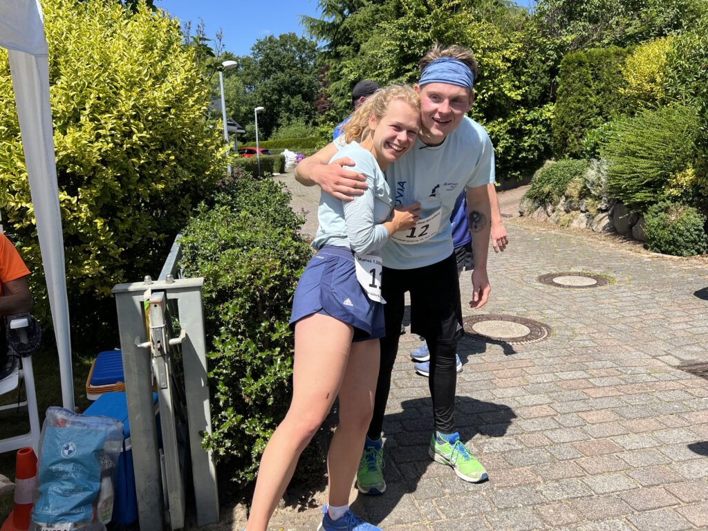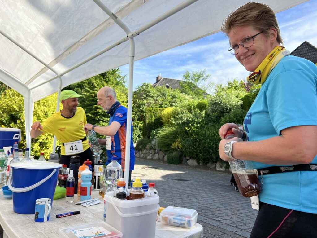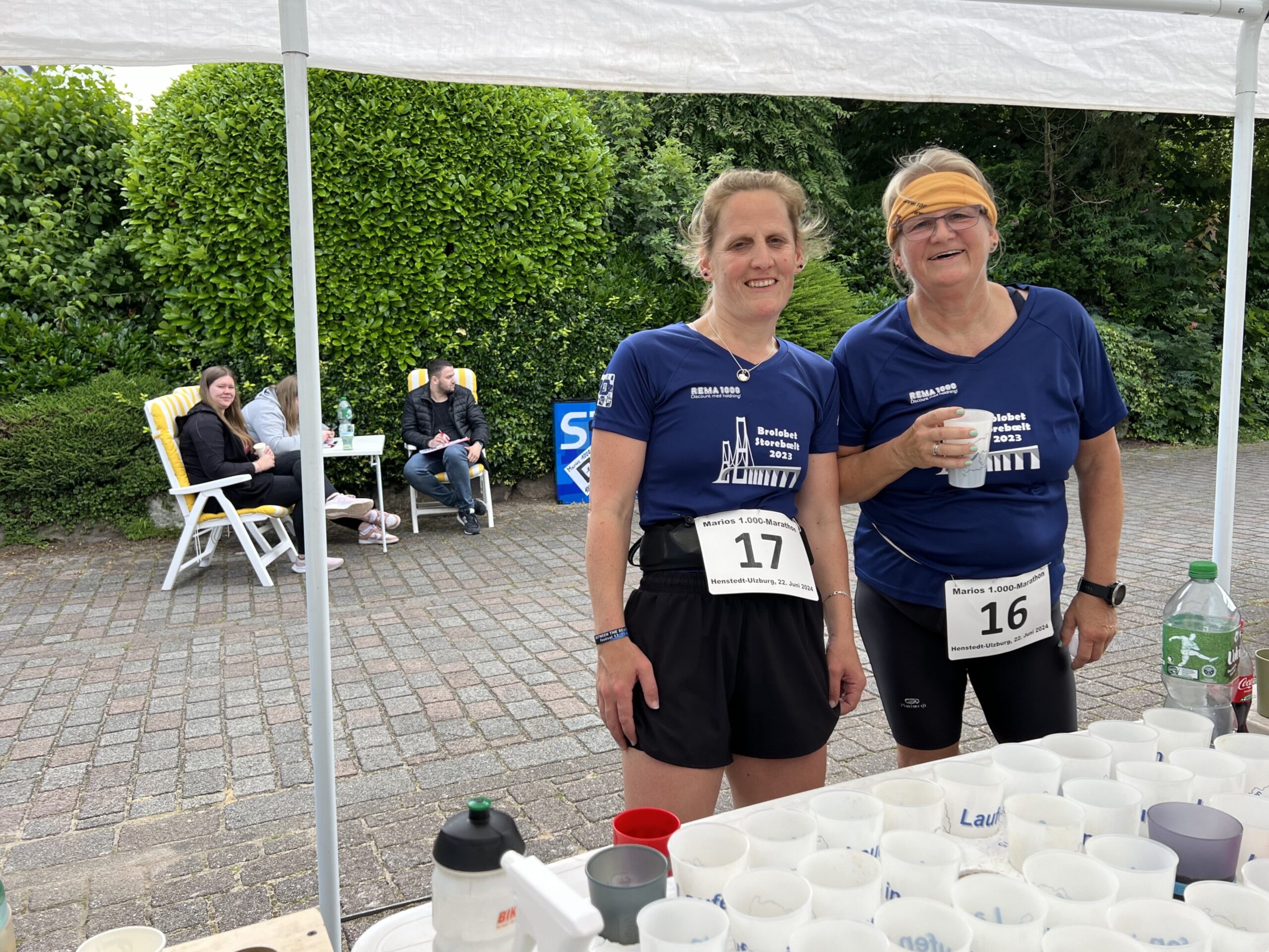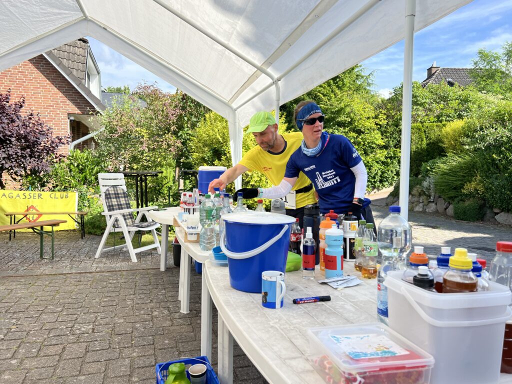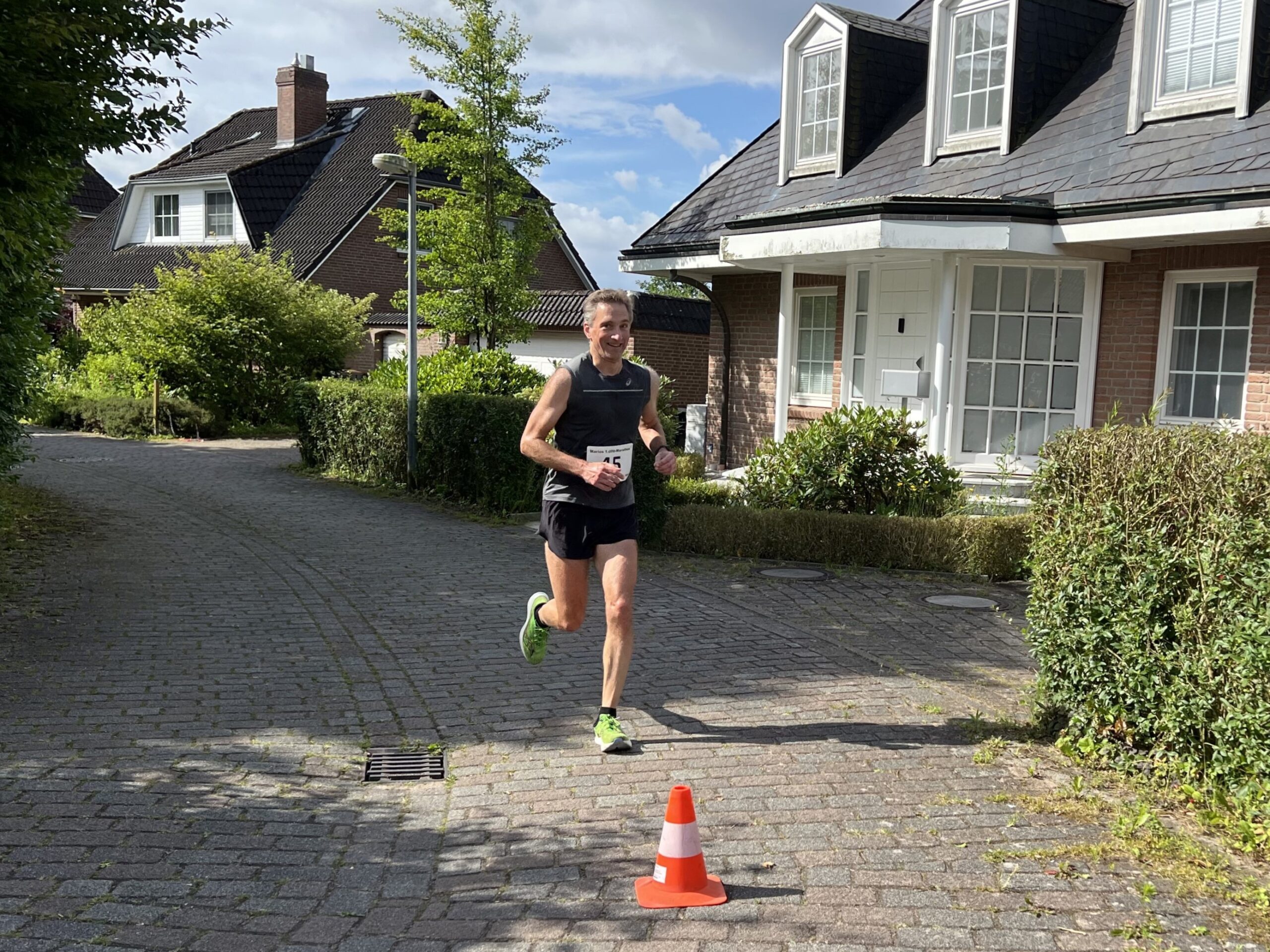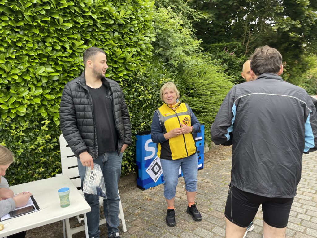 … lief Mario auf seiner Hausstrecke in Henstedt-Ulzburg seinen 1000. M/U. Die 1,5 Kilometer lange Strecke war 28x zu bewältigen. Etwa 40 Läuferinnen und Läufer kamen an diesem sonnigen Tag nach Schleswig-Holstein, um mit Mario seinen großen Tag zu feiern. Didi und ich waren mit dem WoMo am Vortag angereist, um uns einen WoMo-Platz in der Nähe des Wohnhauses der Familie Sagasser zu sichern. Gaby, Achim und Jessica waren ebenfalls am Vortag angekommen. Die Übernachtungsgäste wurden mit Pizza und Getränken versorgt.