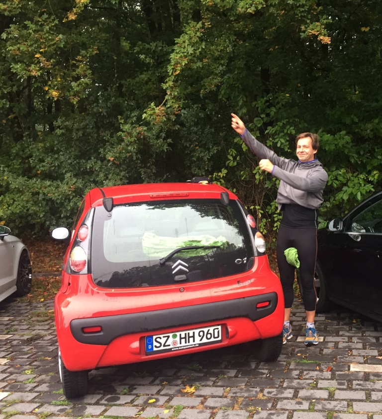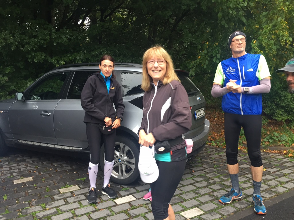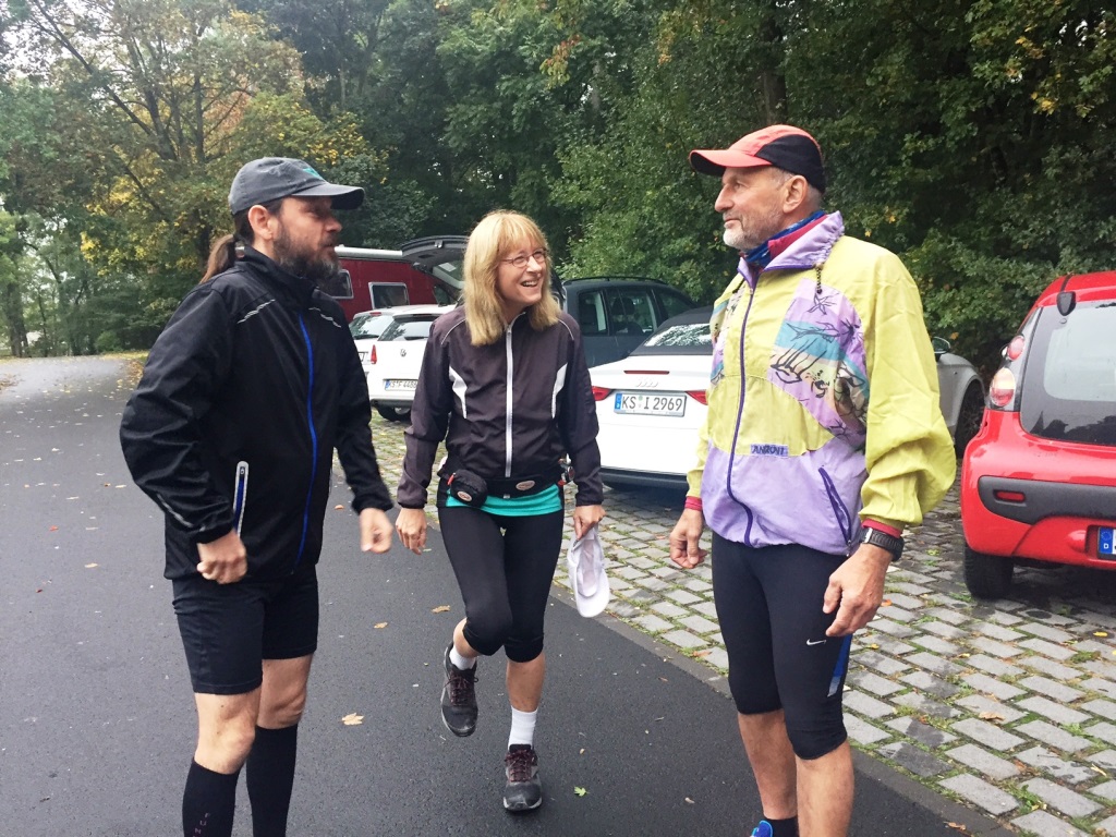 Einige hatten einen weiten Anfahrtsweg und verbrachten die Nacht vor dem Lauf entweder im warmen WoMo oder im Auto. Dietrich war schon fast fertig umgezogen und fachsimpelte mit Rita und Dieter.