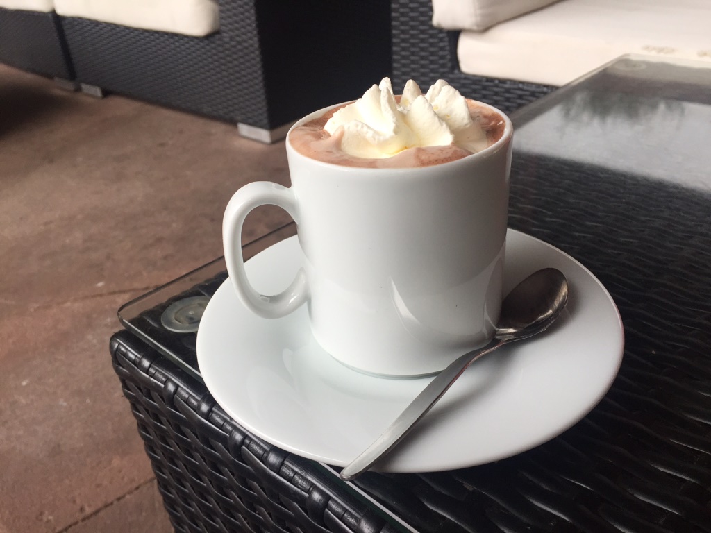 Ich hatte nicht nur Spaß, sondern auch Hunger und gönnte mir eine Tasse heiße Schokolade mit Sahne!