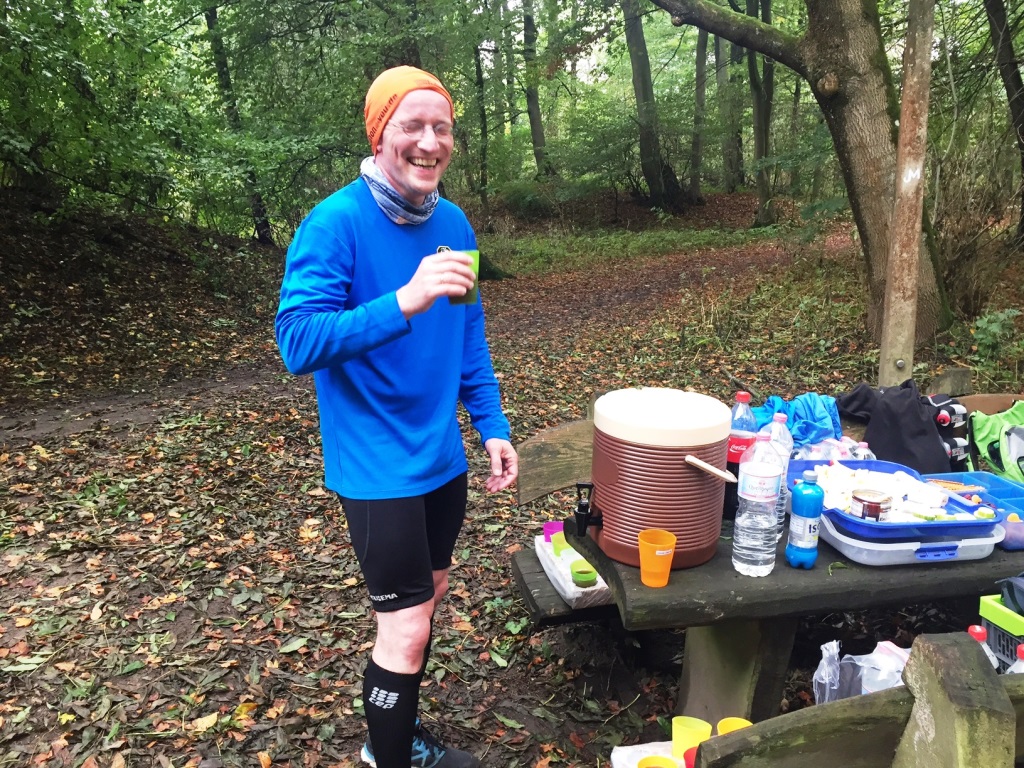 Der äußerst sympathische und während des ganzen Laufes fröhliche Markus führte von Anfang an und ließ nie die Verpflegungsstelle aus, die von Sylkes Tochter Anne betreut wurde.