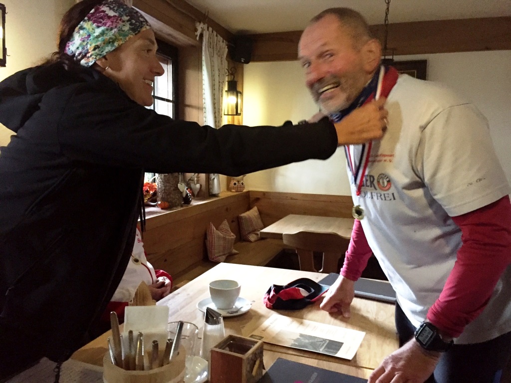Das Schönste kam ja noch! In der Wirtschaft bereitete Sylke die Siegerehrung für ihn vor.