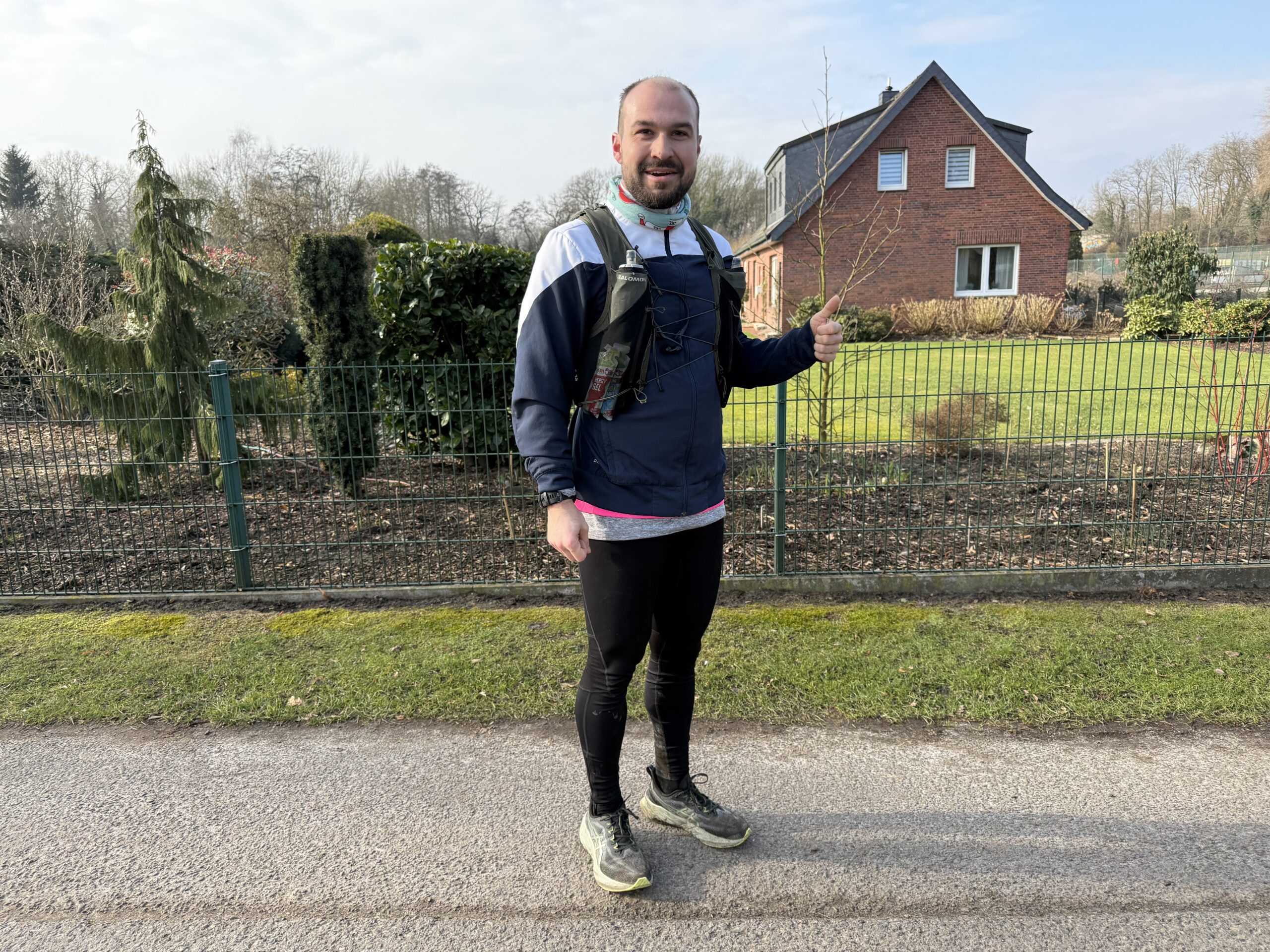 Am nächsten Morgen um 04:52 Uhr machte sich Didi mit der Stirnlampe bereit für den Start. Es herrschte winterliche Kälte zusammen mit einem doch recht kalten Wind. Während Didi in der Kälte unterwegs war, konnte ich mich über einen wunderschönen Sonnenaufgang und …… eine funktionierenden Heizung im WoMo freuen.„Nur die Harten kommen in den Garten“ dachte ich und verließ das warme WoMo, um in der Kälte Volkmar und Werner einen „Guten Morgen!“ zu wünschen.Unser 2. Vorsitzender Gerd im winterlichen Outfit war flott unterwegs.Eine wärmende Mütze und Winterhandschuhe waren heute ein Muss, dachte sich Nicole und stoppte nur kurz für ein Foto.Naja, heute wäre ich nicht in kurzer Hose gelaufen, Thomas aber schon. Sein Bruder Michael und Didi bevorzugten die lange Hose. Mütze, ein Buff als Multifunktionstuch und dicke Handschuhe waren an diesem Tag auch notwendig. Frieren wollte Didi nicht.Am WoMo angekommen, entschied sich Didi für die dicke 100 MC Jacke und stellte später fest, dass das die richtige Entscheidung war.Hans zeigte eine gute Laufhaltung und freute sich, eine neue Runde unter die Füße zu nehmen.Johann war ebenfalls gutgelaunt unterwegs.Jürgen …… und Sylvia sammelten mentale Gedanken auf der Strecke.Der Graureiher sucht auf Äckern und Wiesen nach Nahrung, er ernährt sich hauptsächlich von Fisch, jedoch auch von Jungvögeln und Insekten.Volkmar behielt für dieses Foto seine Mütze auf. PC Fachmann Hermann und John warteten geduldig darauf, die Schokolade endlich verspeisen zu dürfen. „Didi hat ein knallrotes Wohnmobil – Mit diesem Wohnmobil fahren wir hinaus – Didi hat ein knallrotes Wohnmobil – und erst im Abendrot kommen wir nach Haus!“Tagessieger wurde Christoph! Glückwunsch! Monika sicherte sich den 2. Platz. Glückwunsch, Monika!Nicole war im Ziel und wünschte dem Thomas alles Gute für seine letzte Runde. Glückwunsch, Nicole!Unweit des Schlosses Bentlage befindet sich diese Baumallee. – Seit dem 18. Jahrhundert wurden Alleen besonders an Wegen gepflanzt, die von Postkutschen befahren wurden. An der Wegkreuzung der zwei Wanderwege bleibt man unweigerlich stehen und lässt seiner Fantasie freien Lauf. Eine imaginäre Architektur! Man tritt hinein und befindet sich gleich im Freien. Die „Two Green Windows“ wirken wie ein großer Bilderrahmen. Die umgehende Landschaft ist das Gemälde. – Im Jahr 2001 wurden die Fenster vom italienischen Künstler Vittorio Messina gestaltet.Auf dem Gelände des Naturzoos in Rheine befindet sich die größte Storchenkolonie Nordrhein-Westfalens, vielleicht sogar Deutschlands. Einige Störche verbleiben auch im Winter in Rheine, während der bei weitem größte Teil in Richung Süden fliegt.In den letzten Jahren haben sich aber mehr und mehr Störche den Weiterzug abgewöhnt. – Als Nahrung bevorzugen Störche Mäuse, Wühlmäuse und Maulwürfe. Sie fressen aber auch Froschlurche, Eidechsen, Schlangen und Großinsekten. – Im Hintergrund genießt ein Entenpärchen die Wärme der Sonnenstrahlen.Die Sonne strahlte mit mir um die Wette. Nicht nur ich hatte gute Laune. Auch …… Didi, der demnächst …… die Ziellinie überqueren sollte und damit seinen 1547. Zähler mit nach Hause nehmen konnte. Glückwunsch!Volkmar hatte alles Griff! „Alle Schäfchen im Stall!“ Veranstalter Volkmar konnte zufrieden sein! Glücklich im Ziel: Andree, Volkmar, Thomas, Michael, der sich heute wegen einer Verletzung mit 4 Runden begnügte und Andrees Freundin Monika (v.l. nach r.) – Glückwunsch!Am nächsten Morgen erlebten wir erneut einen wunderschönen Sonnenaufgang! Die Sonne ließ nicht lange auf sich warten und begleitete uns den ganzen Weg nach Hause.