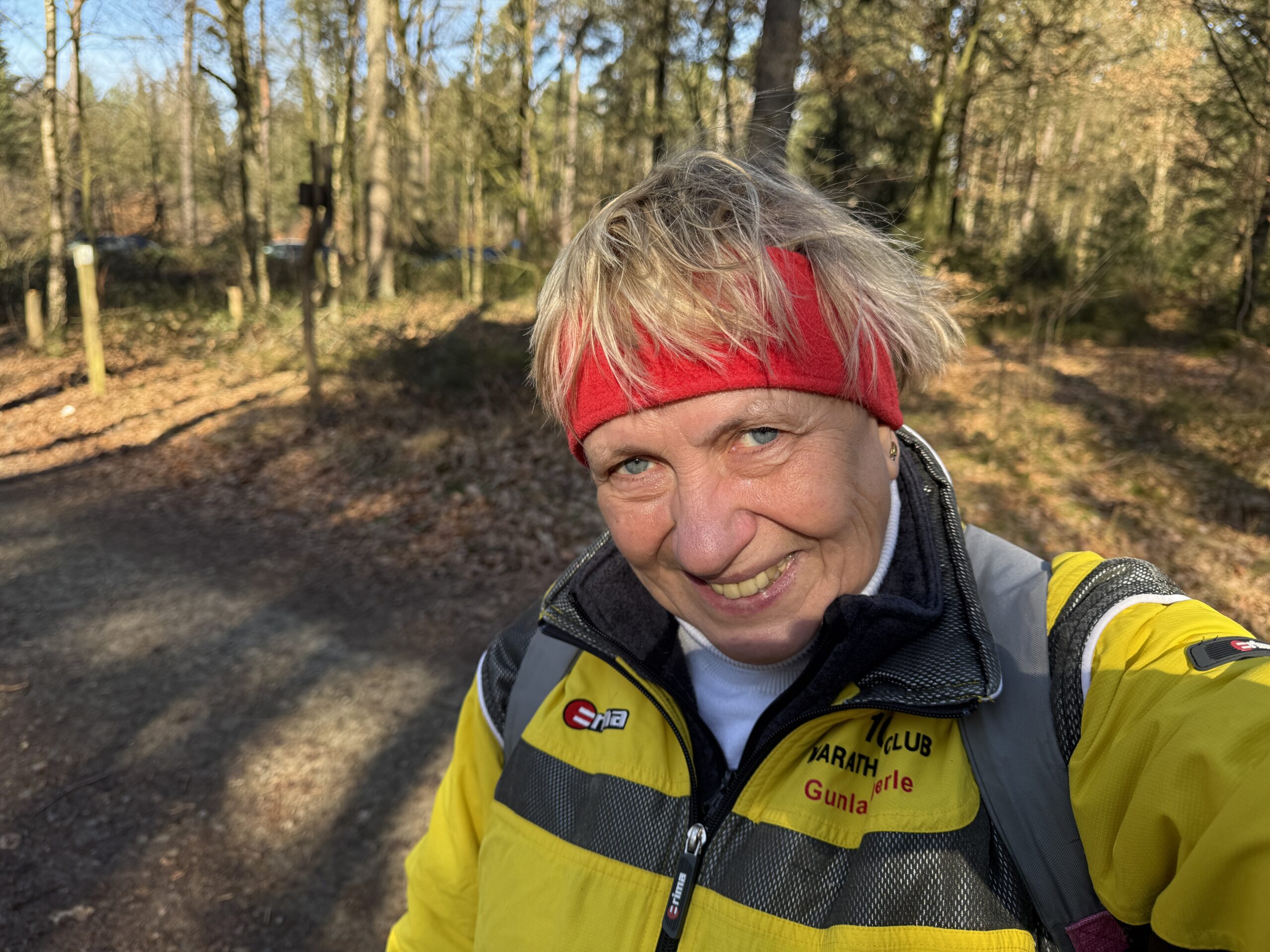 Rita, der Veranstalter Arne, Erika und Till waren mit Didi und mir die ersten Teilnehmer. Langsam … … trudelten weitere Laufverrückte auf den Wanderparkplatz ein. Nach dem Starterfoto folgte ein Briefing, bei dem fast alle konzentriert zuhörten. Die Uhren wurden gestellt und dann ging es für 16 Zweibeiner und 1 Vierbeiner auf die Strecke. Die Läufer und Cindy (als Vierbeiner) mussten sich auf einem Auftaktstück, gekennzeichnet durch ein Flatterband, 100 Meter hin und 100 Meter zurück „warmlaufen“, um dann 10 Runden von etwa 4,2 km bewältigen, um die Marathondistanz erreichen zu können.Biggi, Rafael, Mario und Rabea hatten die ersten 200 Meter fast geschafft. Im Hintergrund folgten die restlichen Läufer. Torsten und Schrottie (Regine) gefolgt von Martin, der wetterbedingt die Kapuze seiner Laufjacke statt Mütze nutzte. Rita, Didi, Erika und Arne versuchten durch „Speedwandern“ ihre Motivation zu steigern. Didi und Erika walkten zwei Runden zusammen, dann „trennten“ sie sich, da Didi eine bestimmte Hahnzeit anstrebte.Rafaels Lebensgefährtin Jessi strahlte mit der Sonne um die Wette.Hier startete der 17. Zweibeiner Monika etwas verspätet in die Auftaktrunde.Erika hatte sich kurz an ihrer Verpflegungsstelle gestärkt und machte sich auf den Weg in eine neue Runde.Zwischen Kiefern und Fichten machte sich eine Amerkanische Buche bemerkbar und genoss die Sonne.Als Paparazzi freute ich mich über die Sonne. So wurden die Fotos von alleine zu aller Zufriedenheit.Die drei Musketiere Rafael, Christoph und Mario liefen ein schnelles Tempo.Rainer genoss das Laufen, die Strecke und die Sonne.Obwohl die Sonne sich von ihrer besten Seite zeigte, begnügte sich Torsten heute mit einem Halbmarathon. Martin verzichtete inzwischen auf die Kapuze und steigerte stattdessen sein Lauftempo. Im Hintergrund näherte sich Biggi, ebenfalls im flotten Tempo.Na, sage ich doch! Biggi lief mit einer guten Laufhaltung gleichmäßig schnell.Ein immer gut gelaunter Didi mit Doris auf der StreckeSpeedy Gonzales in action! Anscheinend hatte Arne eine bestimmte Hahnzeit vor den Augen.Die Sonne strahlte und gab diesem moosbedeckten Weg einen Hauch Romantik.Rosi und Cindy – ein eingespieltes TeamUwe, Rabea, …… Monika und …… Rita, …… Schrottie, Rainer, wie auch …… Doris wünschten sich ein Wiedersehen mit der Sonne. Und siehe da …… Erika wusste, wie man die Sonne herbei wünscht, denn sie strahlte wie eine Sonne! Uwe und Rabea in einer ihrer letzten RundenArne (Speedy Gonzales) auf dem Weg in eine neue (letzte?) RundeMartin freute sich, dass am heutigen Tag der Regen ausblieb!Arnes Frau Christiane kam zu Besuch und nahm sich Zeit, mit mir zu klönen.Rainer hatte einen guten Tag! Mit seiner Laufzeit war er sehr zufrieden.Monika scherzte in ihrem selbstkreierten Laufoutfit! Du sahst heute sehr gut aus, Monika!Schrottie leutetete in ihrem neonfarbigen Outfit. Rabea und Uwe liefen im Gleichschritt ein moderates Tempo.Rosi freute sich über ihre brave Cindy.„Bald hast du es geschafft, Doris!“Speedy Gonzales hatte das Ziel erreicht und strahlte wie ein Honigkuchenpferd! Glückwunsch, Arne!Zieleinlauf für Schrottie und …… Doris – Glückwunsch, Mädels!„Bekomme ich noch ein Leckerlie?“ – „Du hattest beim Zieleinlauf schon ein Leckerlie; ich muss jetzt meine Zeit auf beiden Uhren kontrollieren!“ Ein gut erzogener Hund, die Cindy!Umgezogen und zufrieden genoss Arne nach seinem Zieleinlauf seinen Milsani Schoko Drink. In diesem Baumstamm könnte sich ein Waldgeist verstecken! Rosi begleitete Rita in ihrer letzten Runde und Rita freute sich. Zieleinlauf für Erika – Glückwunsch!Der alte Mann und der Segeberger ForstAch, das ist ja Didi, der jetzt auch im Ziel ist und damit seinen 1552. Zähler in der Tasche hat! Glückwunsch!