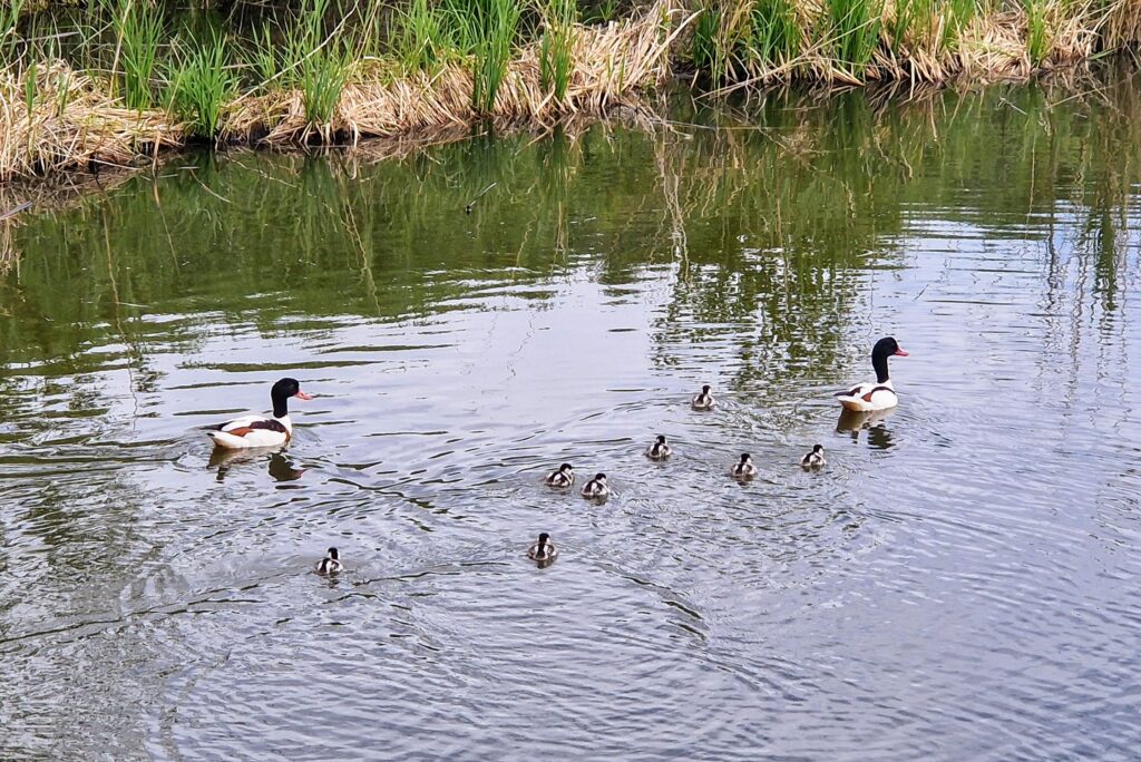 Da wir früh vor Ort waren, hatten wir das Glück, eine der 6 Parkbuchten direkt am Start zu ergattern. Didi hatte außerdem genug Zeit, sich für den Marathon fertig zu machen … … und nach vorheriger Absprache mit den Veranstaltern die Erlaubnis für einen Frühstart bekommen. Besonders freute uns das Wiedersehen mit Wolfgang und seiner Monika. Die Zeit vor dem Start nutzte Wolfgang, um Monika Neuenfelde zu zeigen. Martin kam gut gelaunt kurz nach 07.00 Uhr in Neuenfelde an und war für meinen Begriff bei dem frischen Wind zu luftig gekleidet, meinte jedoch, es solle doch wärmer werden. Es zeigte sich später, dass er Recht haben sollte. Diese Brandgansfamilie hatte es eilig. Sie überquerte die Dorfstraße und machte sich schnell auf dem Weg zum Gewässer, das sich an der Laufstrecke befand. – Männchen und Weibchen sind gleich gefärbt. Der Schnabel ist orangerot, der Hals grün und der breite Brustring rostbraun. Die männliche Brandgans hat einen deutlichen Schnabelhöcker und ist meistens etwas größer und kräftiger. DIe Weibchen sind um die Augen und am Schnabelansatz häufig weiß. Die Brandgänse werden etwa16 Jahre alt. Stephan W. wollte sich keinen Sonnnenbrand holen und schmierte sich deshalb mit Sonnenschutz ein.Haralds fröhliche Laune steckte an!„Frierst du nicht?“ – Wolgangs Antwort: „Nur die Harten kommen in den Garten!“ Hier sind sie, die Harten mit guter Laune vereint auf dem Starterfoto: Bernd, Peter, Stephan M., Martin Tr., Stephan B., Inka, Harald, Martin Tö., Hans, Mike, Stulle, Annett mit ihrem Ingo, Mukir, Stephan W. und Wolfgang (v.l. nach r.)Einen letzten Blick auf die Uhr – dann setzte sich das Läuferfeld in Bewegung …… und verschwand am Horizont.Der spätere Tagessieger Stephan W. Harald würde am liebsten die ganze Welt umarmen!„Fang´ mich doch!“ Stephan M. hatte hier grad den Paparazzi Didi überholtBernd tänzelte gekonnt an Spaziergängern vorbei. Stephan steigerte streckenweise sein Tempo. Hatte er den Tagessieg vor Augen?Eine sehr gepflegte Obstplantage„Unsere“ Brandgansfamilie und ihre Küken haben ihr Ziel erreicht. – Gänse lieben Wasser. Sie sind sehr sozial, intelligent und familiär. Martin Tö. wollte heute seinen 299. M/U unter die Füße bringen.Neuenfelde ist ein Stadtteil von Hamburg. Nordöstlich von Neuenfelde liegt das Airbus-Werk Finkenwerder. Die Laufstrecke führte an diesem Gewässer und am Deich vorbei durch den naturbelassenen Elbort. Ganz in der Nähe befindet sich die alte Süderelbe. Mike belegte den 2. Platz, ganz knapp hinter Stephan W. Glückwunsch!Inka, Ingo und Martin Tr. marschierten mit kurzen Unterbrechungen die Marathonstrecke zusammen.Eine Wiese voller blühenden Wildblumen – im Hintergrund ein romantisches Bild des Dorfes Neuenfelde mit einer Obstplantage unter hellblauem HimmelDa sind sie ja wieder! Inka überzeugte die Männer, ein flotteres Tempo einzuhalten. Am Start und Ziel hielt ich am Versorgungspunkt die Stellung und notierte die Endzeit der Läufer. Damit …… nahm ich dem Veranstalter etwas Arbeit ab. Darüber freute er sich und konnte sich voll und ganz auf Sub 5 konzentrieren. Glückwunsch, Stephan B. zu dieser Leistung!Der Löwenzahn, wenn er verblüht ist, sorgt immer dafür, dass er woanders in voller Blüte auftaucht.Stephan M. freute sich über den 4. Platz!Inzwischen herrschten moderate Temperaturen. Für Hans war das genau richtig. Er begnügte sich nach einer Laufpause mit einem Halbmarathon. Mit der Laufzeit konnte er wirklich zufrieden sein. Glückwunsch, Hans! Peter auf der StreckeIch freute mich über die frische Brise, auch wenn die Frisur nicht perfekt saß.Diese Butterblume bekam Besuch von dem grünen Steinbockkäfer, der die Pollen der Butterblume genoss.Mike hatte verzweifelt nach einem Mülleimer entlang der Strecke gesucht und war dann dankbar, dass ich die ausgetrunkene Packung für ihn entsorgte.Stulle und Mukir im Gleichschritt auf der StreckeInka war heute sehr flott unterwegs – da …… konnten Martin und Ingo nicht ganz mithaltenAha, Didi versuchte nämlich die beiden Kumpels abzulenken und in ein Gespräch zu verwickeln! Besenginster – wertvoll für Bienen und FalterEine Wildblumenwiese unter blauem Himmel – Da muss man auch stehenbleiben und genießen!Didi – auf dem Weg zu einer weiteren HahnzeitMike gratulierte Didi zum 30. jährigen Hochzeitstag und wünschte ihm noch viel Spaß für die letzten Runden.Ingo hatte Inka doch noch eingeholt. Peter schmunzelte.Endlich!Didi überquerte die Ziellinie – begleitet wurde er durch eine Laola Welle vom Veranstalter. Zielenlauf für Inka, Ingo, Martin Tr. und …… Cornelia – Alle Schäfchen sind im Stall! Glückwunsch!Small Talk unter Läufern
