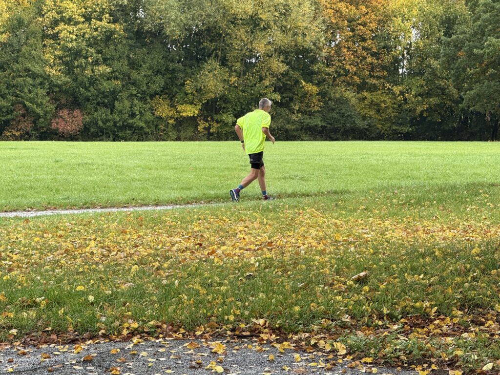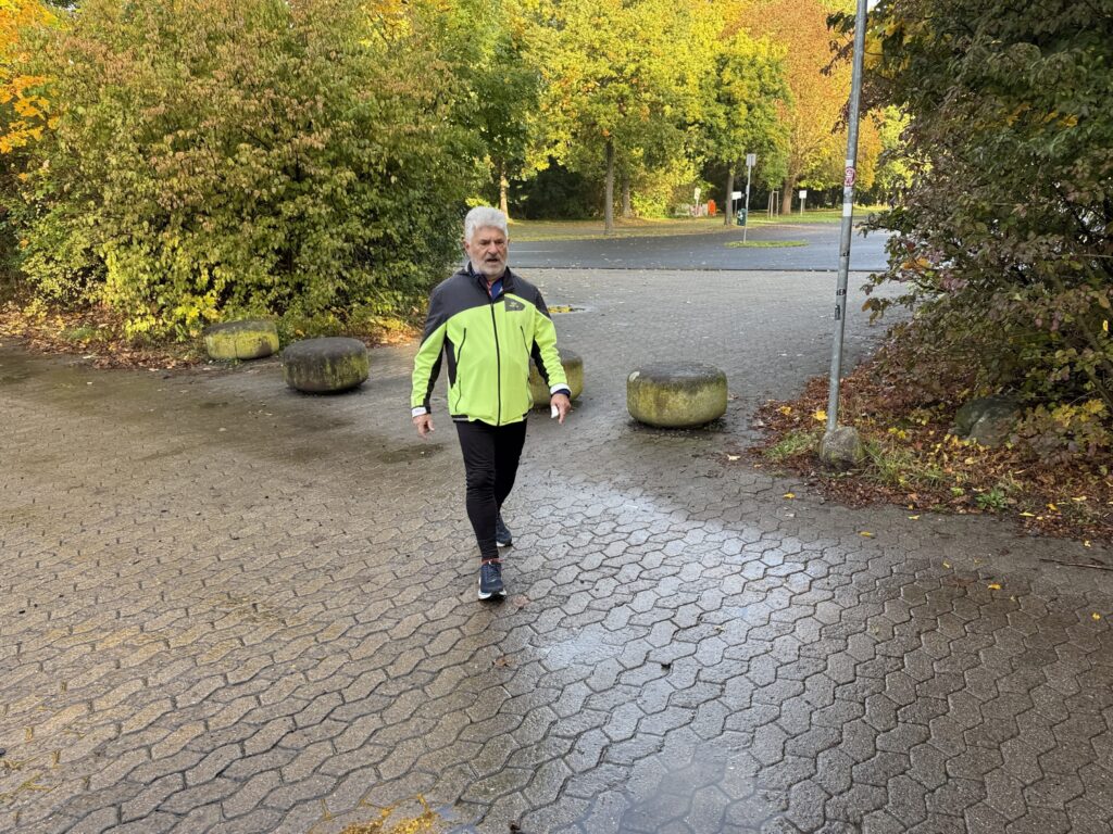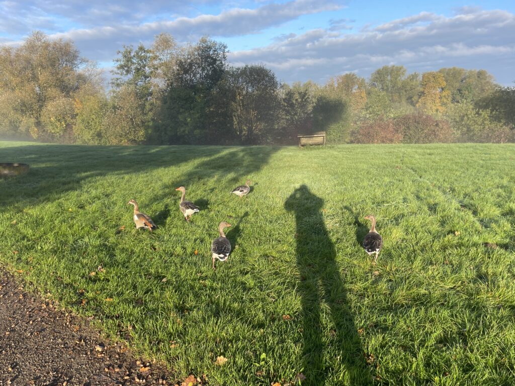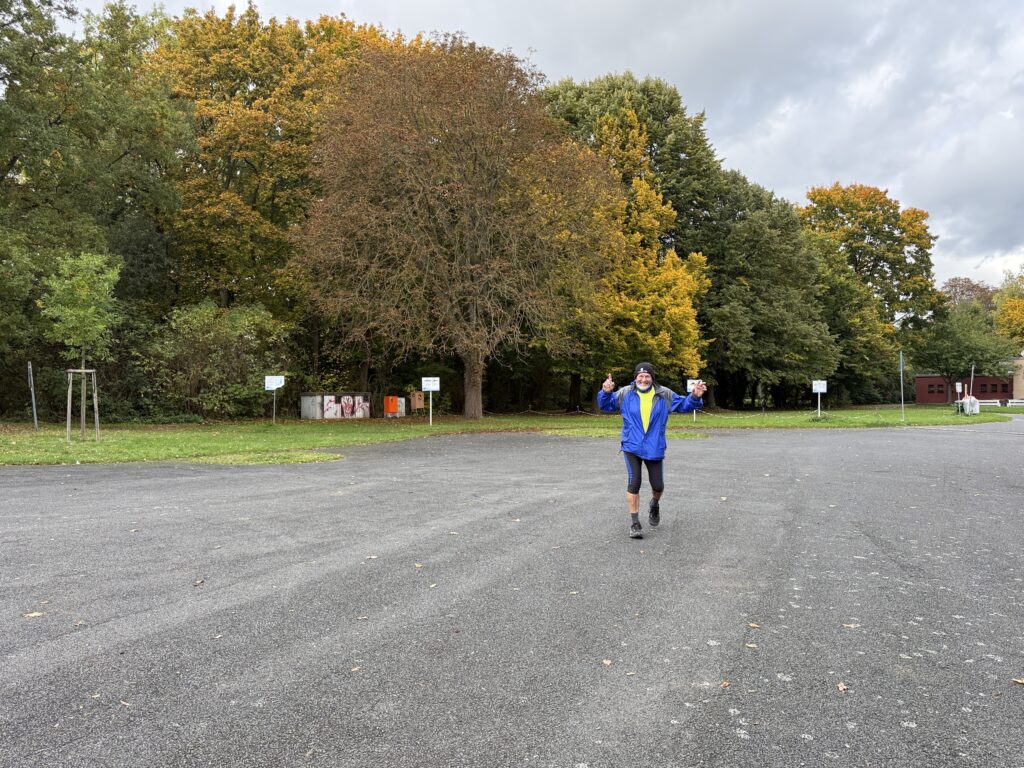 Didi startete früh. Es war noch duster, aber …… die Sonne und der Bodennebel begrüßten etwas später den Tag und …… lockten die Graugänse zum Frühstück auf dem Rasen. Ein „Langbeiner“ gab sich als Paparazzi aus und konnte die Gänse fotografisch festhalten. – Graugänse zählen zu den häufigsten Wasservögeln und sind, nach der Kanadagans, die zweitgrößte Gänseart in Europa.Auch Bernd war da und steuerte von einer der zu laufenden Runden in die nächste.Die Veranstalterin Sylke begrüßte uns und freute sich, dass Didi und ich wieder zu einem ihrer Läufe gekommen waren.Das WoMo in herbstlicher UmgebungEine Eichel, die ihren Hut verloren hat – Die Tröpfchen auf ihrem „Rücken“ dienten als Wasserquelle für Vögel und Insekten.Das Sonnenlicht eroberte an diesem wunderbaren Herbsttag das Naturschutzgebiet um …… den Bugaseee, der heute für Pflanzen und Wolken wie ein Spiegel wirkte. Idylle im Herbst – stehenbleiben und genießenDidi freute sich auf die sechste Runde und …… fotografierte mich in der Sonne. Das Foto ist auf jeden Fall gelungen! Ich weiß nicht, warum ich so ernst schaue.Nach unserer kurzen Fotosession begab sich Didi in die nächste Runde.Ein „Naturspiegel“ im Bugasee – Da kann jeder die Seele baumeln lassen.Sylke – immer gut drauf!Der Ahorn im Herbst – ein echter HinguckerDie Rispe des Schilfs verneigte sich und zeigte sich in herbstlicher Schönheit.Der Schilf am Badestrand zeigte eine majestätische Haltung und wirkte dadurch etwas geheimisvoll.Badestrand am Bugasee Burkhard – Ton in Ton mit der herbstlichen UmgebungDer Tagessieg ging heute an Sylke! Glückwunsch!Mein Lieblingsvogel, das Rotkehlchen, ließ sich anstandslos von mir fotografieren. – Bei den Kelten und Germanen galt der Vogel als heiliger Glücksbringer. Das Rotkelchen ist Deutschlands beliebtester Singvogel und war 1992 und 2021 Vogel des Jahres.Herbst ist die schönste Jahreszeit!Endlich konnte ich Burkhard fotografisch festhalten und zum 2. Platz des heutigen Laufes beglückwünschen!Zieleinlauf für Sylke, die heute 20 Minuten schneller als Burkhard das Ziel erreichte! Super gemacht!Didi auf dem Weg ins Ziel und zum …… 1580. Zähler! Glückwunsch!Die Laufstrecke mit dem Auftaktstück