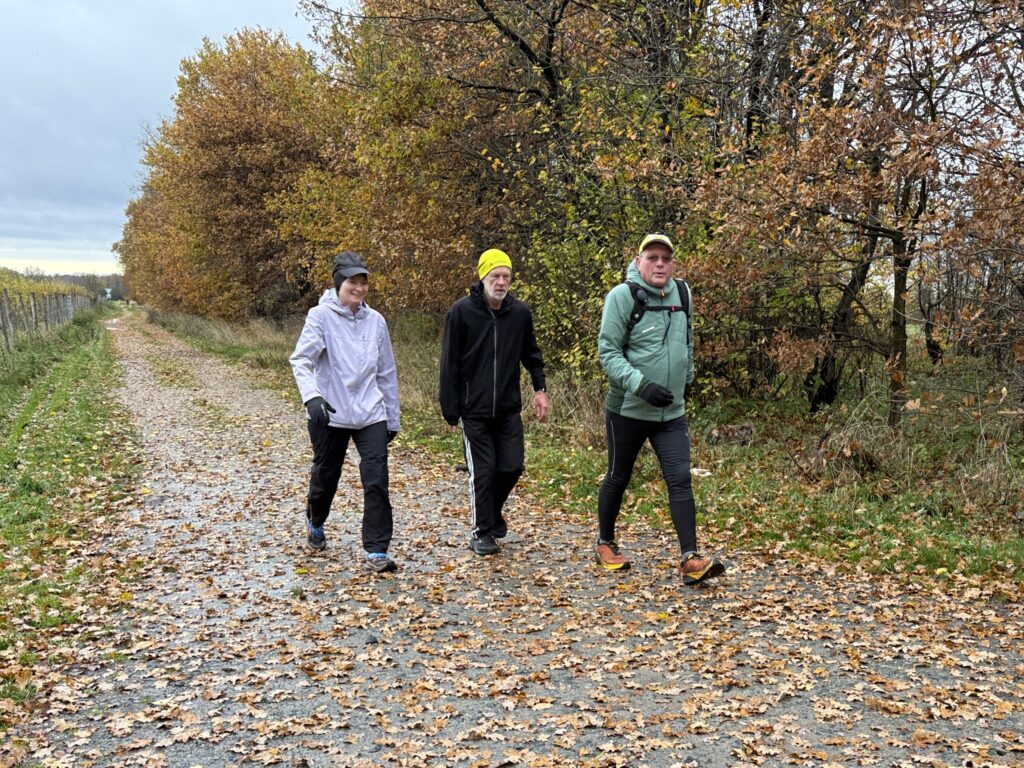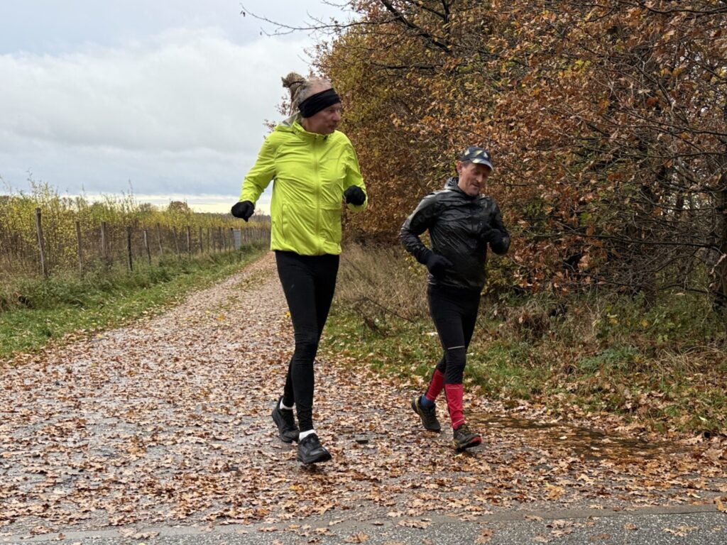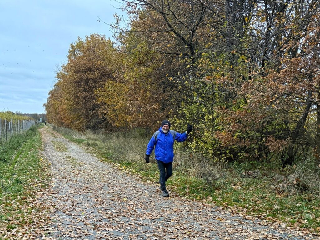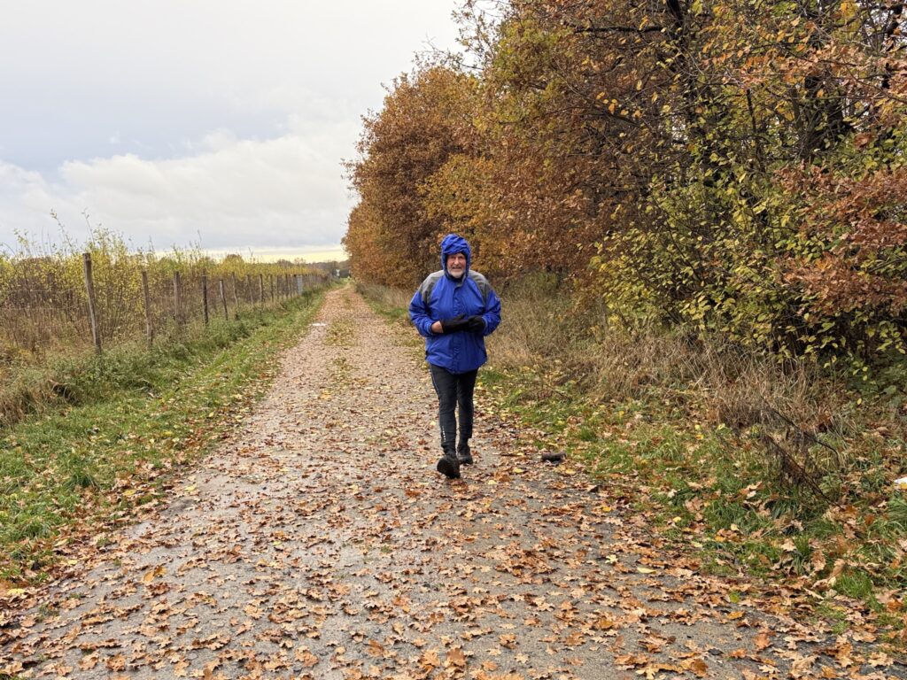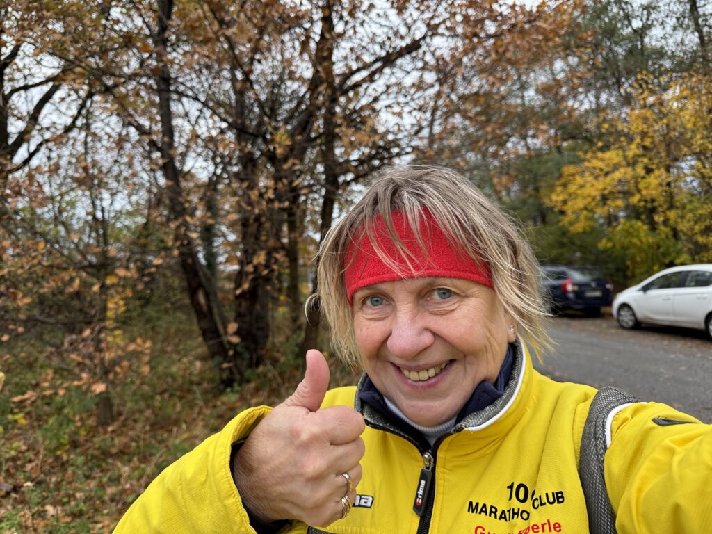 … Didi und …… Cornelia in der Dunkelheit um 07:00 Uhr.Kurz vor 08:00 Uhr begrüßte Affenzahn Sigrid und Hajo, der Sigrid zu dieser Veranstaltung mit dem Auto gebracht hatte.Das Wetter zeigte sich schon beim Briefing durchwachsen. Ein frischer und herbstlicher Tag ohne Sonne sollte die Läufer heute begleiten.Aber die Läufer zeigten sich am Start wetterfest gekleidet und gut gelaunt. Ich traute mich in einer ersten kleinen Regenpause aus dem warmen WoMo für ein Selfie heraus und hoffte, bald einen Läufer auf der mit einigen … … Pfützen „bestückten“ Zieleinlaufstrecke zu fotografieren.Während ich auf ein Fotoobjekt wartete, sprangen mir die bunten Blätter des Rubus (lat. Brombeerstrauch) ins Auge. Ah, da kommt er ja schon! Didi hatte jetzt zwei Runden geschafft und machte einen energischen und entschlossenen Eindruck, wie auch …… Frank, Mukir, …… Cornelia und Bernd. Inka, Burkhard und Affenzahn waren im flotten Marschschritt unterwegs.In der ersten Runde begleitete Stephan Sigrid, weil sie die Strecke nicht kannte. Dann schaltete Stephan den Turboschritt ein und zog davon. Frank und Mukir leiferten sich ein Duell, das Frank gewann und ihn mit einer Sub5 Zeit zum Tagessieger machte. Mukir erreichte den 2. Platz. Glückwunsch!Manche Pflanzen sind sehr robust und freuen sich über einen milden Winter, wie die Westalpen-Schafgarbe.Getränkeverpflegung für verschiedene Insekten und VögelDer Rubus beweist, dass der Herbst die schönste Jahreszeit ist.Die Laufstrecke ist ein Rundkurs von 4,730 Metern je Runde, der neun Mal zu durchlaufen ist und führt durch …… das Naturschutzgebiet Moorgürtel in Hamburg nördlich von Neugraben. – In Naturschutzgebieten sollten die Besucher sich an die „abgebildeten“ Regeln halten.Der Metronom von Stade nach Hamburg hält auch in Neugraben.Blick auf das Ziel – scheint sehr weit weg zu sein !Stephan hat immer ein Herz für die langsameren „Altersläufer“!Das ist die Außenstelle Neugraben der JVA „Santa Fu“, die Inhaftierten wurden schon kurze Zeit später von Inka freigelassen und konnten …… als Elite, geführt von ihrer Retterin Inka, eine neue Runde auf’s Parkett legen. – Im Hintergrund lauerte Affenzahn!Gegen 14:00 Uhr war die Hälfte von Inkas leckerem Kuchen im Magen der Läufer.Didi durfte auch den Kuchen probieren! Die Drittplazierten Inka, Stephan, Affenzahn und Burkhard nach dem gemeinsamen Zieleinlauf – Glückwunsch! – Sigrid, Cornelia und Bernd, der heute einen Ultra lief, sind noch unterwegs, wie auch …… Didi, der … … bald seinen …… 1585. Zähler in die Statistik eintragen konnte. Tolle Leistung, Schatzi! Ich bin stolz auf dich!