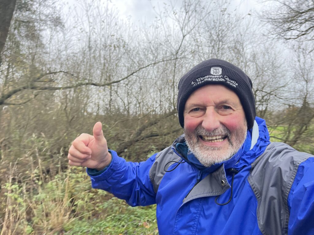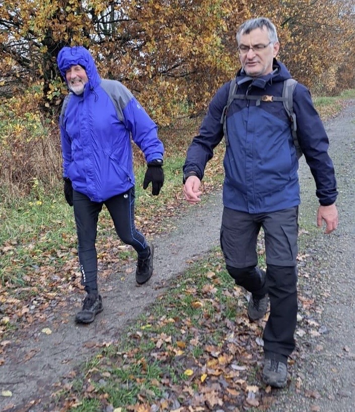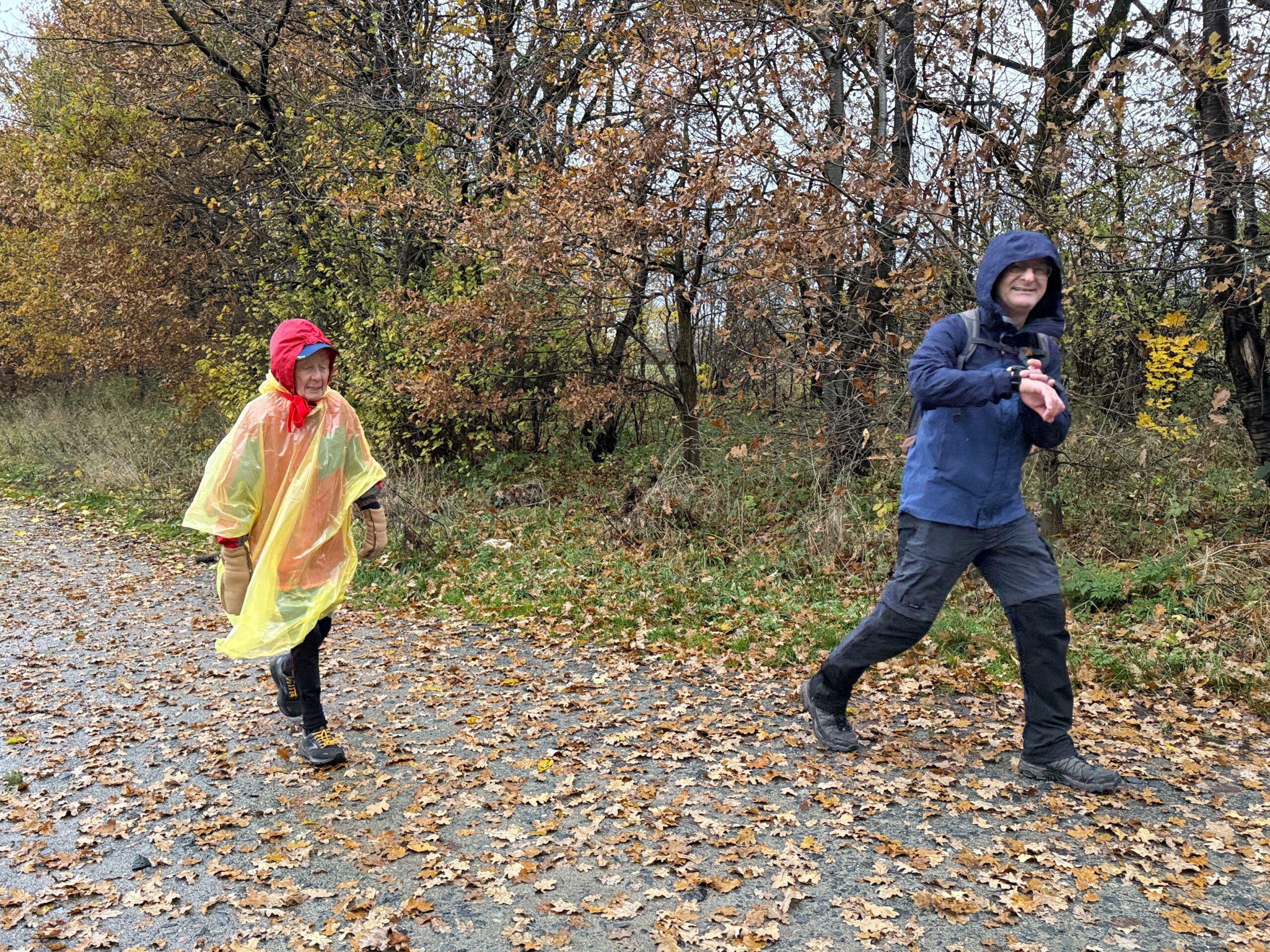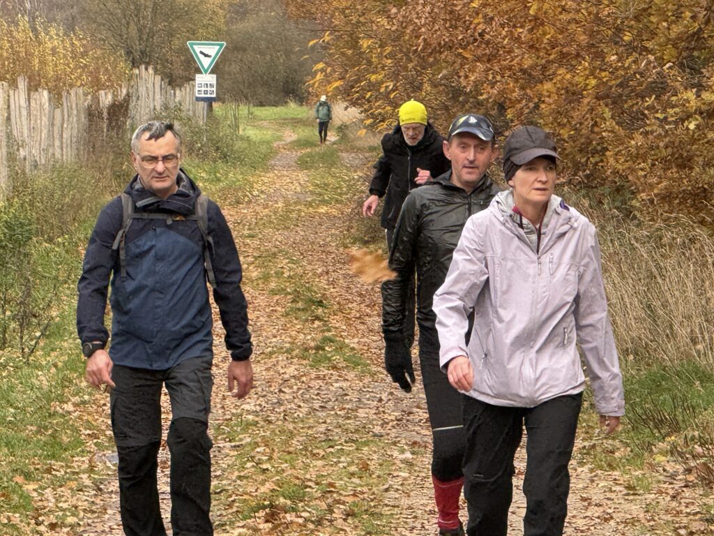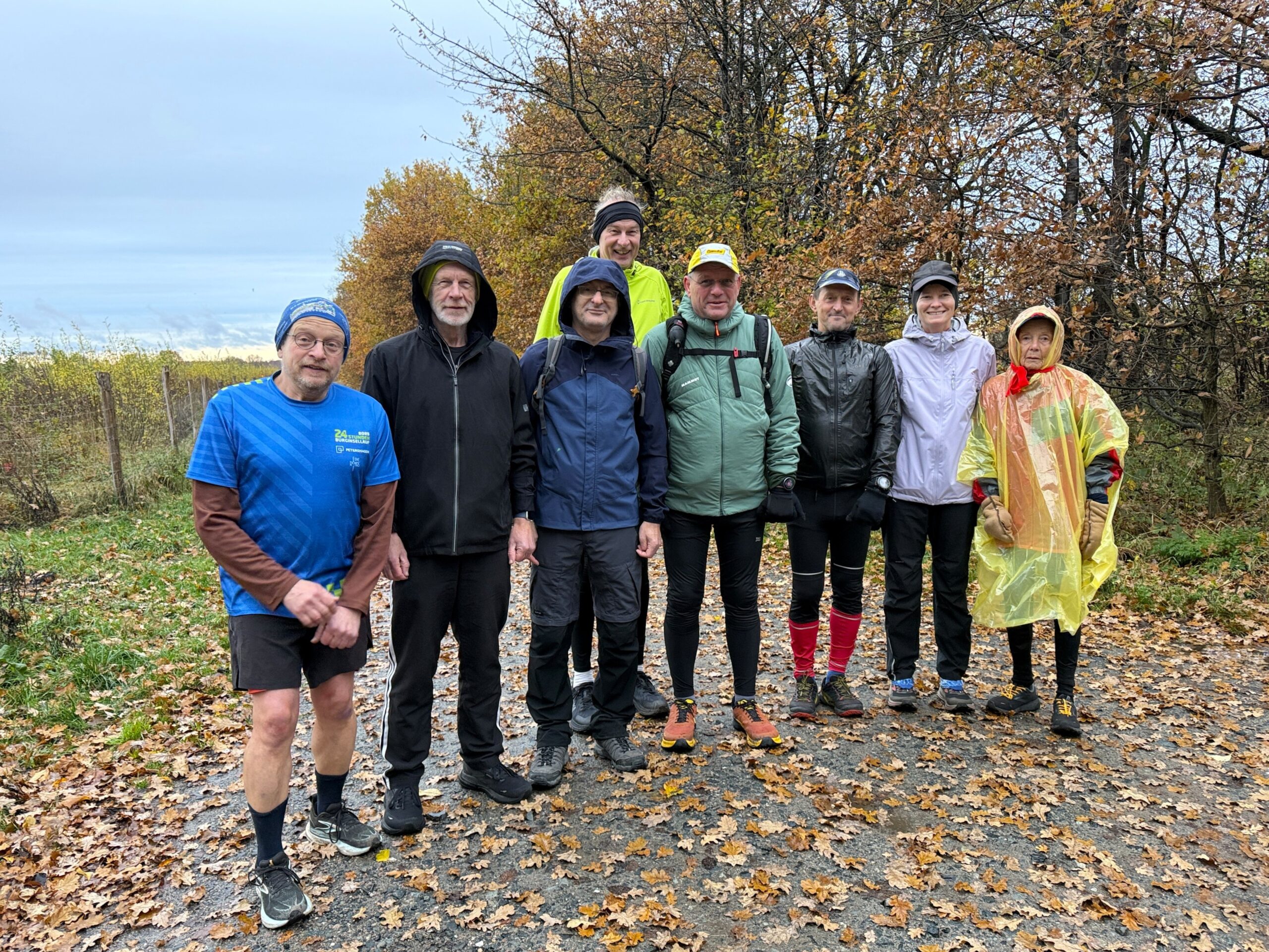… Didi und …… Cornelia in der Dunkelheit um 07:00 Uhr.Kurz vor 08:00 Uhr begrüßte Affenzahn Sigrid und Hajo, der Sigrid zu dieser Veranstaltung mit dem Auto gebracht hatte.Das Wetter zeigte sich schon beim Briefing durchwachsen. Ein frischer und herbstlicher Tag ohne Sonne sollte die Läufer heute begleiten.Aber die Läufer zeigten sich am Start wetterfest gekleidet und gut gelaunt. Ich traute mich in einer ersten kleinen Regenpause aus dem warmen WoMo für ein Selfie heraus und hoffte, bald einen Läufer auf der mit einigen … … Pfützen „bestückten“ Zieleinlaufstrecke zu fotografieren.Während ich auf ein Fotoobjekt wartete, sprangen mir die bunten Blätter des Rubus (lat. Brombeerstrauch) ins Auge. Ah, da kommt er ja schon! Didi hatte jetzt zwei Runden geschafft und machte einen energischen und entschlossenen Eindruck, wie auch …… Frank, Mukir, …… Cornelia und Bernd. Inka, Burkhard und Affenzahn waren im flotten Marschschritt unterwegs.In der ersten Runde begleitete Stephan Sigrid, weil sie die Strecke nicht kannte. Dann schaltete Stephan den Turboschritt ein und zog davon. Frank und Mukir leiferten sich ein Duell, das Frank gewann und ihn mit einer Sub5 Zeit zum Tagessieger machte. Mukir erreichte den 2. Platz. Glückwunsch!Manche Pflanzen sind sehr robust und freuen sich über einen milden Winter, wie die Westalpen-Schafgarbe.Getränkeverpflegung für verschiedene Insekten und VögelDer Rubus beweist, dass der Herbst die schönste Jahreszeit ist.Die Laufstrecke ist ein Rundkurs von 4,730 Metern je Runde, der neun Mal zu durchlaufen ist und führt durch …… das Naturschutzgebiet Moorgürtel in Hamburg nördlich von Neugraben. – In Naturschutzgebieten sollten die Besucher sich an die „abgebildeten“ Regeln halten.Der Metronom von Stade nach Hamburg hält auch in Neugraben.Blick auf das Ziel – scheint sehr weit weg zu sein !Stephan hat immer ein Herz für die langsameren „Altersläufer“!Das ist die Außenstelle Neugraben der JVA „Santa Fu“, die Inhaftierten wurden schon kurze Zeit später von Inka freigelassen und konnten …… als Elite, geführt von ihrer Retterin Inka, eine neue Runde auf’s Parkett legen. – Im Hintergrund lauerte Affenzahn!Gegen 14:00 Uhr war die Hälfte von Inkas leckerem Kuchen im Magen der Läufer.Didi durfte auch den Kuchen probieren! Die Drittplazierten Inka, Stephan, Affenzahn und Burkhard nach dem gemeinsamen Zieleinlauf – Glückwunsch! – Sigrid, Cornelia und Bernd, der heute einen Ultra lief, sind noch unterwegs, wie auch …… Didi, der … … bald seinen …… 1585. Zähler in die Statistik eintragen konnte. Tolle Leistung, Schatzi! Ich bin stolz auf dich!