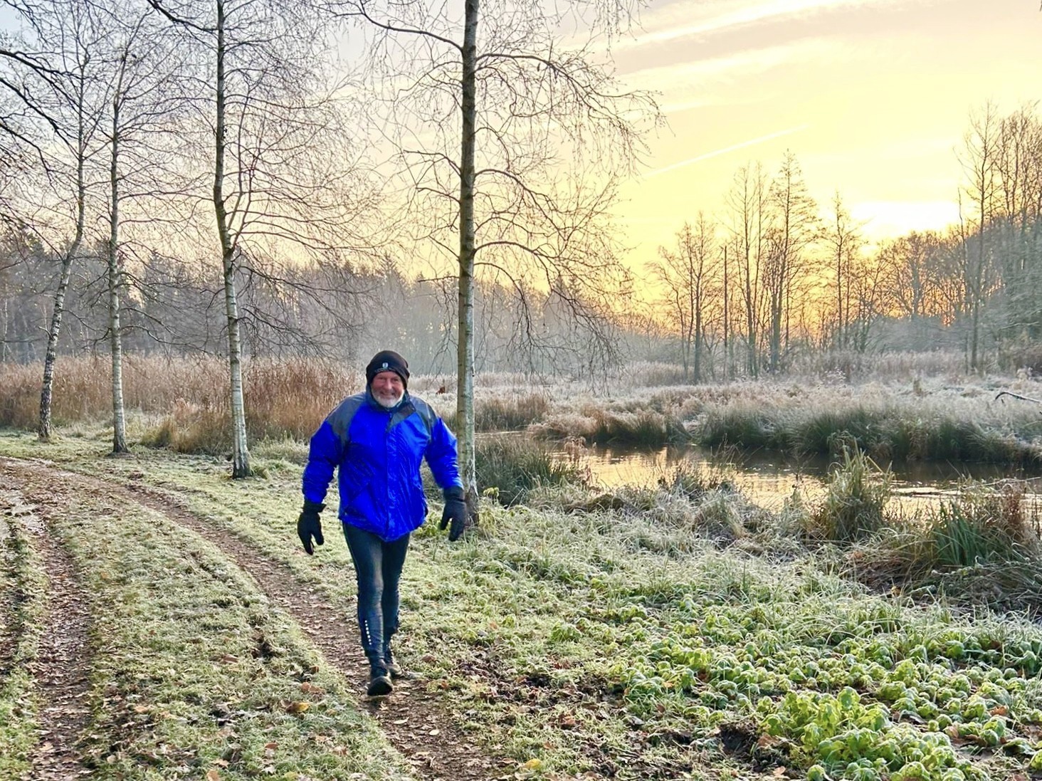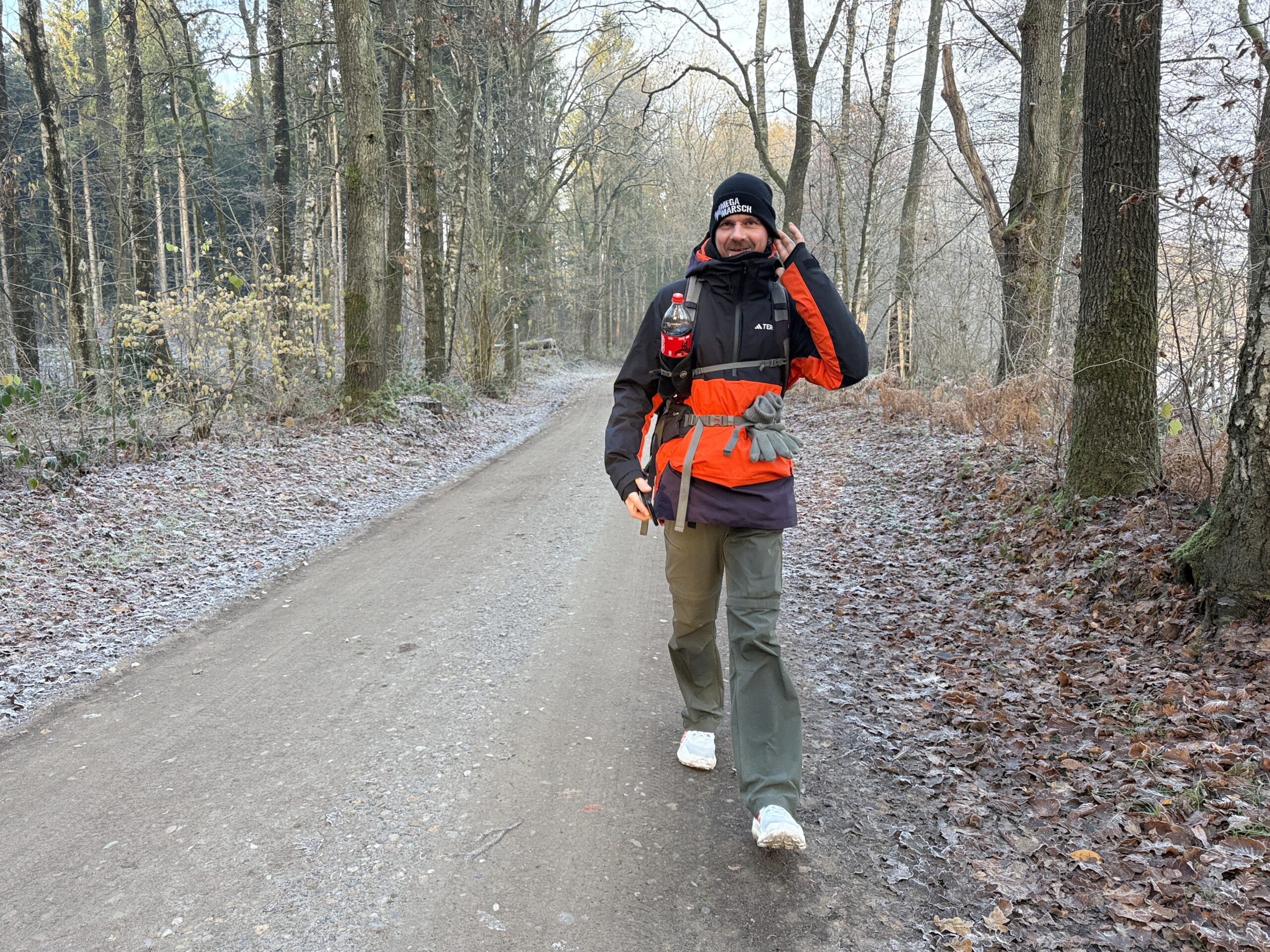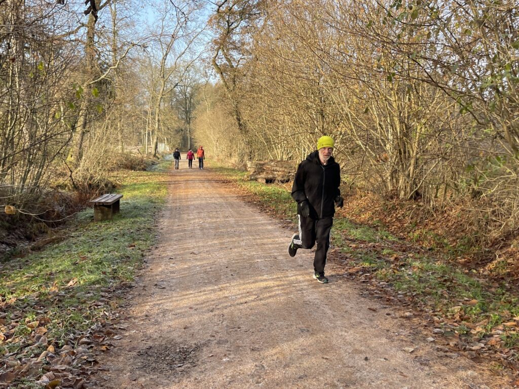 … die Sonne im Osten ihre Ankunft ankündigte. Didi wollte nach einer Stärkung am WoMo seine 4. Runde fortsetzen.Rita und Dieter freuten sich über eine weitere Runde.Kurz nach 08:00 Uhr klopfte Burkhard am WoMofenster und scherzte mit mir, bevor er seine 1. Runde fortsetzte. Dieses traumhaft schöne und bunte Foto schoss Claudia unterwegs. Danke, liebe Claudia für das Foto vom Didi vor der winterlichen Kulisse an der Schmalfelder Au!„Die Sonne ist das Auge der Welt – die Freude des Tages – die Schönheit des Himmels – die Anmut der Natur – das Juwel der Schöpfung.“Warm angezogen und mit guter Laune kam mir Thorsten entgegen!Eiskristalle – zartes Gebilde des WintersEinfach nur genießen – Pflanzen ruhen in der winterlichen Kälte.Die Brennnessel im Winterkostüm – Brennnesseln sind auch im Winter nutzbar, da sie winterharte Pflanzen sind, die in milden Wintern manchmal junge Triebe bilden. Sie sind reich an Vitamin C und können u.a. für Tees und Suppen verwendet werden. Außerdem sind die Stängel eine wichtige Überwinterungsmöglichkeit für Insekten.Hier sind die zwei Jahreszeiten Herbst und Winter vereint. Für einen kurzen Moment im Jahr ist alles wandelbar, friedlich und wunderbar.Mein Spaziergang setzte ich fort und bekam gleich die Gelgenheit, Claudia zu fotografieren. Die Sonne war stets präsent.Claudia läuft der Sonne entgegen.Die Schmalfelder Au ruht in sich.In Begleitung der Sonne …… tauchte …… Burkhard gut gelaunt auf. Ich machte mich auf die Suche nach weiteren „Fotoopfern“ und …… freute mich über die Begegnung mit Cindy und Rosi vor einer wunderbaren Kulisse an der Schmalfelder Au!Idylle pur – Es zeigt Ruhe und Schönheit in ländlicher, unberührter Natur.Ein Schattenteilnehmer der Veranstaltung mit sehr langen Beinen grüßt euch Leser!Rosi und Cindy trafen auf einen … … Hundebesitzer mit seinem Hund, der Cindy völlig ignorierte. Cindy jedoch zeigte eine für sie typische Reaktion. Gefrorene Brombeeren in der SonneAndreas lief hochkonzentriert zwei Runden.Burkhard im Laufmodus – Im Hintergrund: Dieter, Rita und MartinDie Veranstalter Dieter und Rita in Begleitung von Martin, der sich trotz sonnigem Winterwetter mit zwei Runden begnügte. Didi hatte richtig Farbe im Gesicht bekommen.Mit den Baufahrzeugen auf dem Wanderparkplatz und …… vor der Jägerbrücke kann man die Menschen richtig schön manipulieren, denn so ist …… das Hinweisschild pure Veräppelung, oder? Didi ließ sich heute mal wieder Zeit, die Ziellinie zu überqueren. „Da ist doch …… die Zielmarkierung, Schatzi!“Ach ja, ich komme!Freudestrahlend, …… siegessicher und … … überglücklich erreichte Didi das Ziel und konnte den 1586. Zähler in seine Statistik aufnehmen.