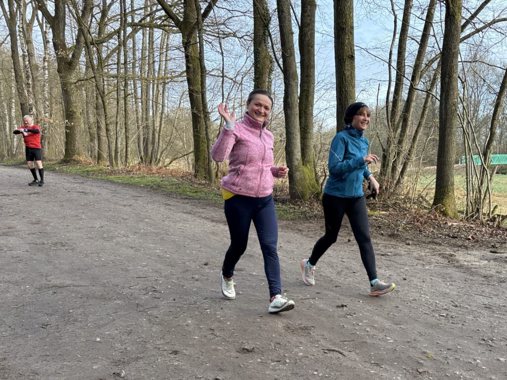 Rabea, Vera und Martin Tö auf der Strecke – Im Hintergrund Dieter und Rita auf dem Weg zum Start- und ZielbereichCindy begrüßte Rosis Sohn Kai stürmisch. Angela und Claudia auf dem Weg zur Alfred-Warnemünde-BrückeAuf dieser Wiese an der Schmalfelder Au war ein Tümpel entstanden. Ein Tümpel ist ein kleines, flaches Stillgewässer und ein wichtiger Lebensraum für Libellen, Käfer und Lurche.Rita und Dieter schlenderten elegant um die Kurve und nahmen Kurs auf die Alfred-Warnemünde-Brücke.Über die Ostergeschenke von Didi und mir freuten sich Dieter und Rita sehr. Im Hintergrund „strahlte“ die neue Jägerbrücke.Martin Tr. brachte die Sonne mit zum Start.Ein starkes TeamMartin Tr. strahlte mit der Sonne um die Wette.Angela und Claudia freuten sich über das schöne Laufwetter, wie auch …… Beate.Doris H. und Mario im Gleichschritt unterwegsRubus – Die sommer- bis wintergrünen, oft stacheligen Sträucher wachsen meist als sehr anpassungsfähige Pflanzen an Waldrändern und Hecken. Sie produzieren essbare Sammelsteinfrüchte und sind wichtige Nahrungsquellen für Tiere.Die neue JägerbrückeBuschwindröschen – Meist im Wald, aber auch unter Schlehenhecken leuchten schon bald die weißen Blüten des Buschwindröschens. Manche Blüten haben auch einen leicht rosanen Teint.KI berichtet: Als Läufer ist es sinnvoll und technisch korrekt, sich in engen Kurven leicht nach innen zu lehnen, um die Fliehkraft auszugleichen und das Tempo beizubehalten. Dann machte Doris H. alles richtig. Mario schmunzelte bestätigend.Arne ist immer willkommen, ob auf dem Stellplatz in Kaltenkirchen oder auf dem Wanderparkplatz an der Schmalfelder Au.Dieter und Rita fachsimpelten mit Arne, der sie in eine weitere Runde auf dem Fahrrad begleitete.Ehepaar Sagassers Tochter Jenny beobachtete mit ihrem Sohn Milan die Pferde auf der anderen Seite der Schmalfelder Au. Jenny hat Humor und lacht gerne.Zieleinlauf für Doris H. und Mario! Super Leistung! Doris S. und Tochter Caro freuten sich.Bekannt ist die Narzisse auch unter dem Namen Osterglocke. Die Blütezeit beginnt im Februar und endet im Mai. Narzissen wachsen dort, wo der Boden feucht ist. Sie mögen Sonnenlicht, können aber auch im Halbschatten wachsen. Narzissen findet man auch in Wäldern, die nicht allzu dunkel sind.Traubenhyazinthen sind wertvolle, früh blühende Nektar- und Pollenquellen für Insekten wie Wildbienen, Honigbienen und Hummeln.Doris genoß die Sonnenstrahlen und freute sich auf den Rundkurs um die Schmalfelder Au.Die Landschaft um die Schmalfelder Au ist traumhaft schön!Ein außergewöhnlich gut gelungenes Selfie von DidiVon der neuen Jägerbrücke aus konnte man an diesem Tag eine leichte Strömung der Schmalfelder Au wahrnehmen. Didi bummelte kurz vor dem Ziel , um auf eine bestimmte Hahnzeit zu kommen und nutzte die Gelegenheit, …… Rita und Dieter viel Spaß für ihre letzte Runde zu wünschen.Zieleinlauf, eine neue Hahnzeit und damit den 1596. Zähler! Glückwunsch, Schatzi! Didi ließ es sich nach seinem Zieleinlauf nicht nehmen, Jens-Peter und Martin Tr. fotografisch festzuhalten. Der 2,681 km lange Rundkurs um die Schmalfelder Au, der 16 x zu durchlaufen war