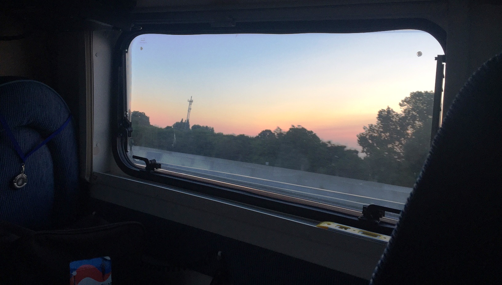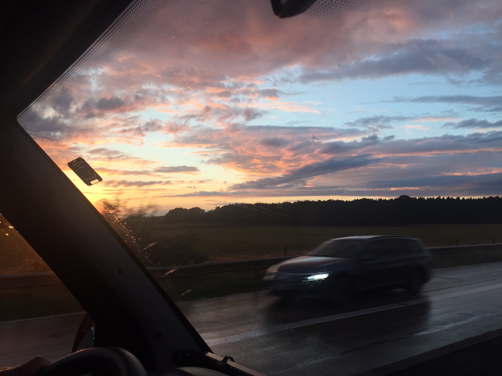 konnten wir es wagen festzustellen, dass es an diesem Tag nicht regnen sollte. Währen der Fahrt beobachtete ich den Himmel. Das Bild des Sonnenaufgangs beeindruckte mich und ich freute mich über dieses gelungene Foto.