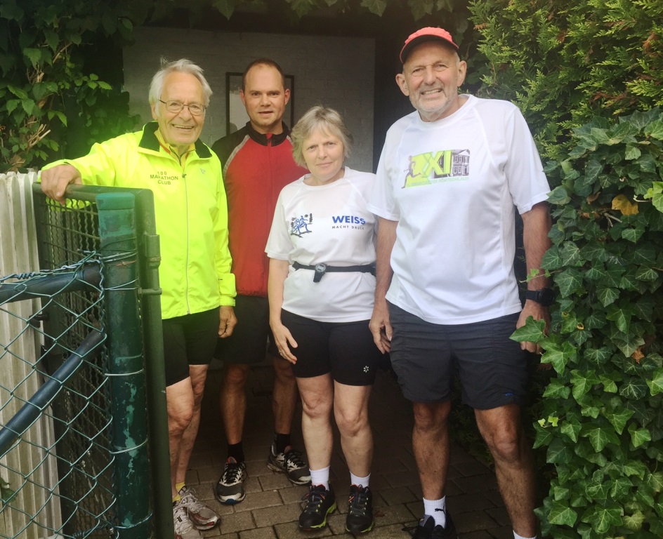 Alle lächelten freundlich in die Kamera. Pünktlich um 8.00 Uhr gab Marc für uns die Strecke frei. Als ich die schnelle Läufertruppe am Horizont verschwinden sah, walkte ich los.