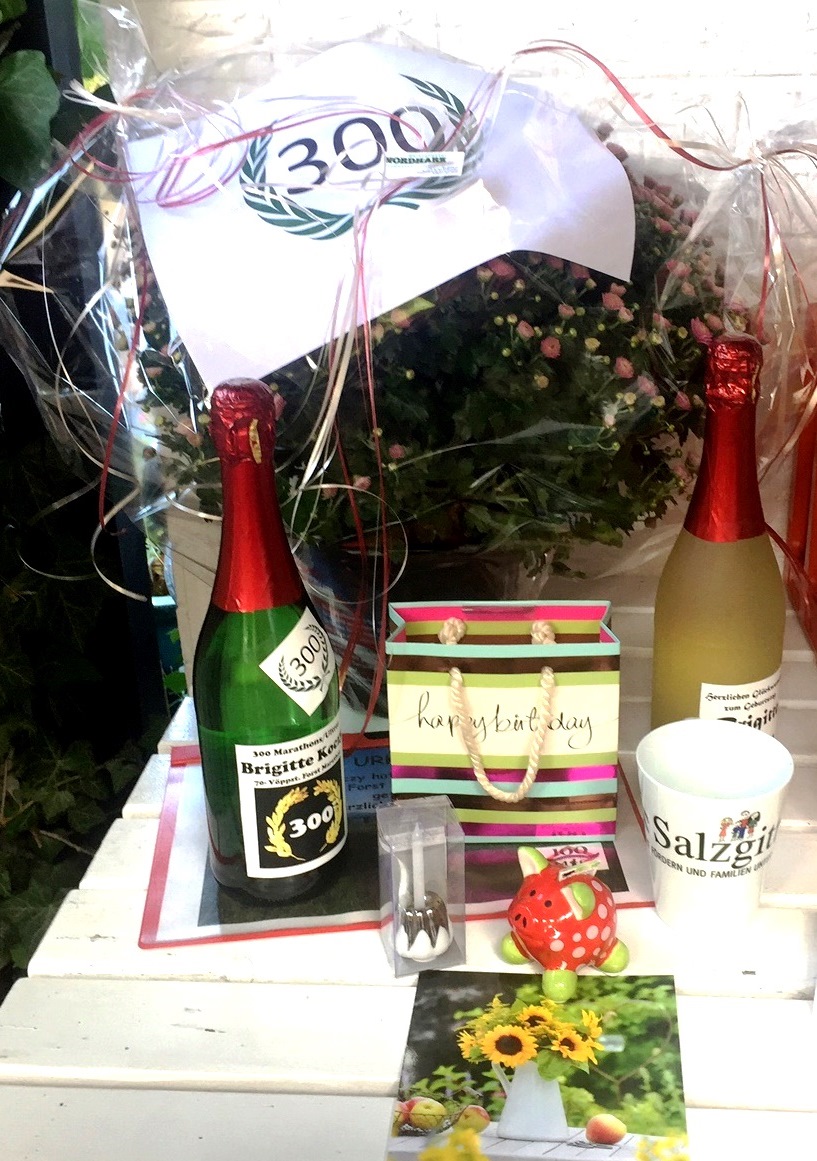 Die Geschenke schmückten einen großen Teil des Verpflegungstisches, bis Brigitte zu Ende gelaufen war.