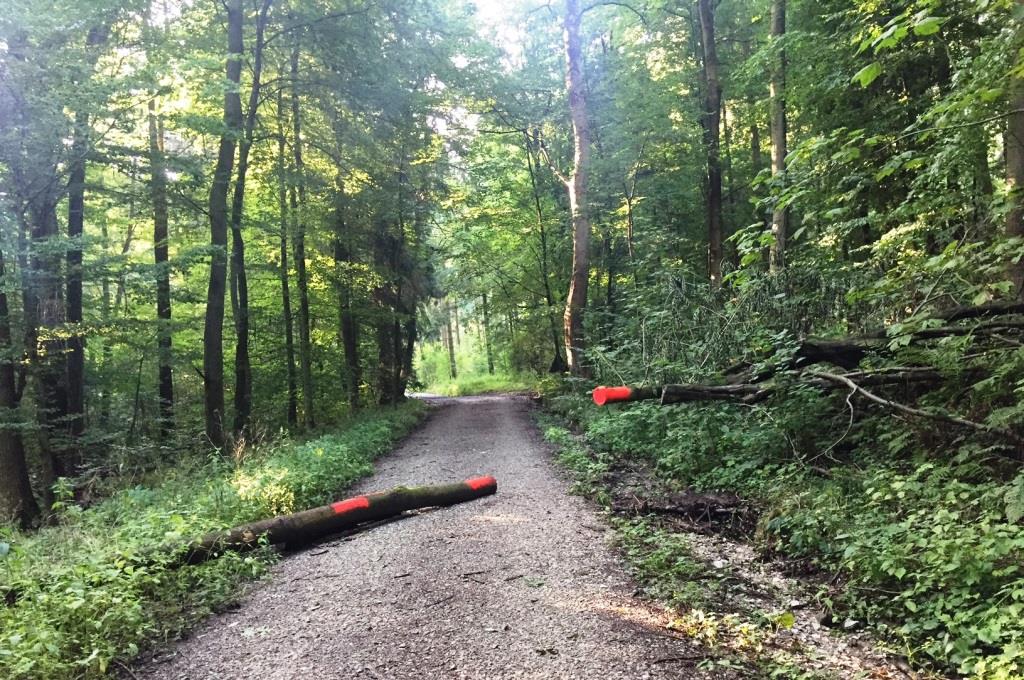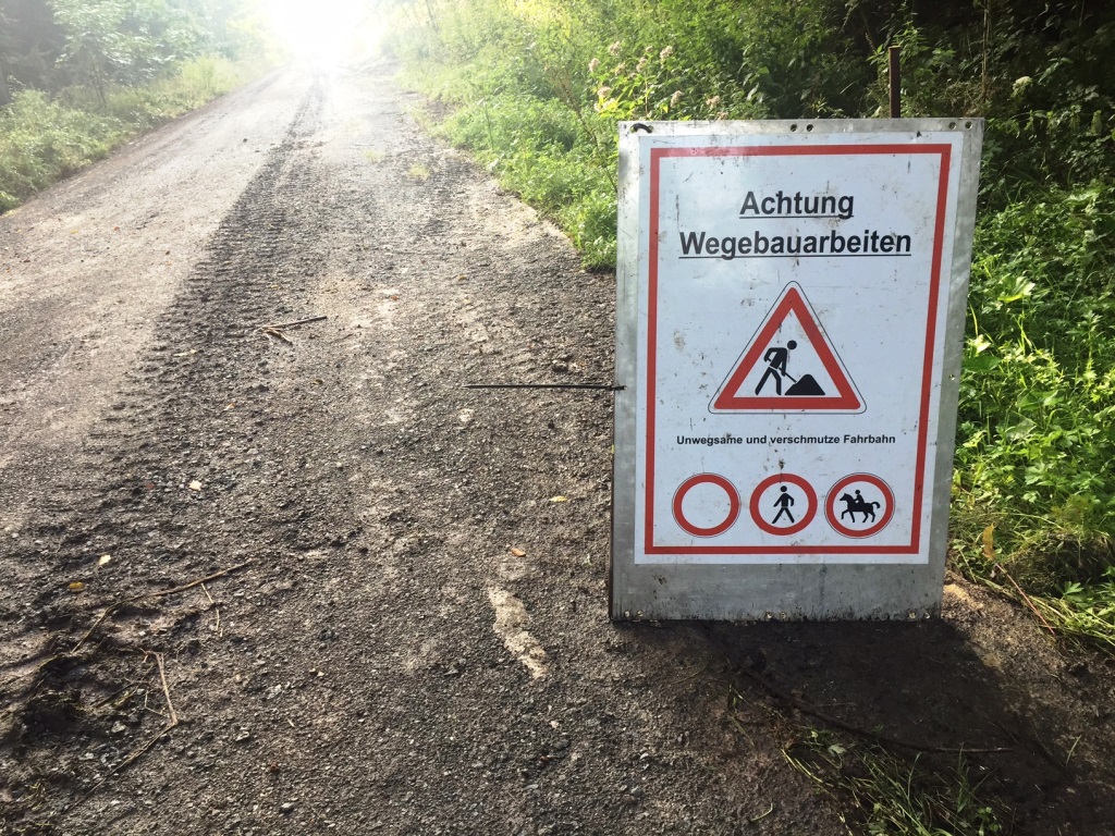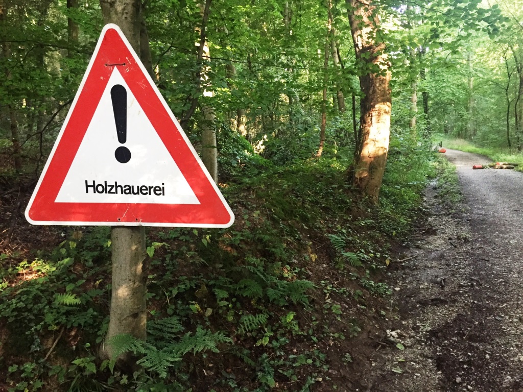 Aber, bald sollte ich andere hübsche und interessante Fotoobjekte finden. Im Wald wurden Läufer und Spaziergänger auf Holzarbeiten aufmerksam gemacht. Hier war also Vorsicht ratsam.