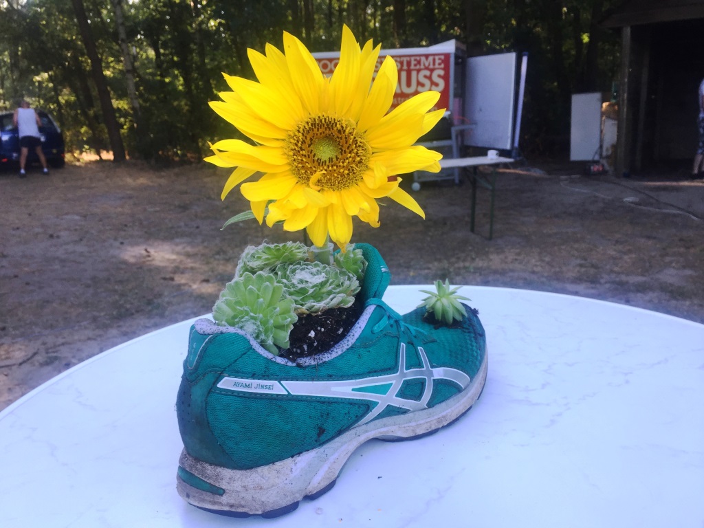Die Sonnenblume im Laufschuh als Tischschmuck durfte nicht fehlen.