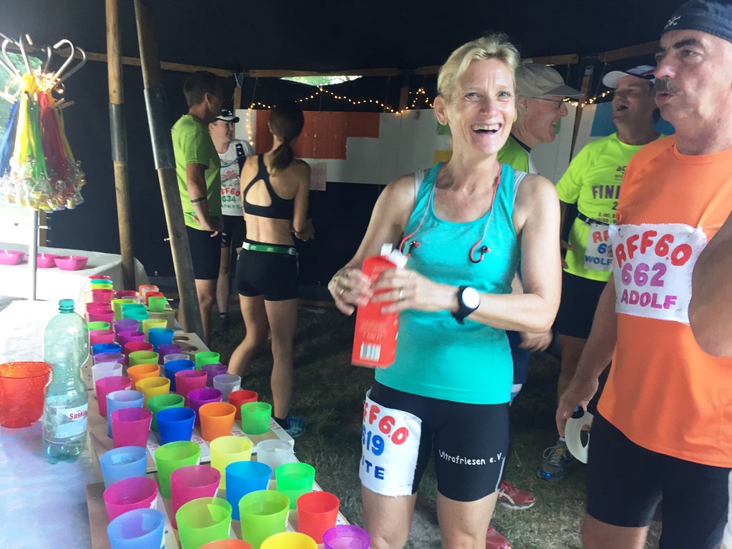 Rita hatte alles im Griff. Ganz viele Leckereien wurden pünktlich zum Start aufgedeckt. Die Trinkbecher stimmten mit der Startnummer der Teilnehmer überein.