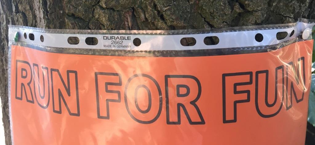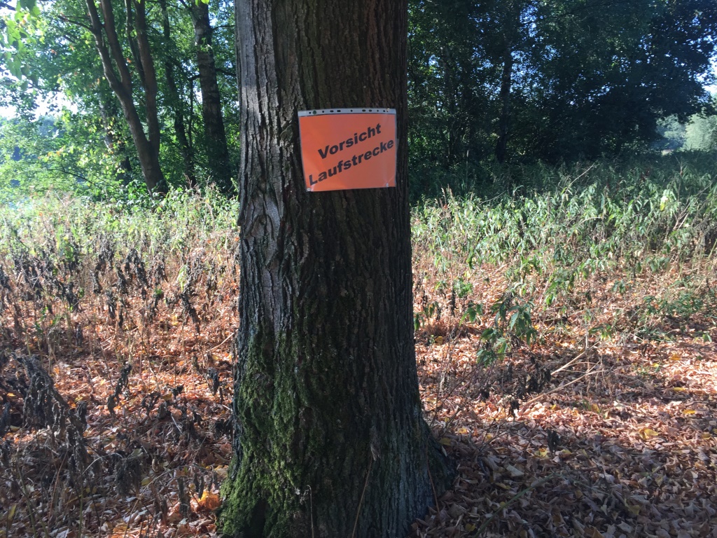 Radfahrer wurden aufmerksam gemacht, dass hier eine Laufveranstaltung stattfand, die auch ein Lauf zum Spaß sein sollte.