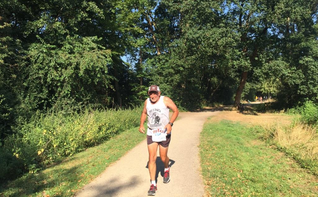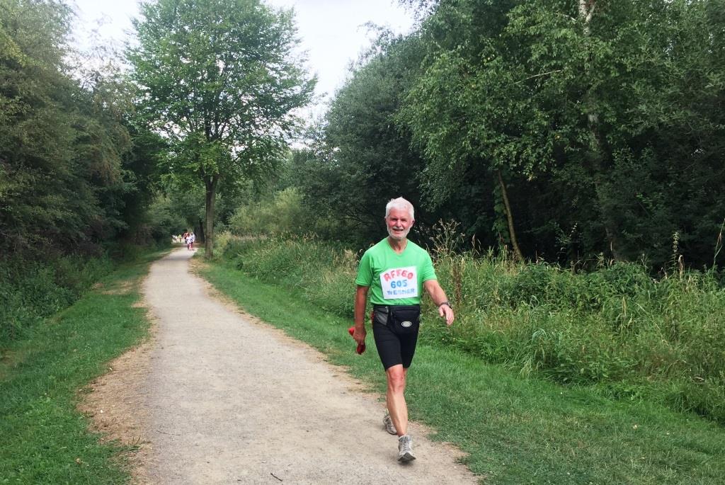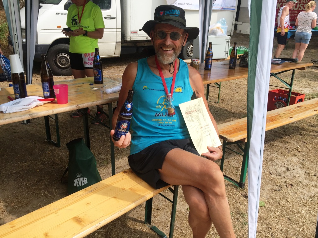 Helmut war im Ziel glücklich über sein gelaufenes Pensum, …