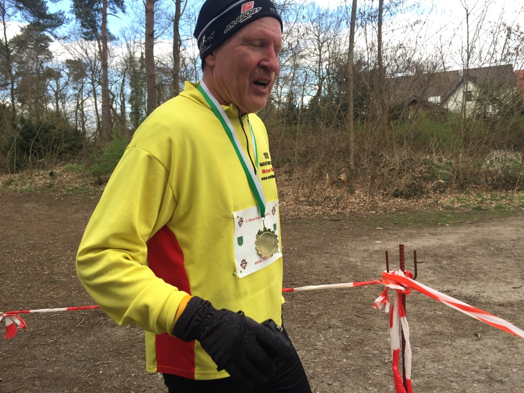 Wolfgang war extra schnell gelaufen, um sich anschließend ein paar Stunden auf’s Sofa zu legen, bevor er zur Arbeit fahren musste. Er war mächtig stolz auf seine Medaille.