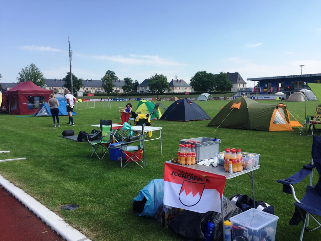 Kleine Zelte und ausreichend Verpflegung schmückten die Rasenfläche des Sportplatzes.