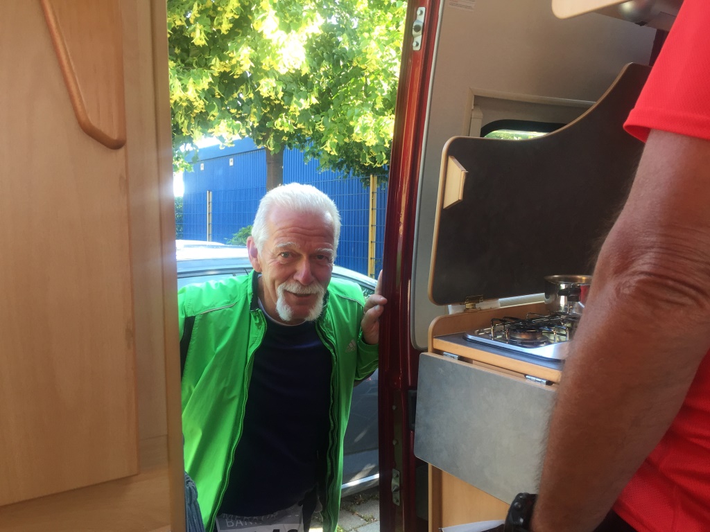 Onky wollte lieber im WoMo warten. Hier hatte er nicht nur die vorbeihuschten Läufer voll im Blick, …